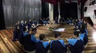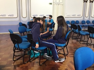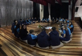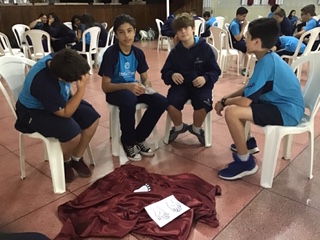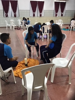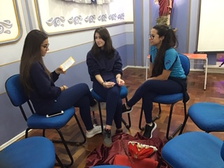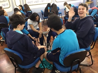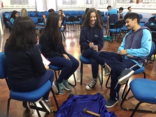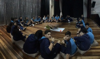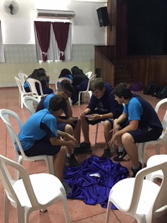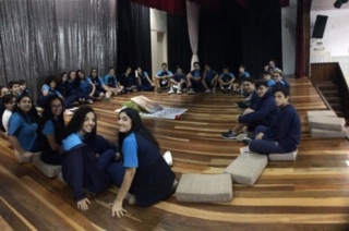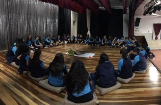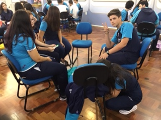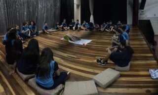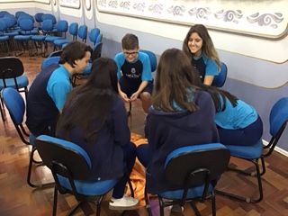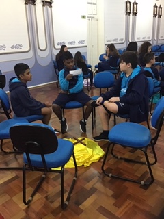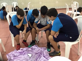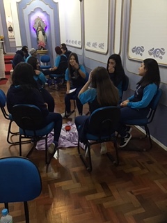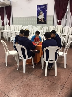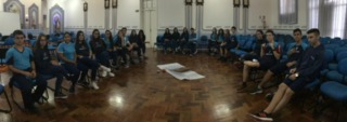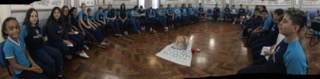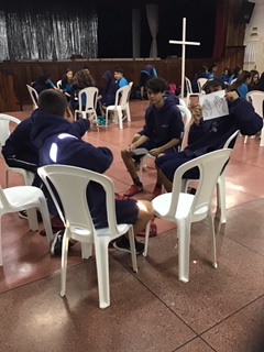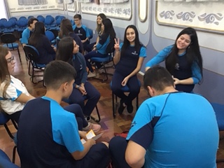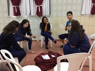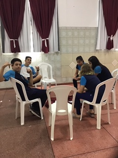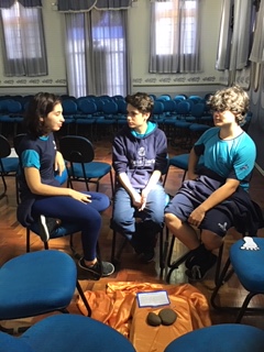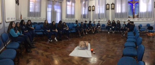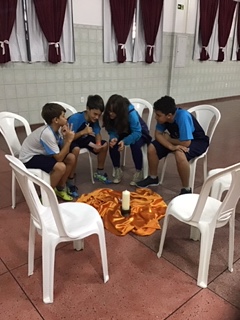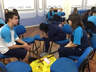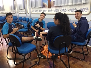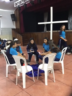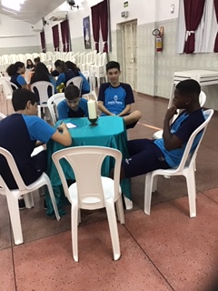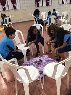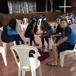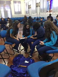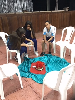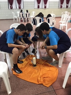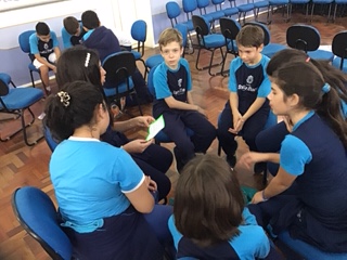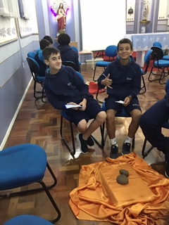 Formação da Páscoa com os alunos no momento das aulas de Ensino Religioso. “ Páscoa e dizer sim a vida e ao amor, é investir na solidariedade, é deixar renascer em nossos corações a esperança da fraternidade.”