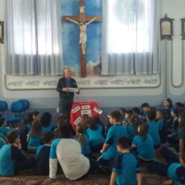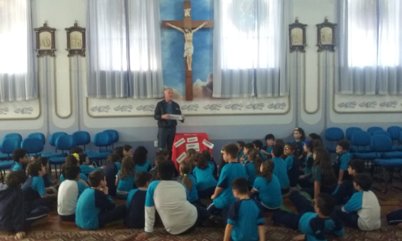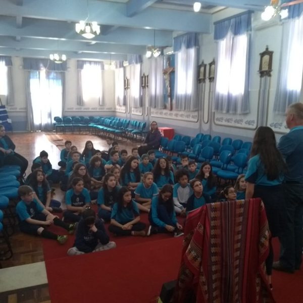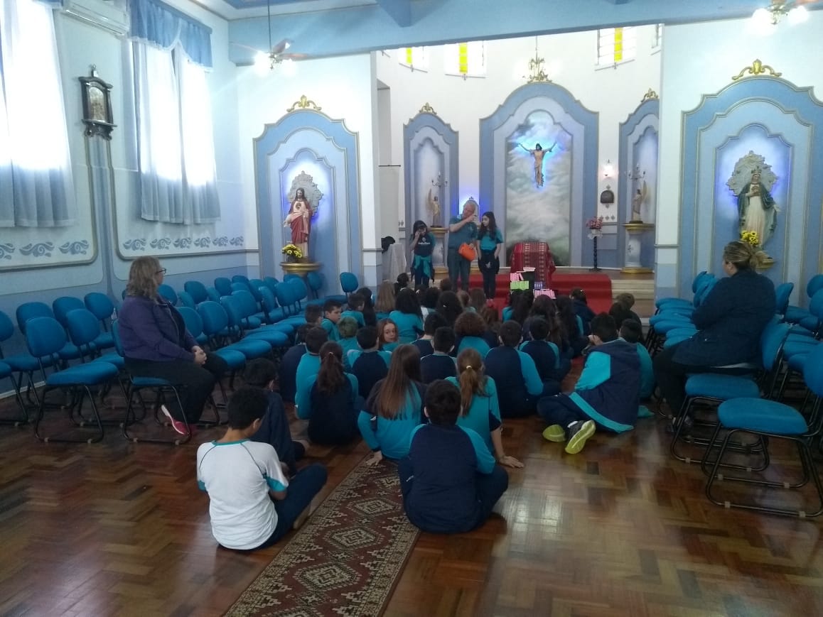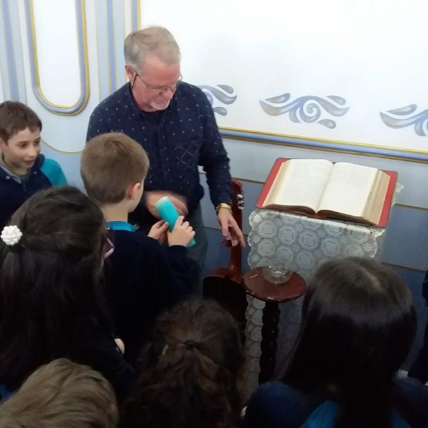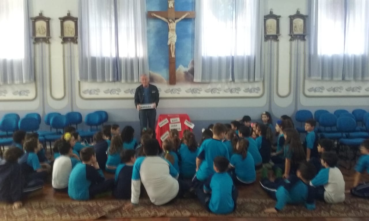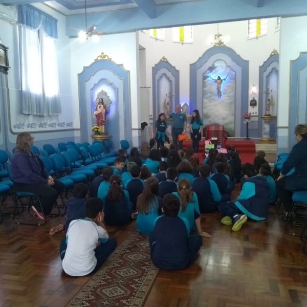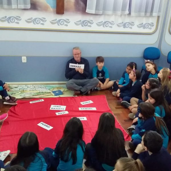 Durante o mês de setembro os alunos da Educ. Infantil ao 5º ano, realizaram um circuito bíblico, na Capela, para conhecer de que forma a Bíblia foi  escrita e organizada. Durante o circuito os alunos foram conhecendo a história de alguns personagens importantes como: Abraão, Moisés, Davi, Samuel, João Batista, Maria, Jesus, Pedro e Paulo, que contribuíram para que a Palavra de Deus fosse transmitida e anunciada a todos os povos.