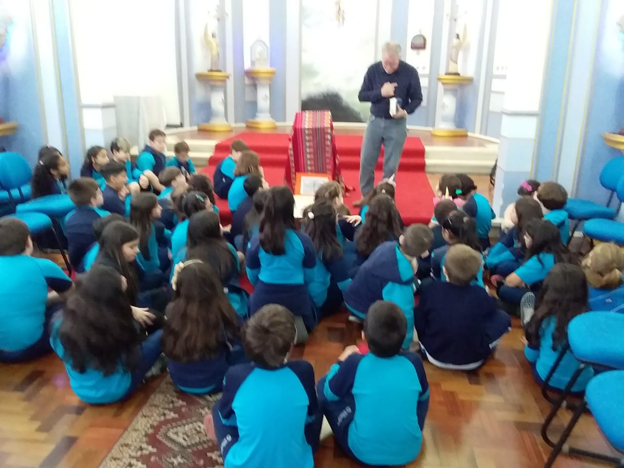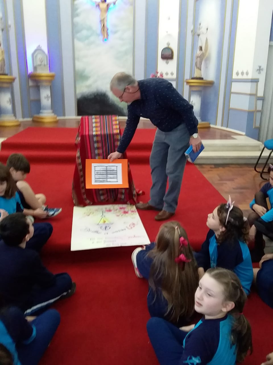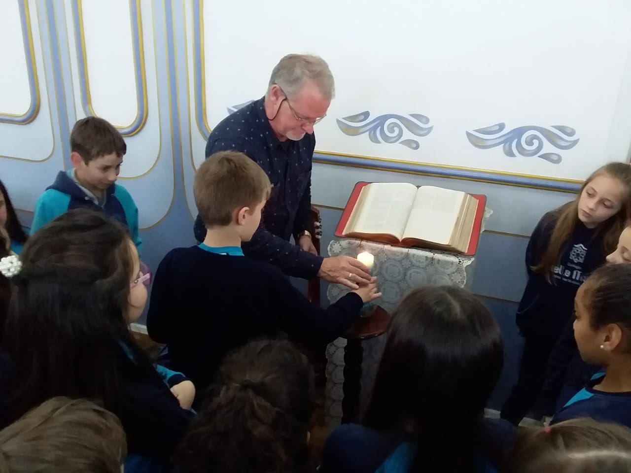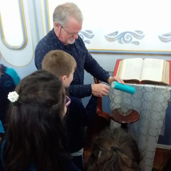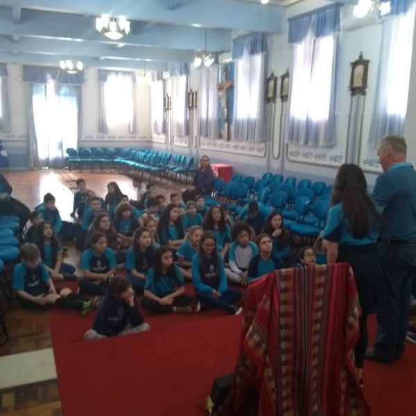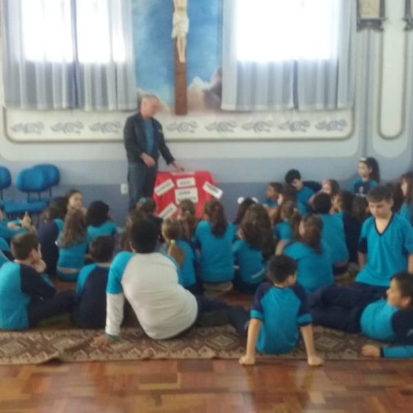 Durante o mês de setembro os alunos da Educ. Infantil ao 5º ano, realizaram um circuito bíblico, na Capela, para conhecer de que forma a Bíblia foi  escrita e organizada. Durante o circuito os alunos foram conhecendo a história de alguns personagens importantes como: Abraão, Moisés, Davi, Samuel, João Batista, Maria, Jesus, Pedro e Paulo, que contribuíram para que a Palavra de Deus fosse transmitida e anunciada a todos os povos.
