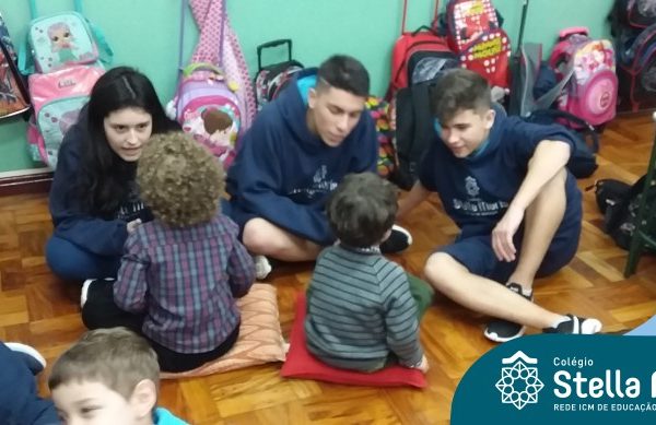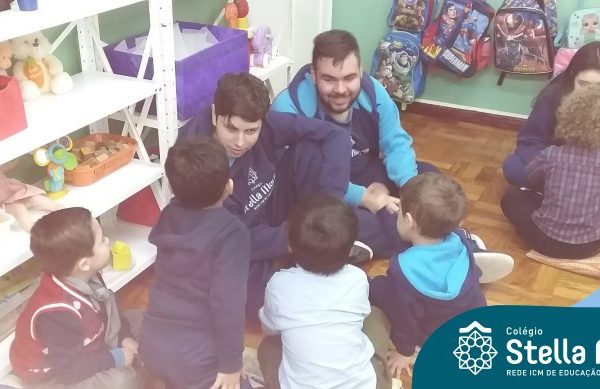A turma do Pré 1A recebeu a visita dos alunos da turma 92, integrantes da equipe cinza claro da gincana da Semana do Stella. Foi lindo ver a interação e o carinho dos alunos maiores com os menores. Participaram com eles até da aula de educação física e foi uma alegria. Eles adoraram!!! Essa equipe é demais!!!