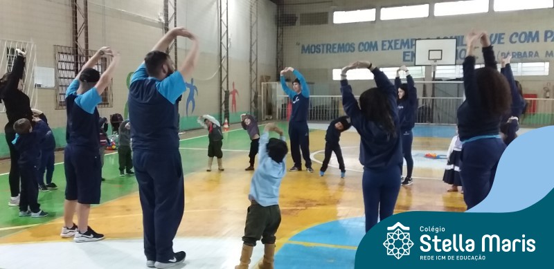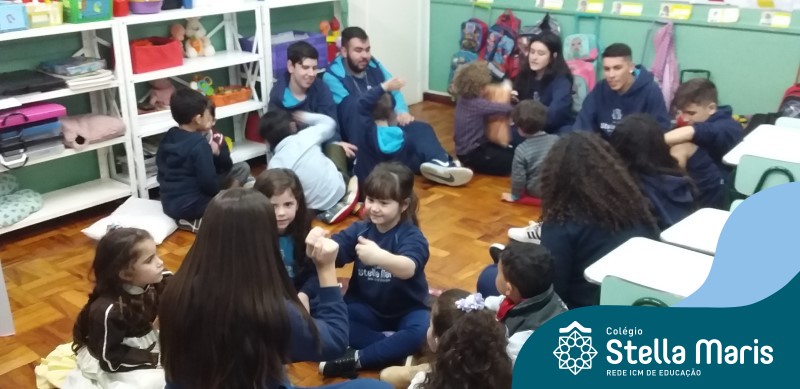 A turma do Pré 1A recebeu a visita dos alunos da turma 92, integrantes da equipe cinza claro da gincana da Semana do Stella. Foi lindo ver a interação e o carinho dos alunos maiores com os menores. Participaram com eles até da aula de educação física e foi uma alegria. Eles adoraram!!! Essa equipe é demais!!!