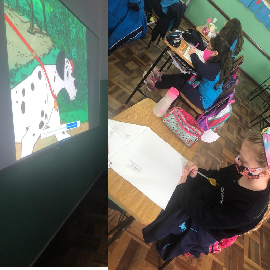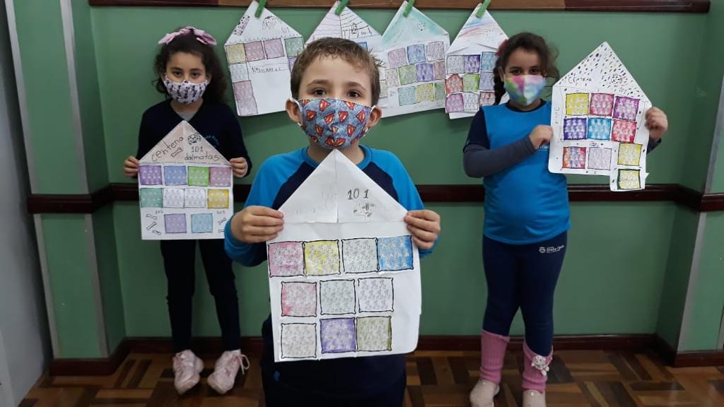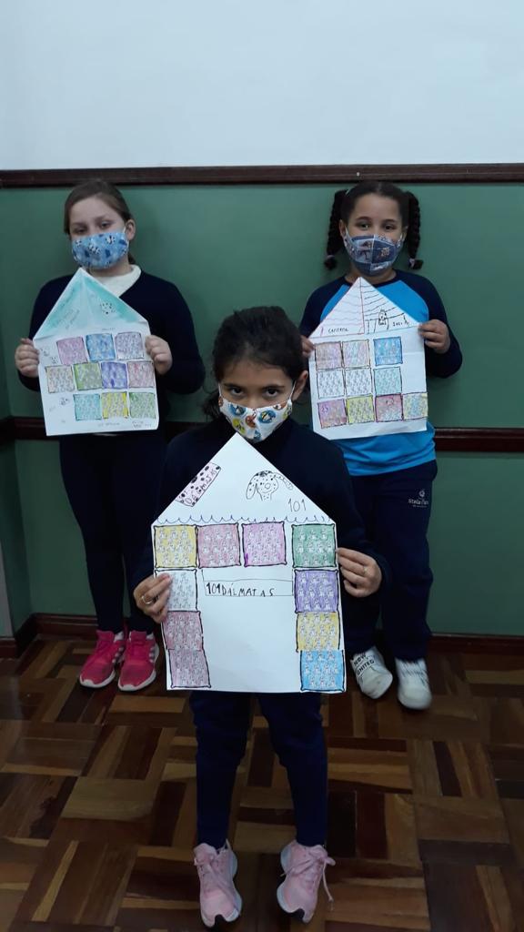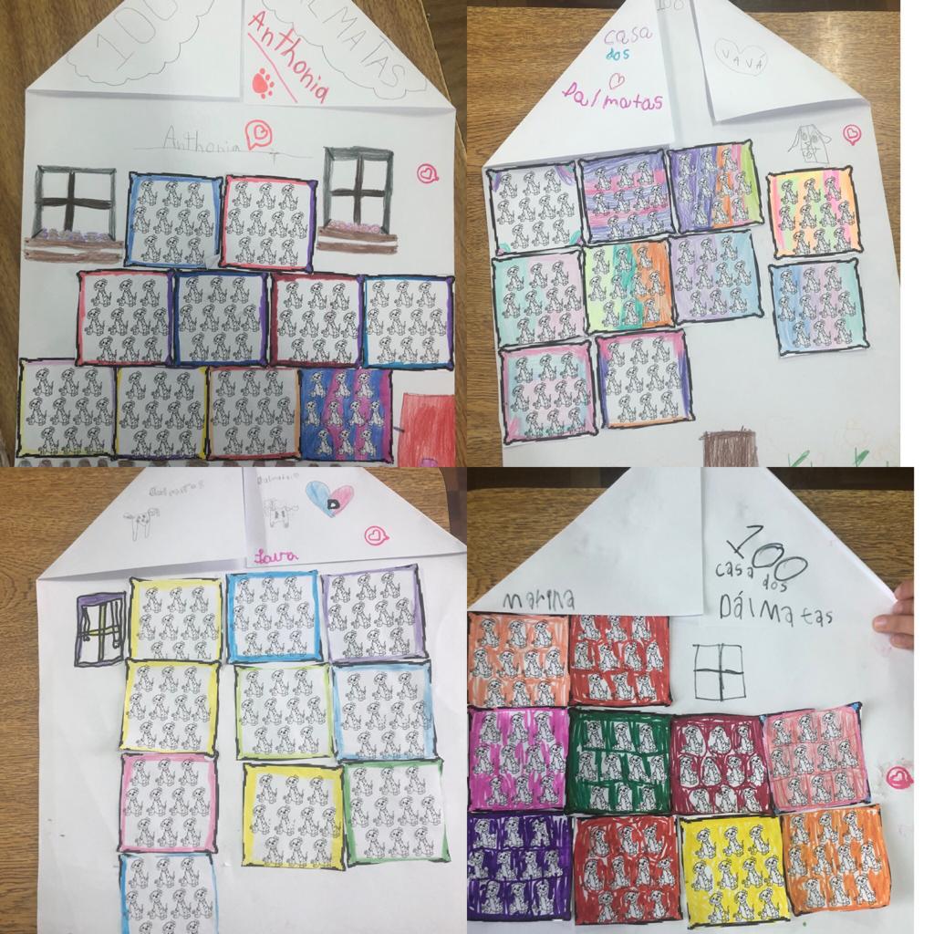 As turmas 22 e 23 iniciaram, na matemática, a ordem da centena. Realizamos uma Sessão Cinema, com o filme/desenho “101 dálmatas” e após, descobrimos que, juntando 10 dálmatas em cada almofadinha, teríamos a dezena. Colocamos 10 almofadinhas na casinha dos dálmatas e assim, ficamos com 100, 1 centena. Depois de montar sua casinha com 1 centena de dálmatas, cada estudante desenhou 1 dálmata, para completar os 101, como no filme. Todos adoraram, pois de forma lúdica, aprendemos com significado! Professoras Cristina e Vacilane.