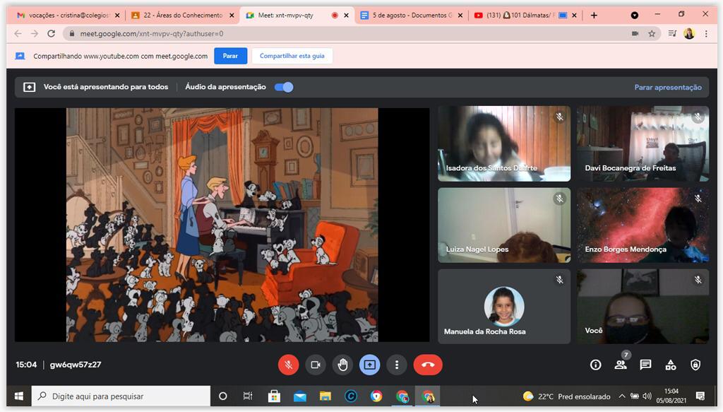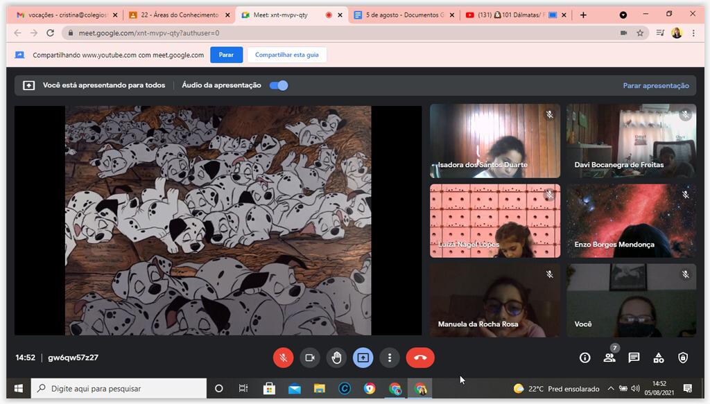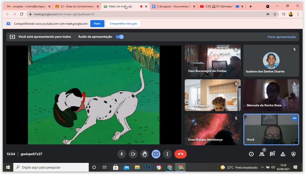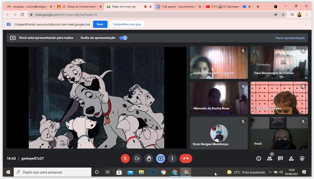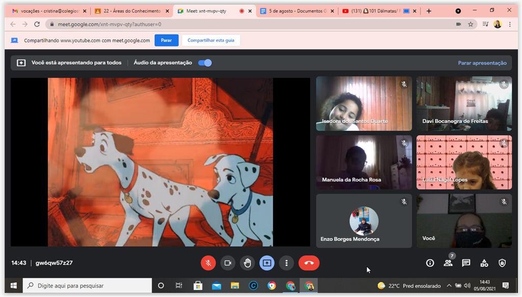 As turmas 22 e 23 iniciaram, na matemática, a ordem da centena. Realizamos uma Sessão Cinema, com o filme/desenho “101 dálmatas” e após, descobrimos que, juntando 10 dálmatas em cada almofadinha, teríamos a dezena. Colocamos 10 almofadinhas na casinha dos dálmatas e assim, ficamos com 100, 1 centena. Depois de montar sua casinha com 1 centena de dálmatas, cada estudante desenhou 1 dálmata, para completar os 101, como no filme. Todos adoraram, pois de forma lúdica, aprendemos com significado! Professoras Cristina e Vacilane.