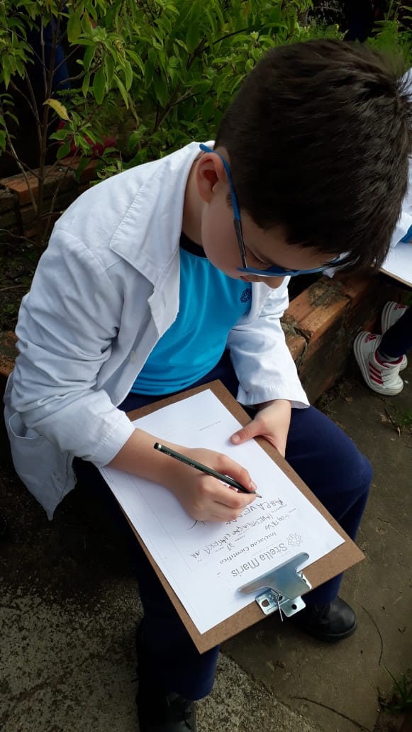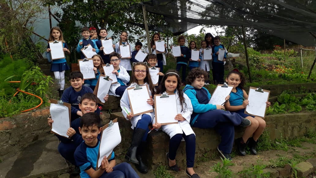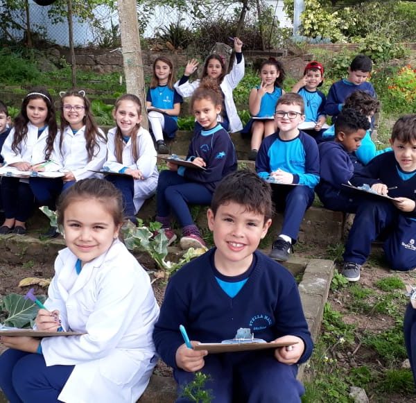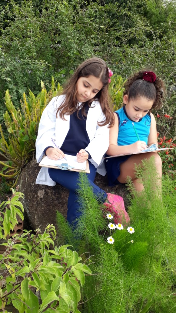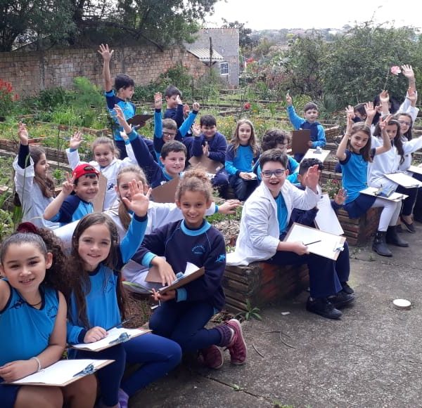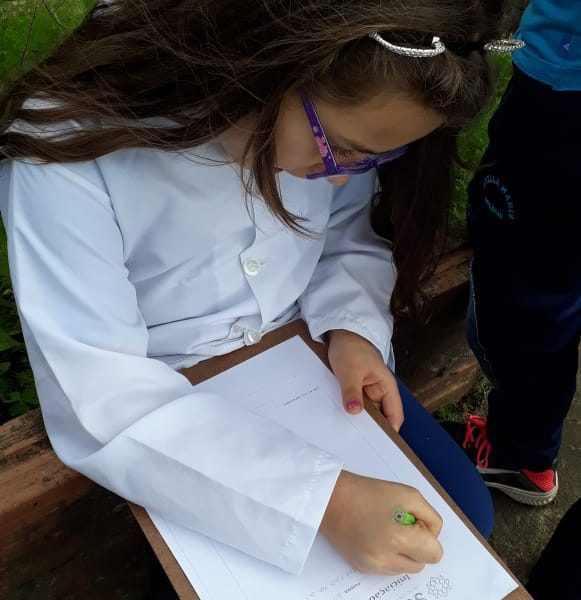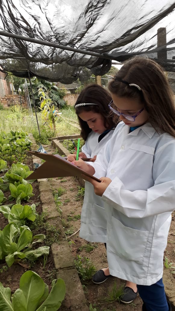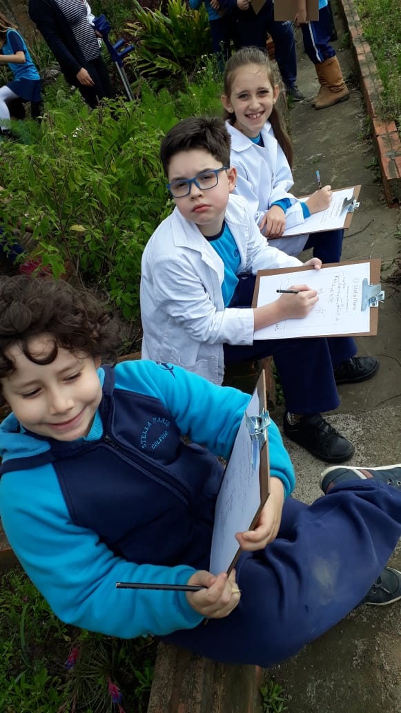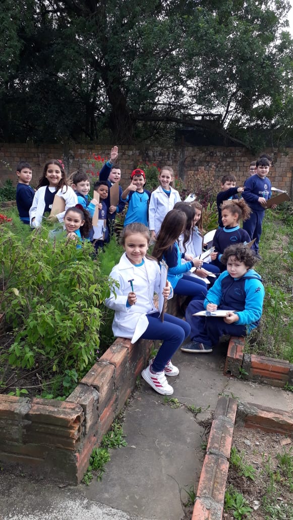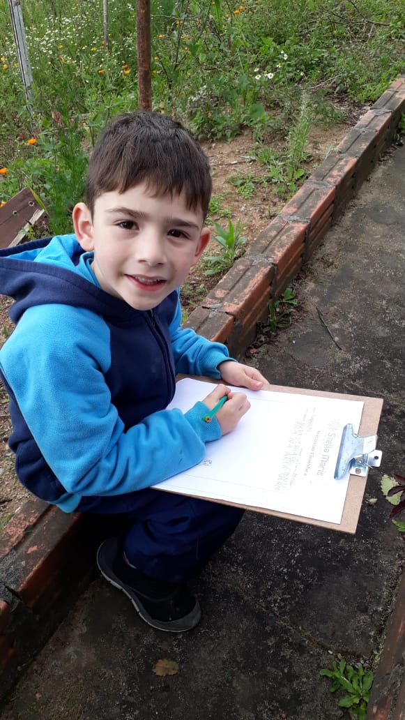 A turma 21 foi fazer uma investigação científica na área verde e horta da escola.
