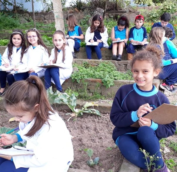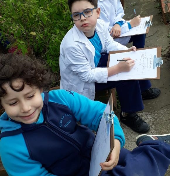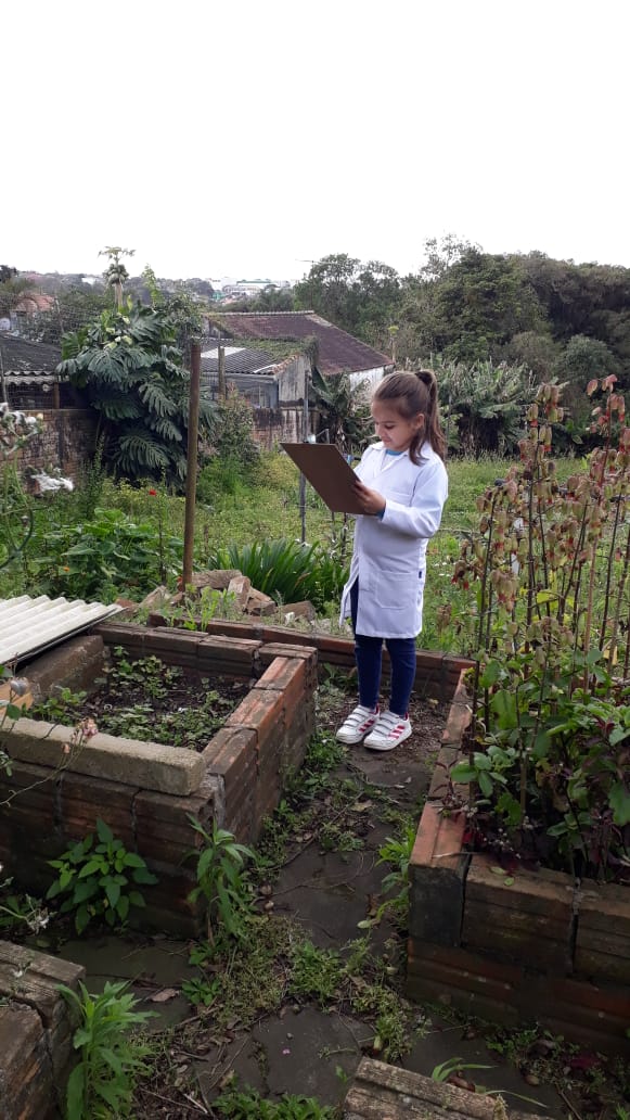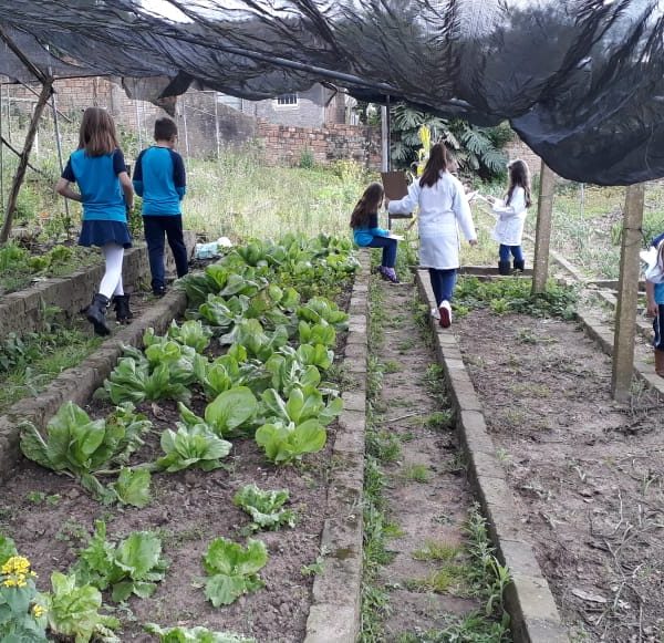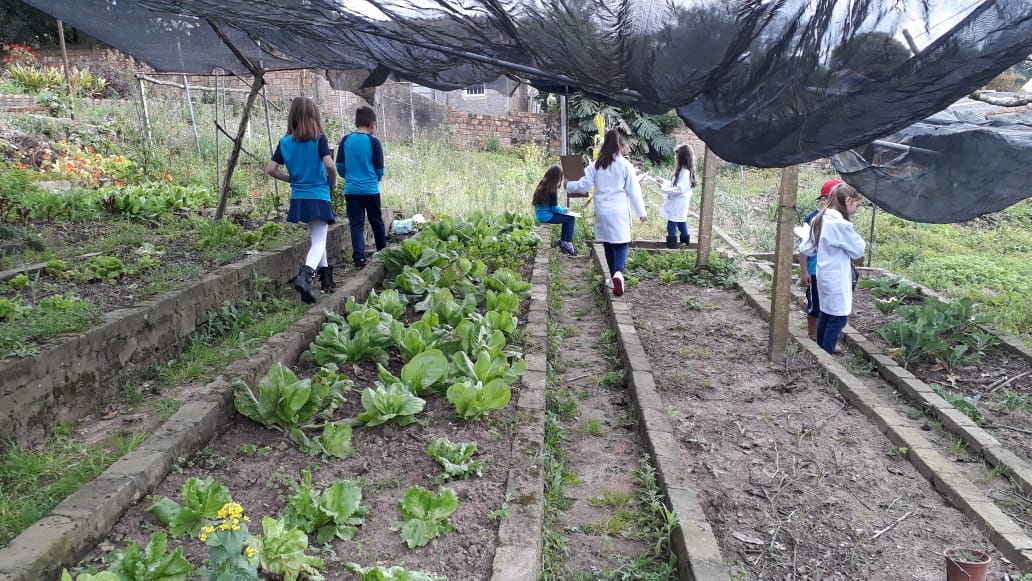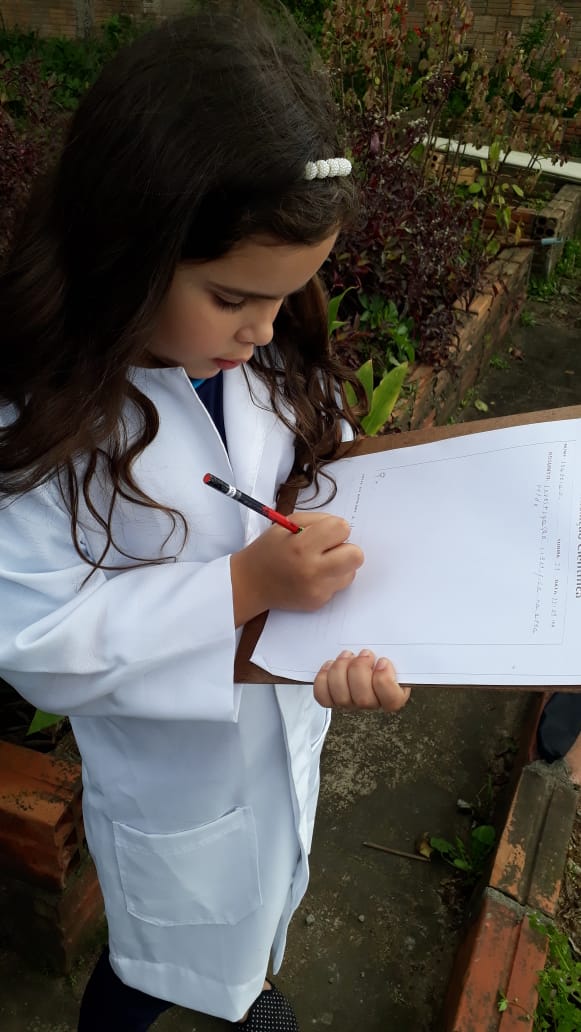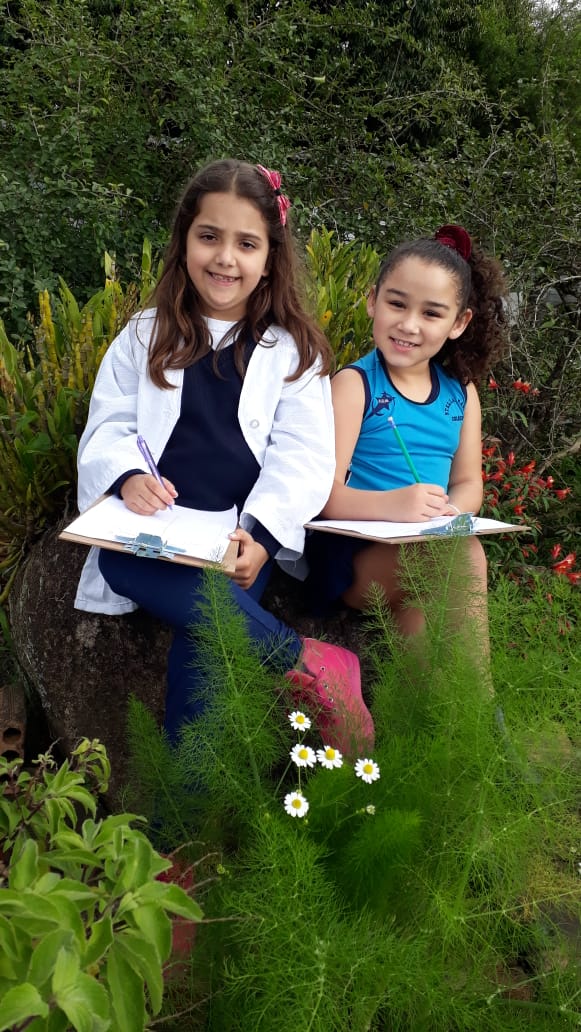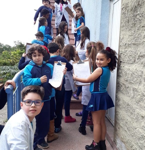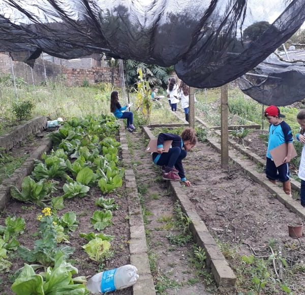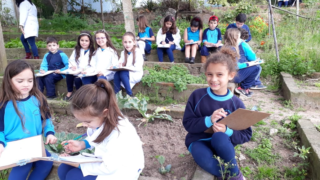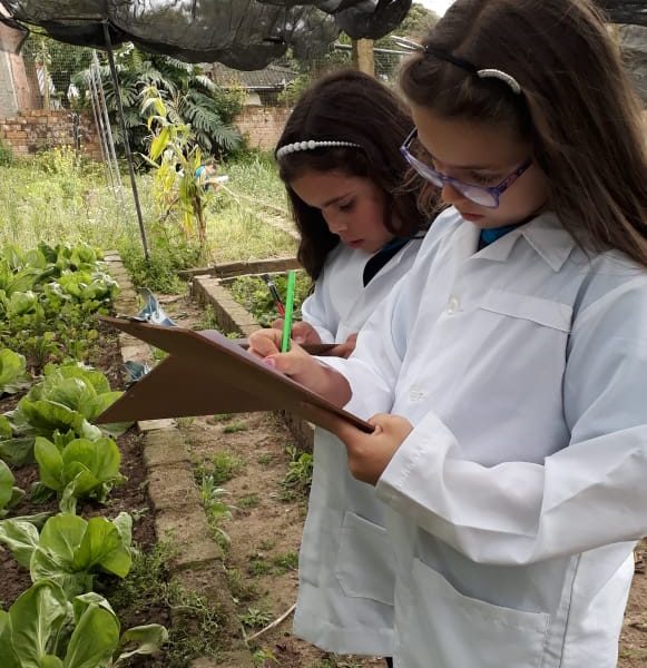 A turma 21 foi fazer uma investigação científica na área verde e horta da escola.
