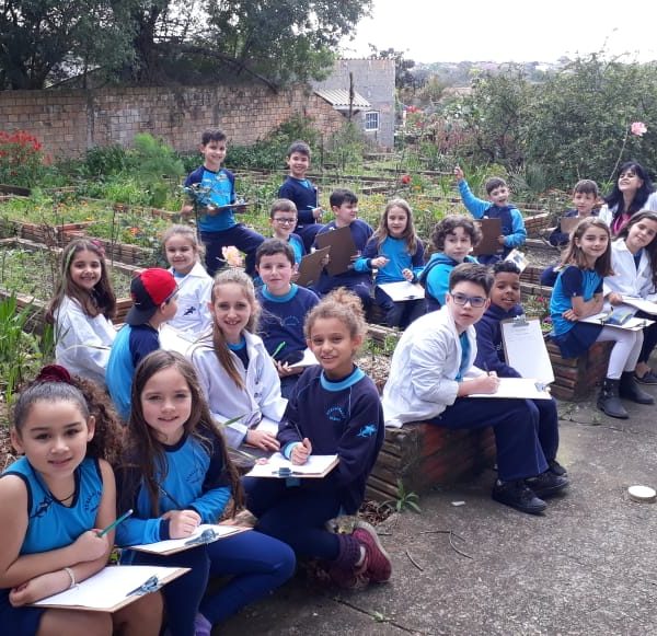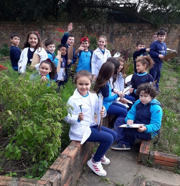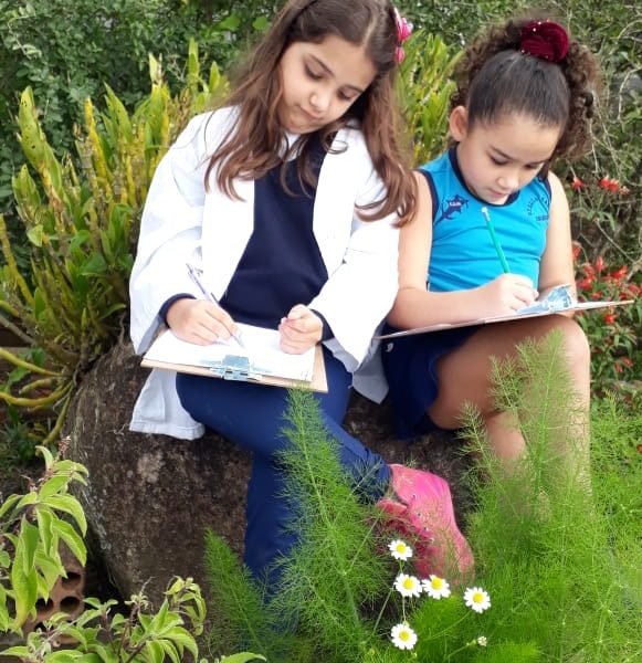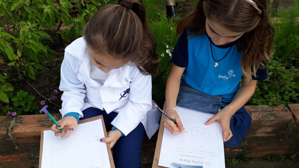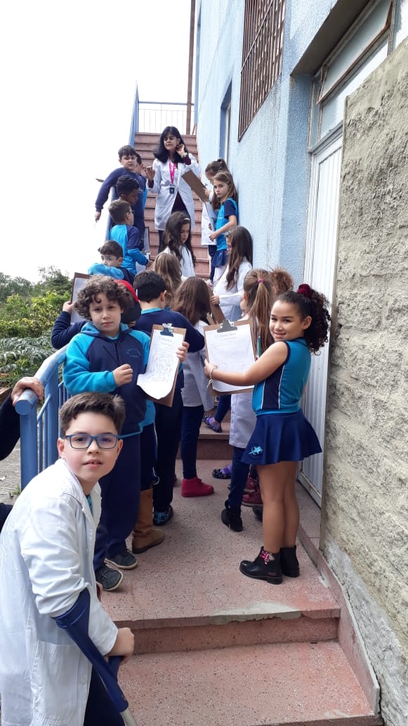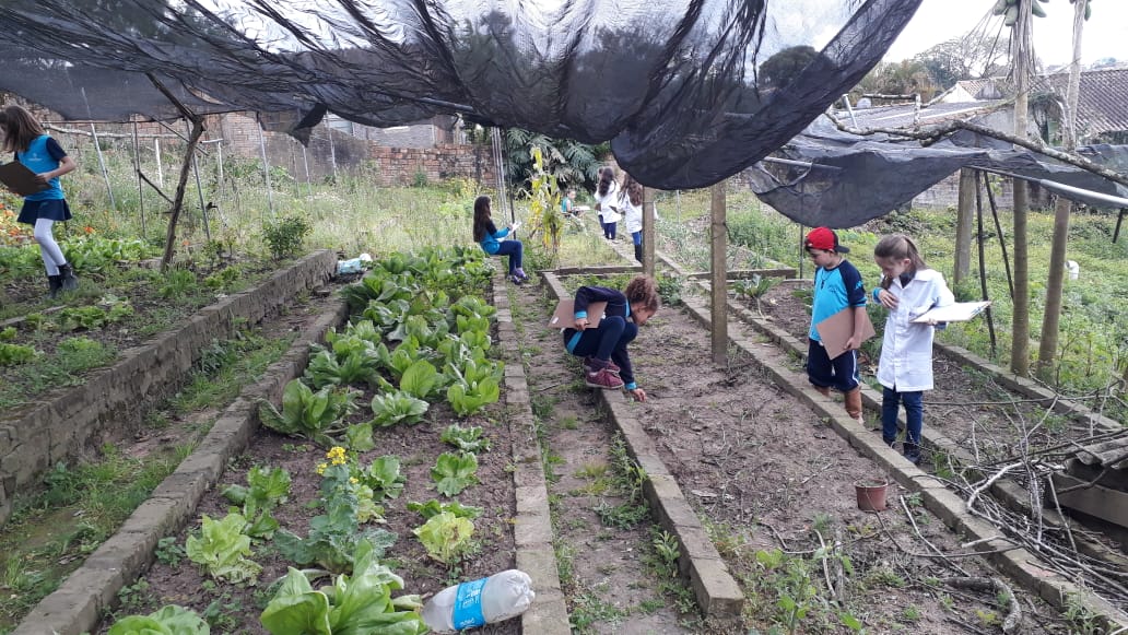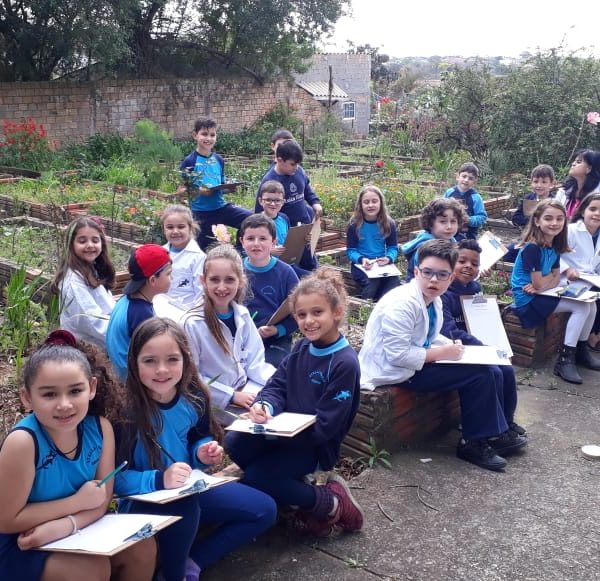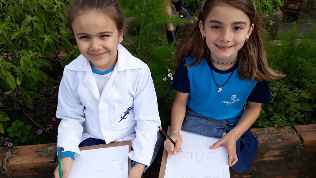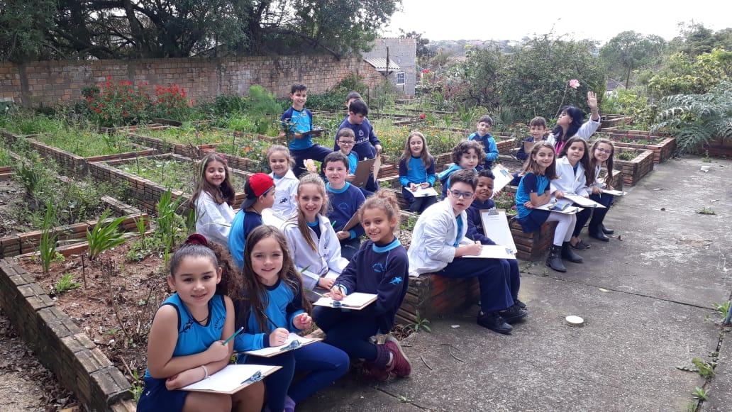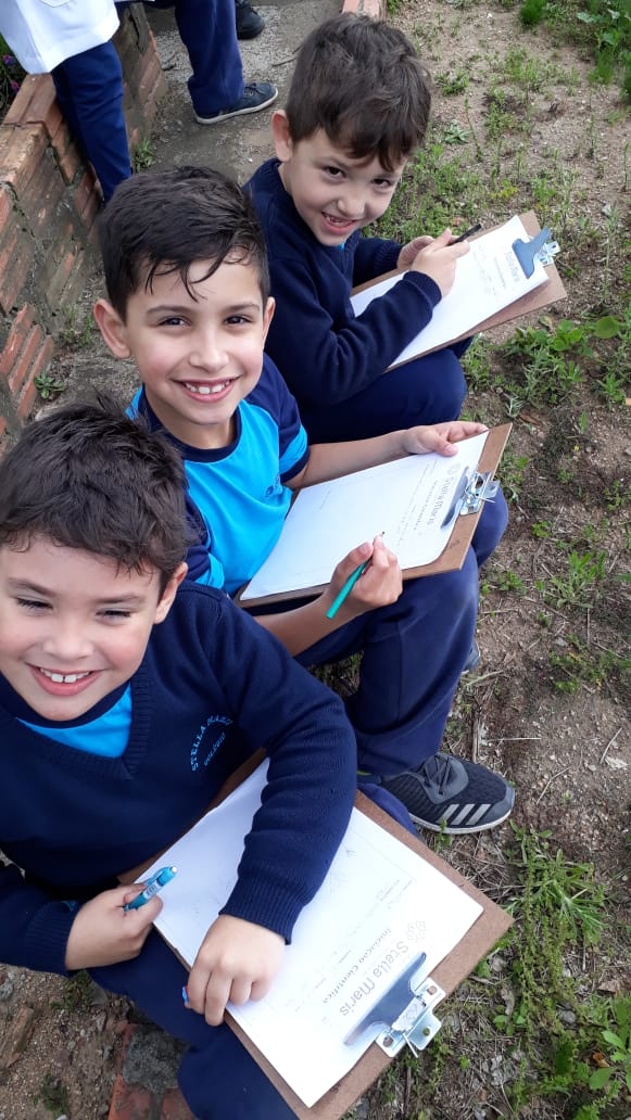 A turma 21 foi fazer uma investigação científica na área verde e horta da escola.