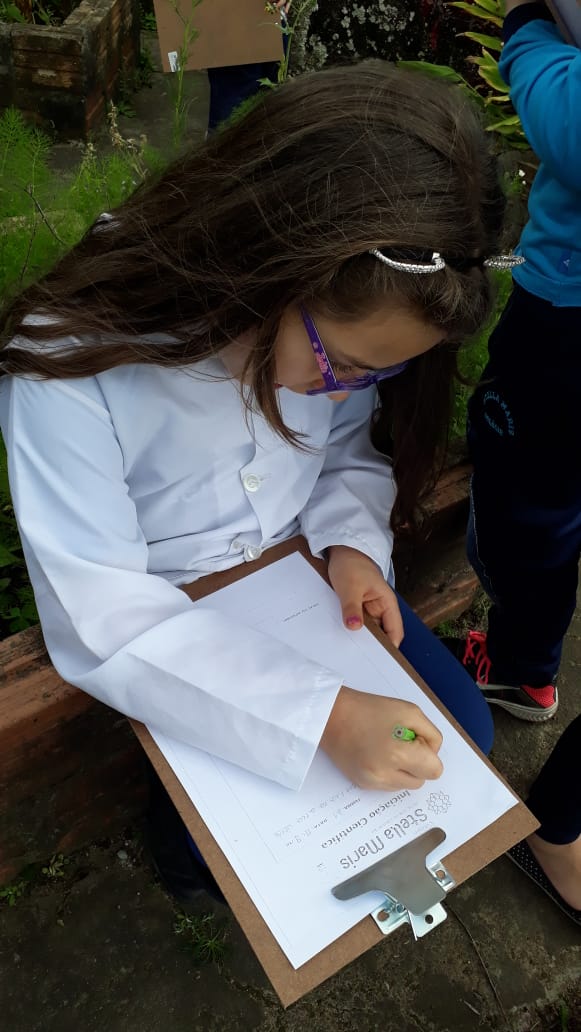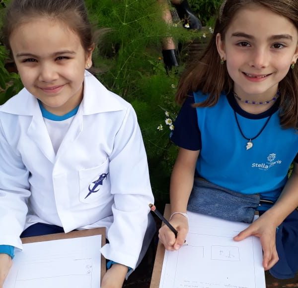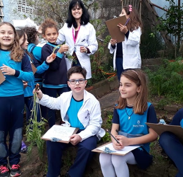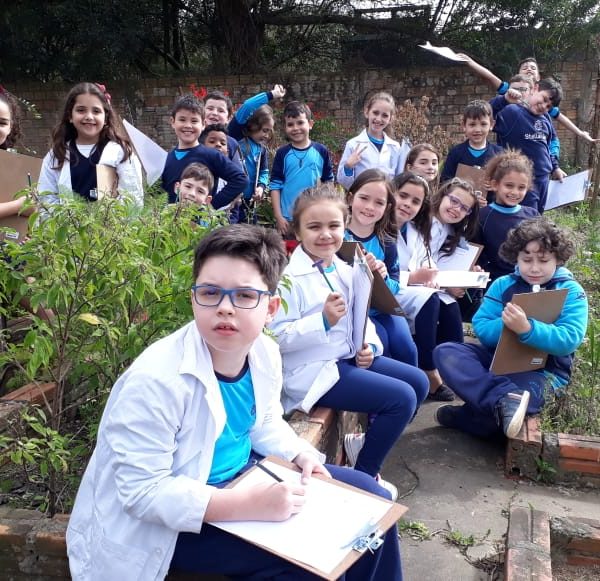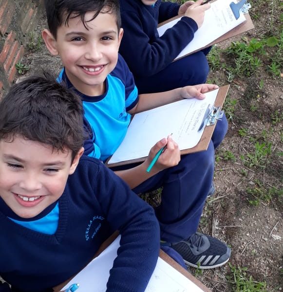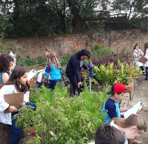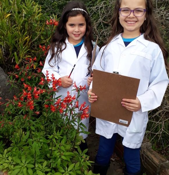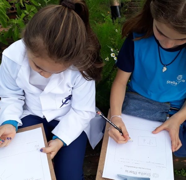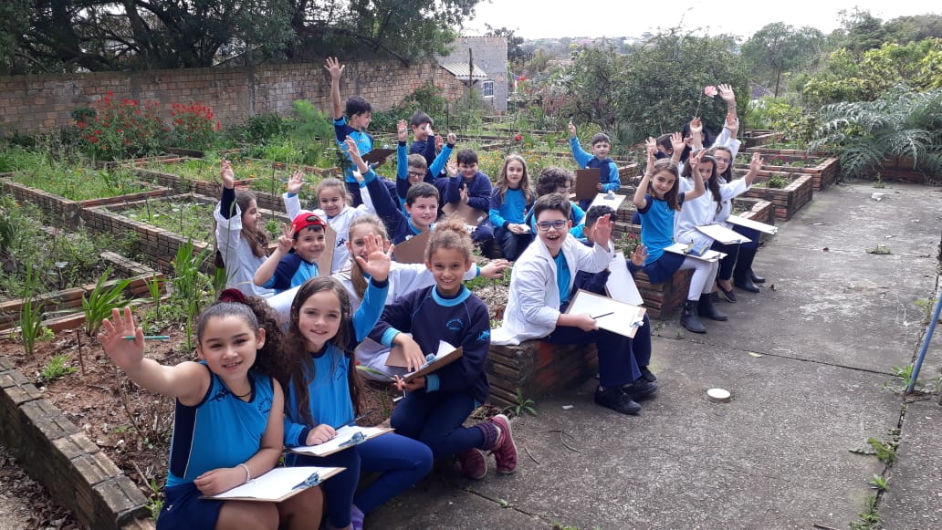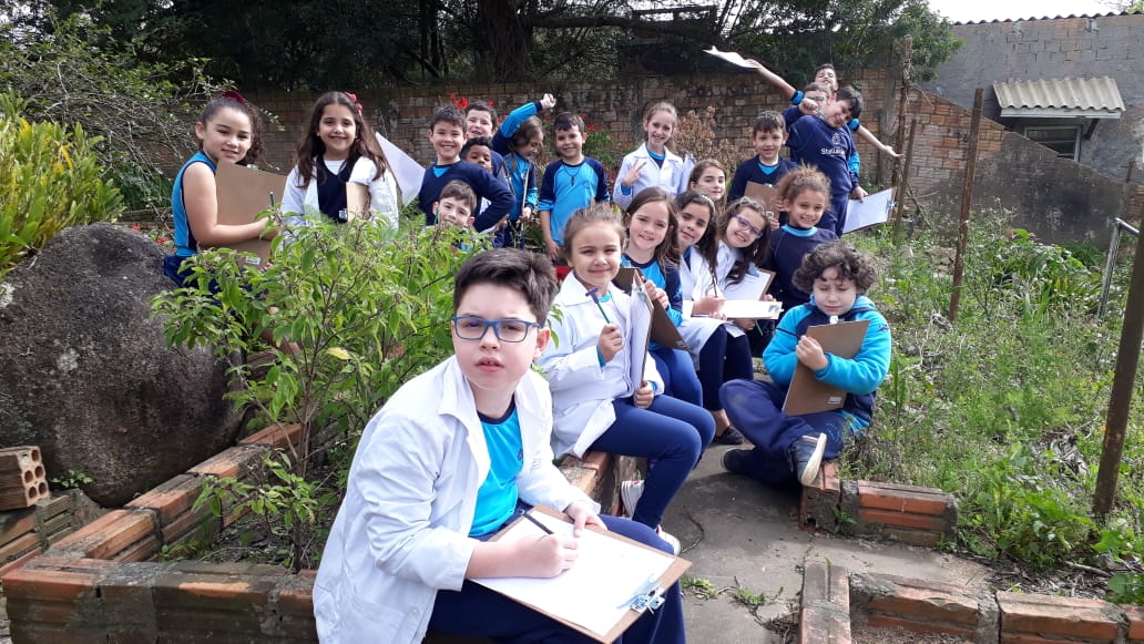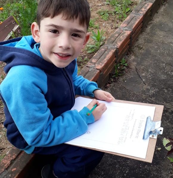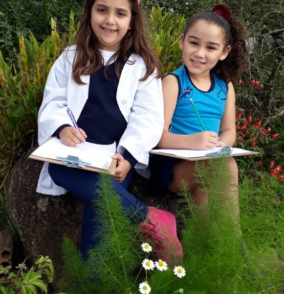 A turma 21 foi fazer uma investigação científica na área verde e horta da escola.