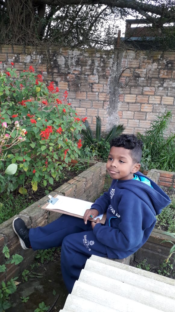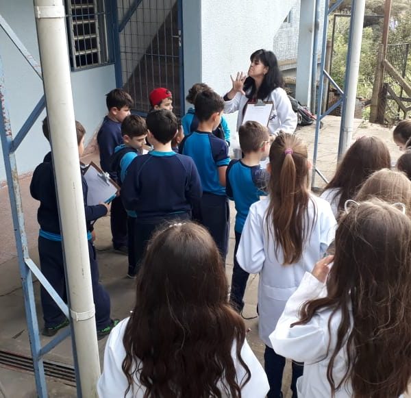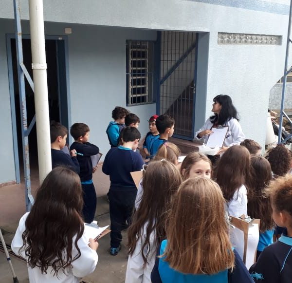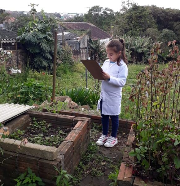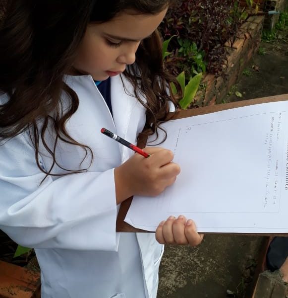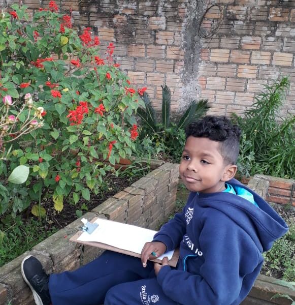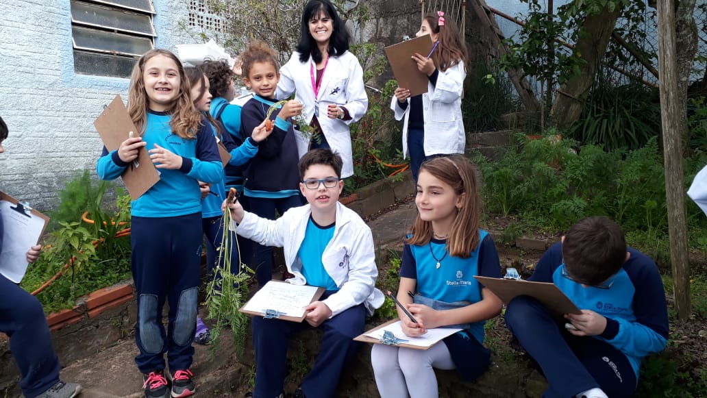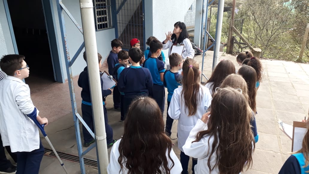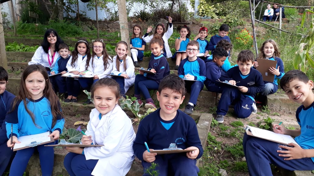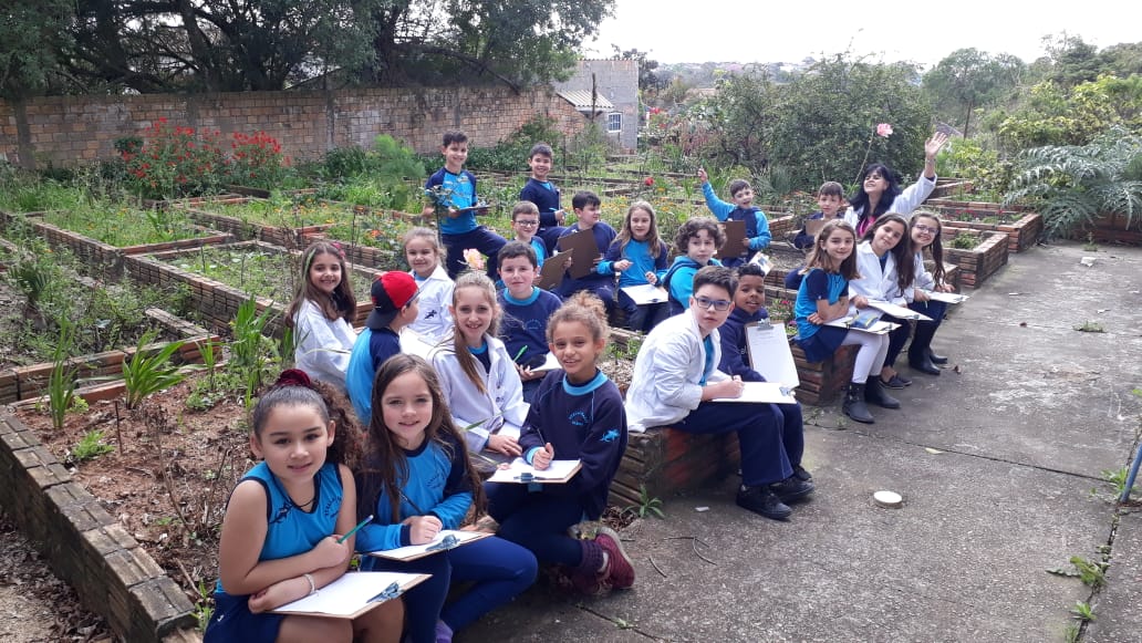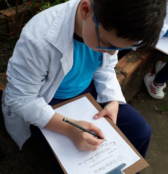 A turma 21 foi fazer uma investigação científica na área verde e horta da escola.