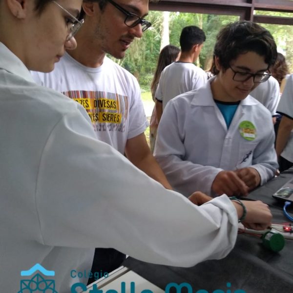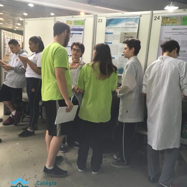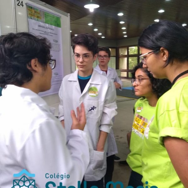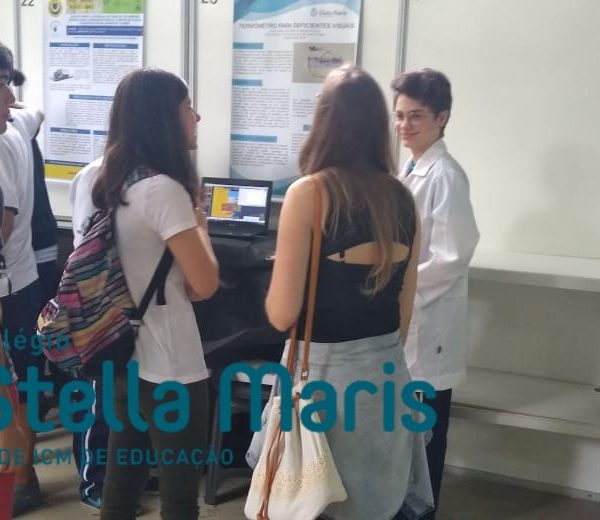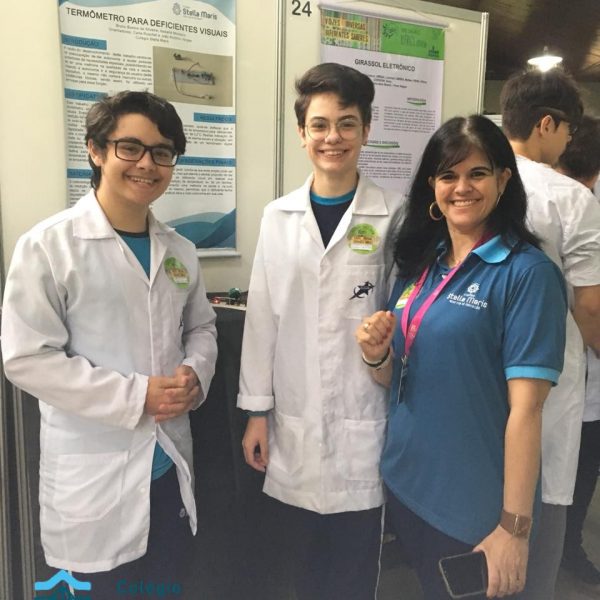 Jovens Pesquisadores Isabela Moresco, da turma 101 e Bruno Silveira, da turma 102, representam o Colégio Stella Maris no Salão Jovem Pesquisador da UFRGS 2018, apresentando o Projeto da Área da Ciências da Natureza “Termômetro para deficientes visuais”. Projeto este, orientado pelos educadores João Antônio, de Física e Carla Ruschel, de Química. Estes momentos vivenciados pelos nossos estudantes representam o investimento e a valorização da Iniciação Científica desenvolvida em nossa Unidade de Ensino.