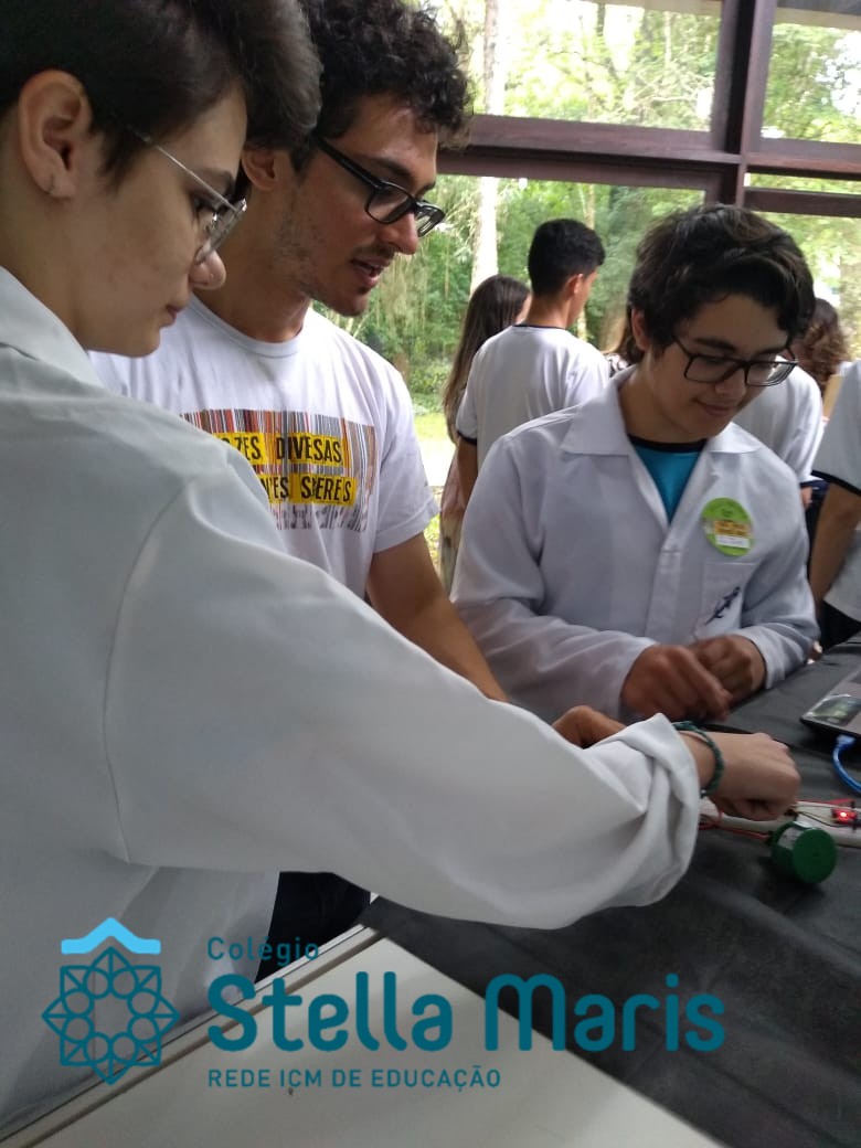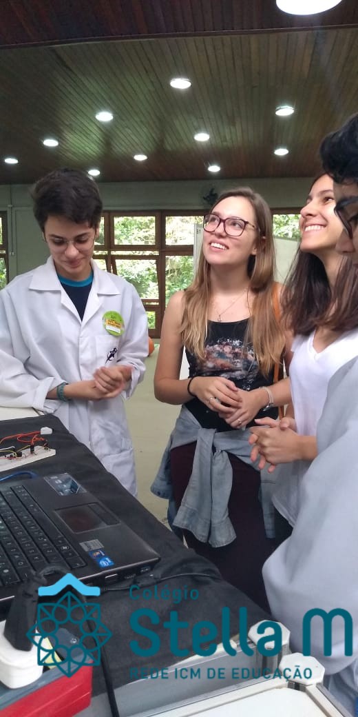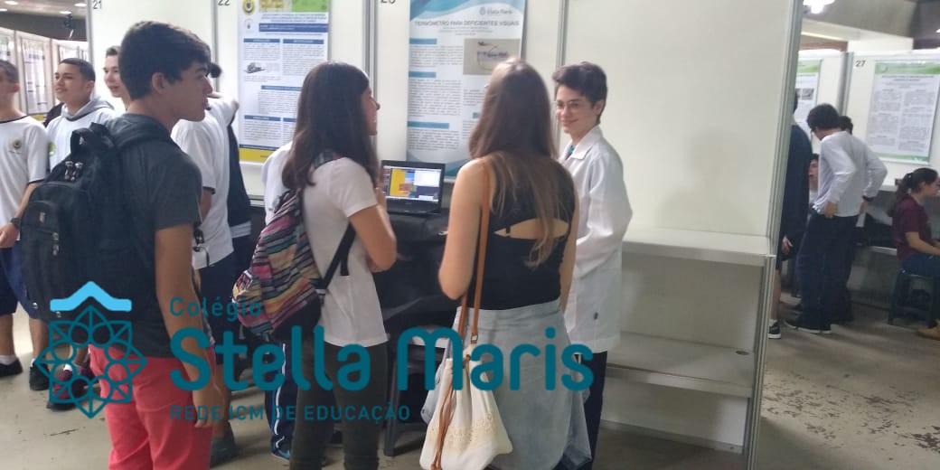 Jovens Pesquisadores Isabela Moresco, da turma 101 e Bruno Silveira, da turma 102, representam o Colégio Stella Maris no Salão Jovem Pesquisador da UFRGS 2018, apresentando o Projeto da Área da Ciências da Natureza “Termômetro para deficientes visuais”. Projeto este, orientado pelos educadores João Antônio, de Física e Carla Ruschel, de Química. Estes momentos vivenciados pelos nossos estudantes representam o investimento e a valorização da Iniciação Científica desenvolvida em nossa Unidade de Ensino.