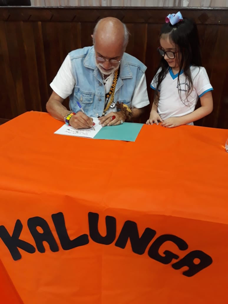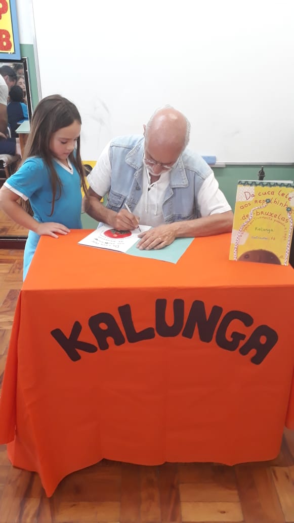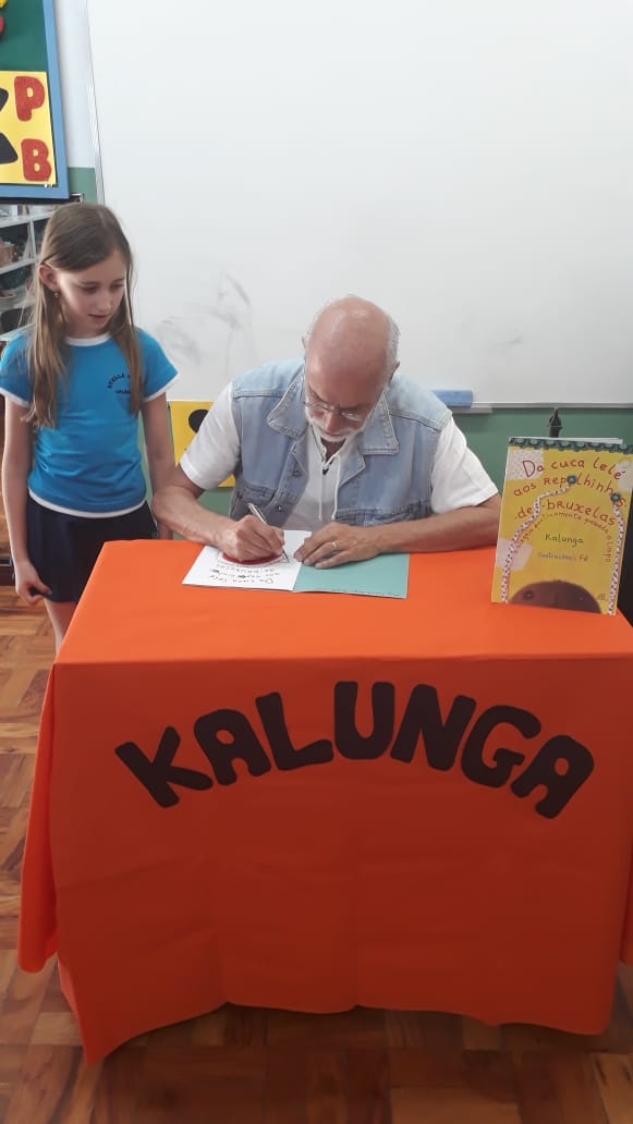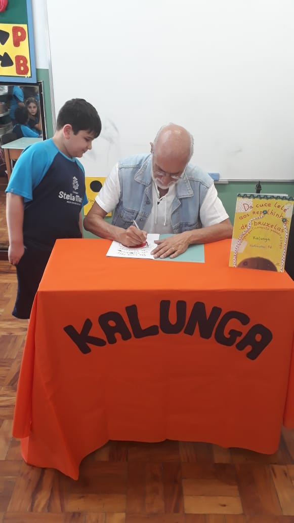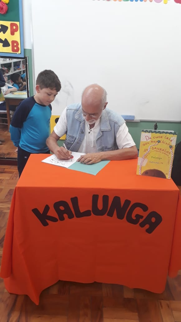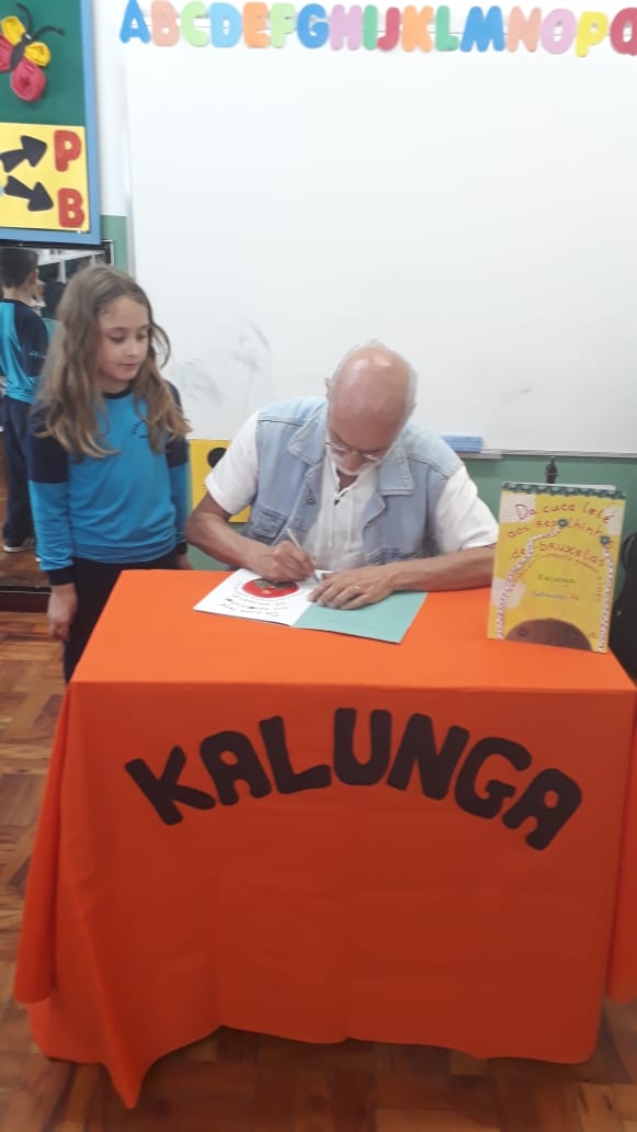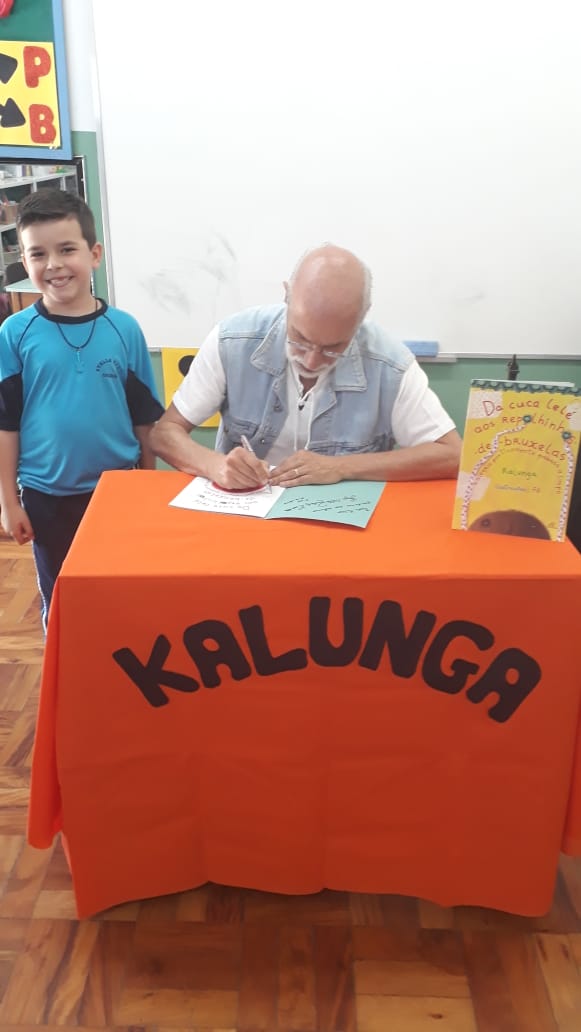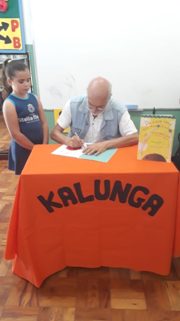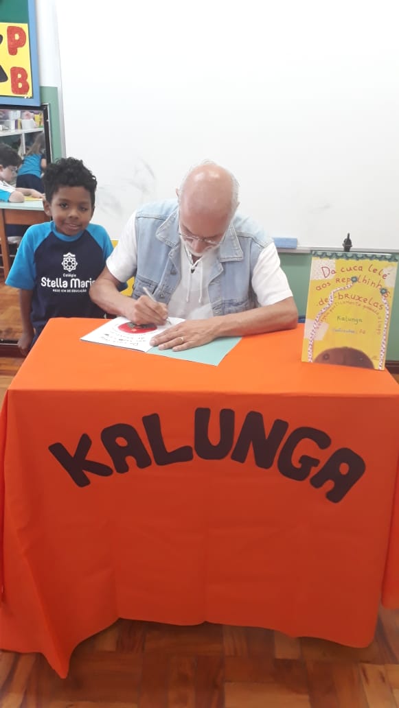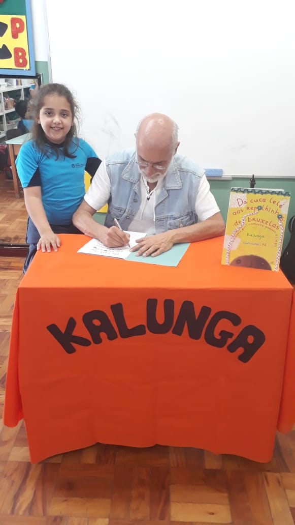 No dia 30 de outubro, recebemos o querido escritor Kalunga nas turmas 21, 22 e 23. Ele é o autor do livro estudado no terceiro trimestre “Da cuca lelé aos repolhinhos-de-bruxelhas”. Conversamos sobre as suas poesias, cantamos, brincamos e recebemos autógrafos. Kalunga é muito especial! Adoramos conhecê-lo! Agradecemos sua disponibilidade e carinho com nossos alunos. Professoras Carina, Cristina e Rita de Cassia.