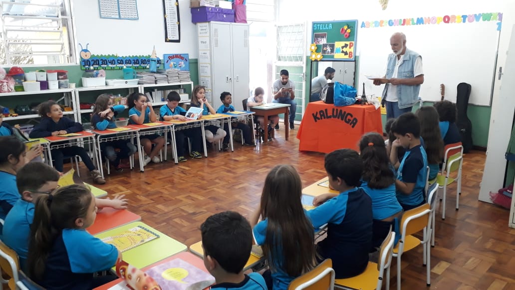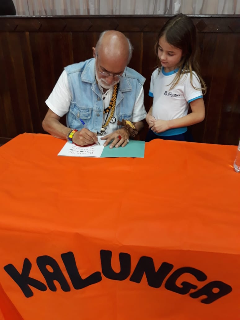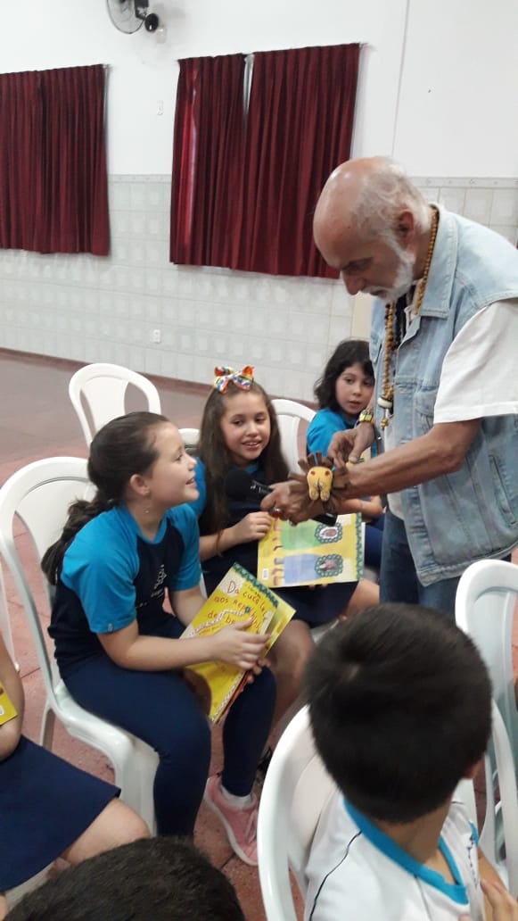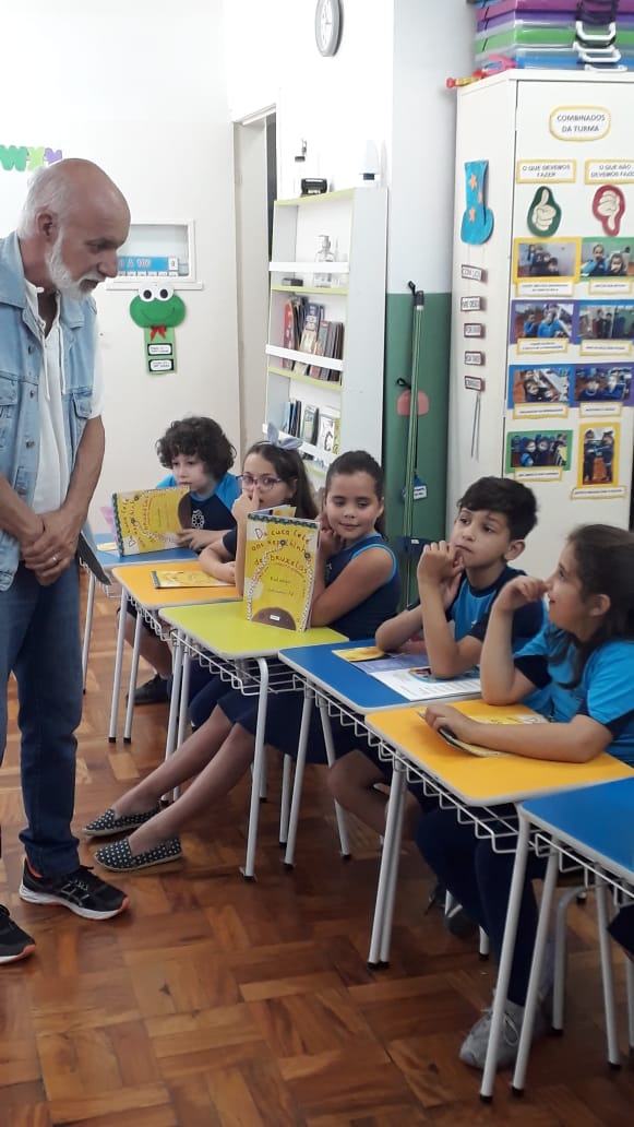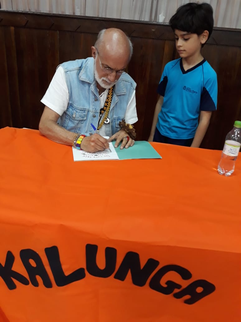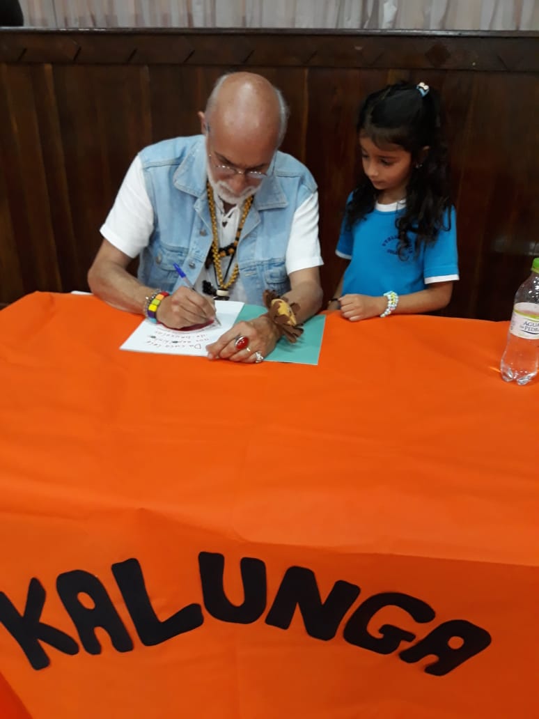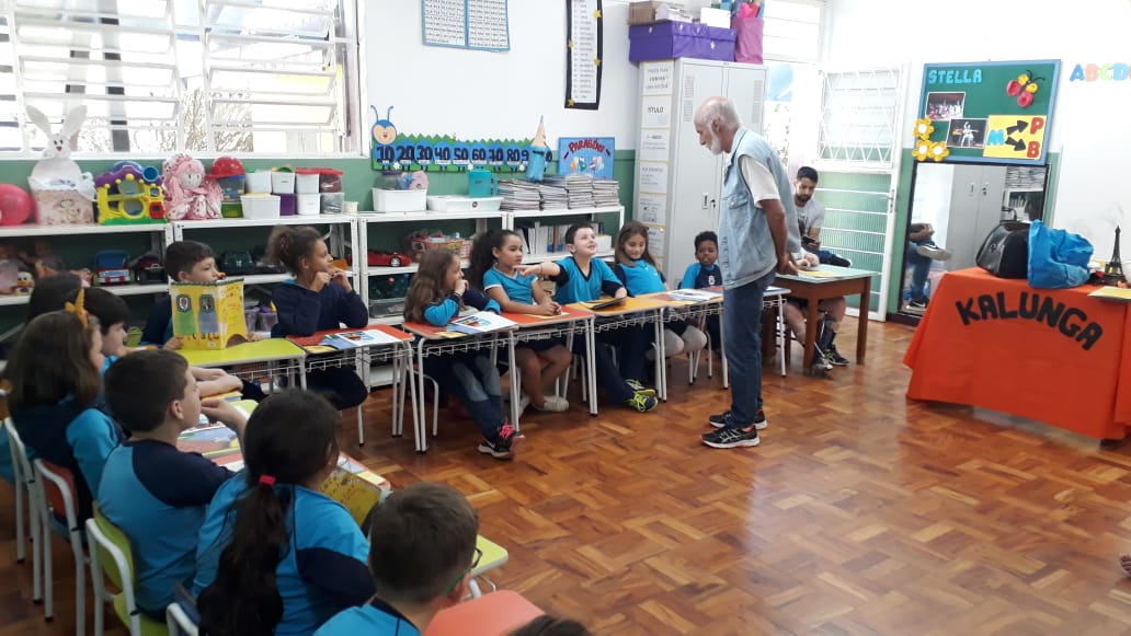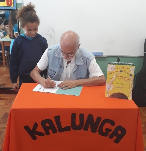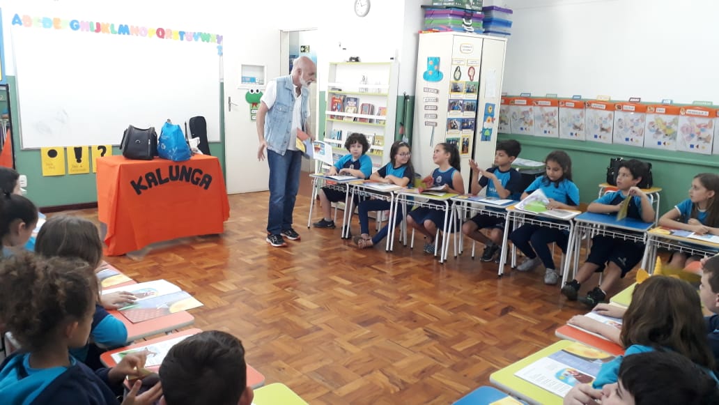 No dia 30 de outubro, recebemos o querido escritor Kalunga nas turmas 21, 22 e 23. Ele é o autor do livro estudado no terceiro trimestre “Da cuca lelé aos repolhinhos-de-bruxelhas”. Conversamos sobre as suas poesias, cantamos, brincamos e recebemos autógrafos. Kalunga é muito especial! Adoramos conhecê-lo! Agradecemos sua disponibilidade e carinho com nossos alunos. Professoras Carina, Cristina e Rita de Cassia.