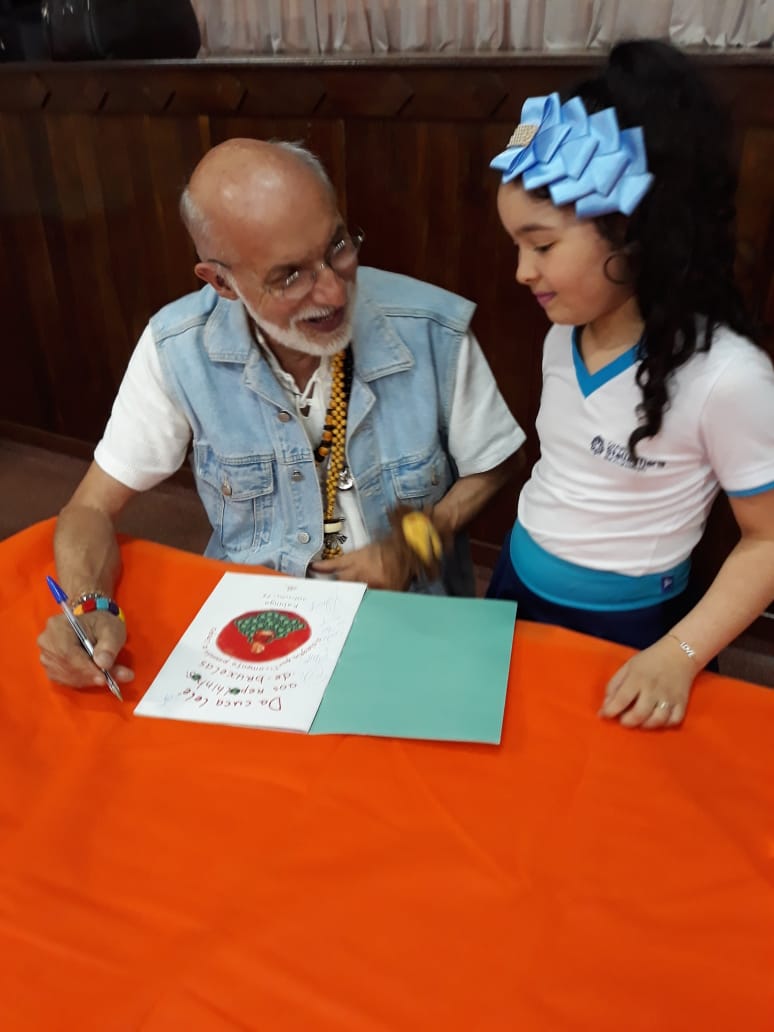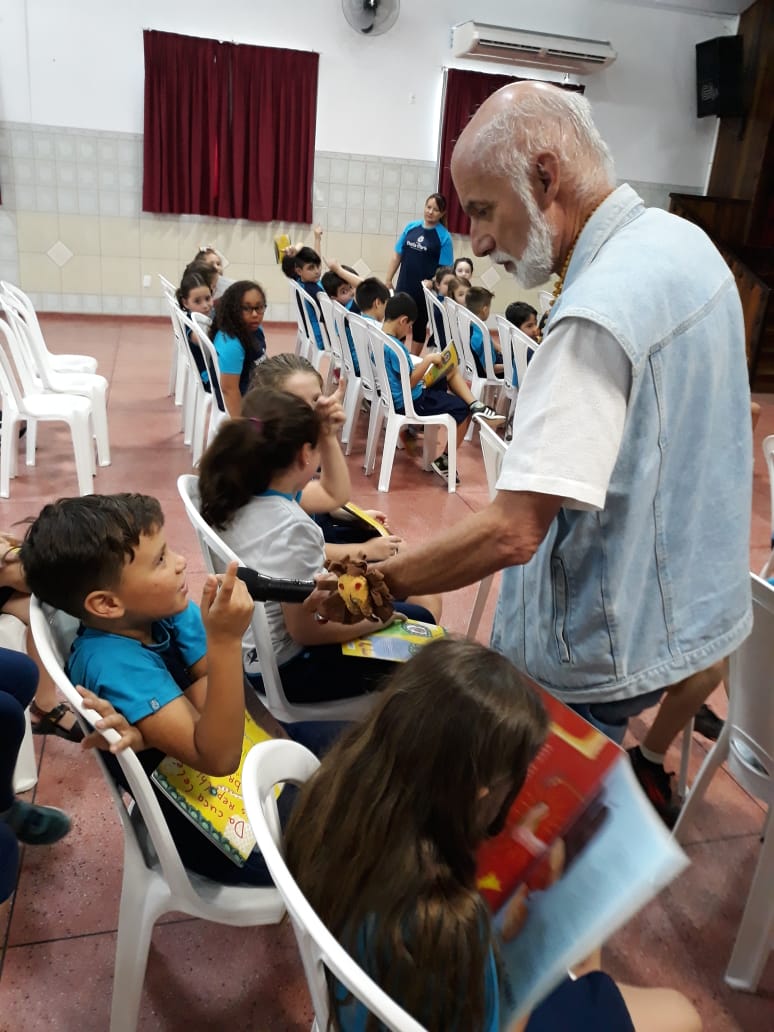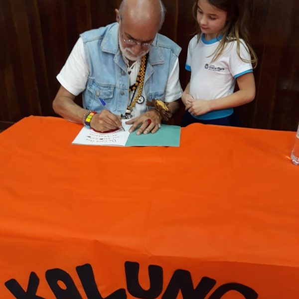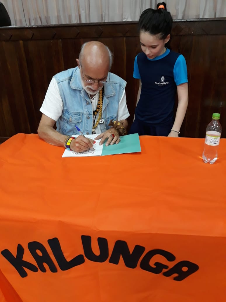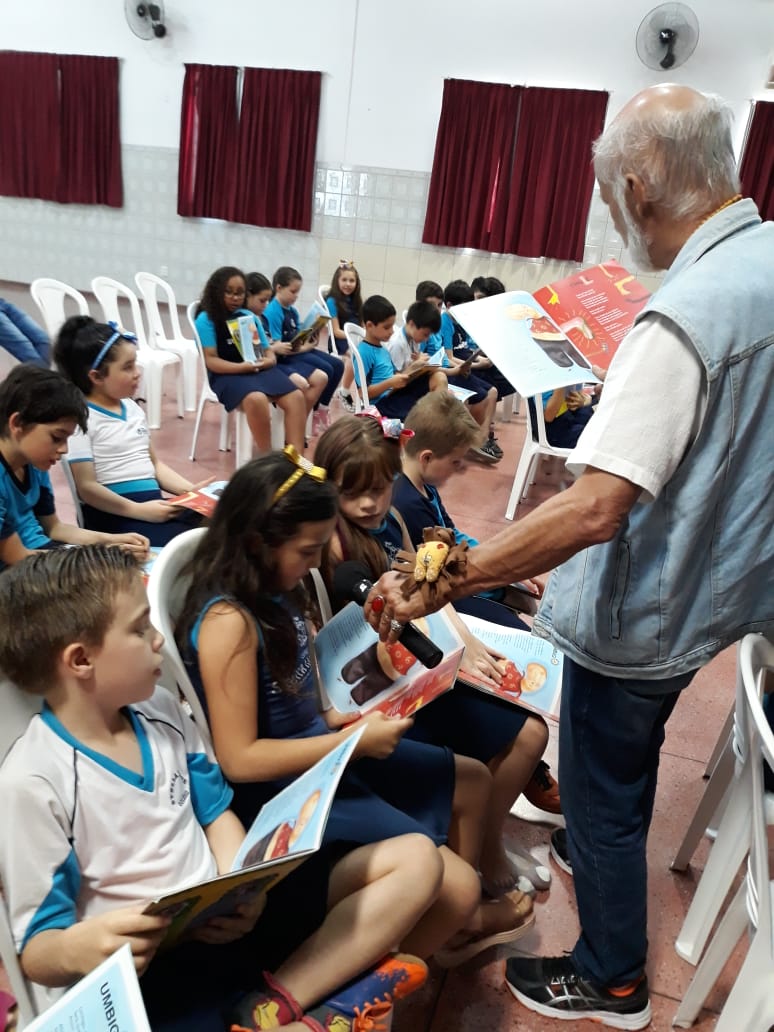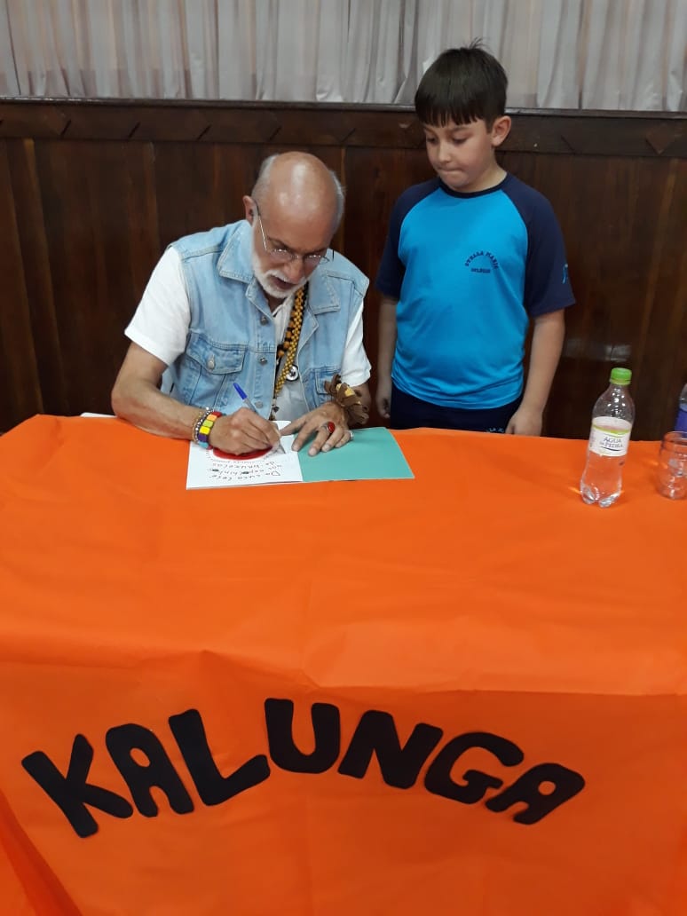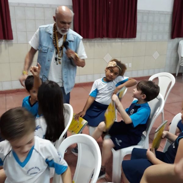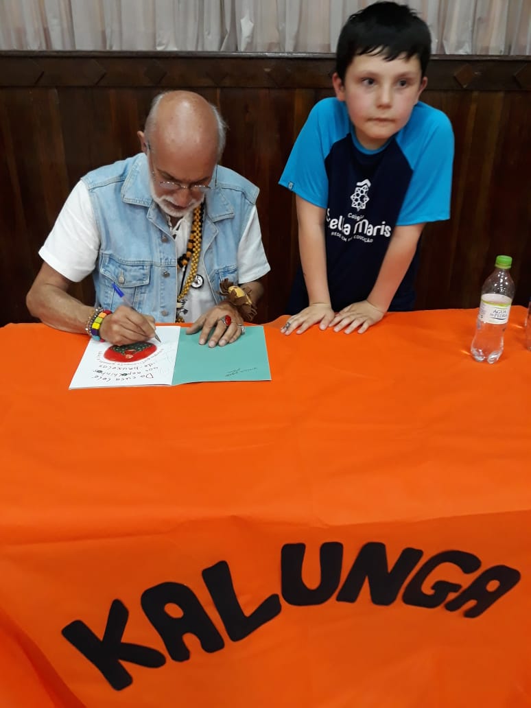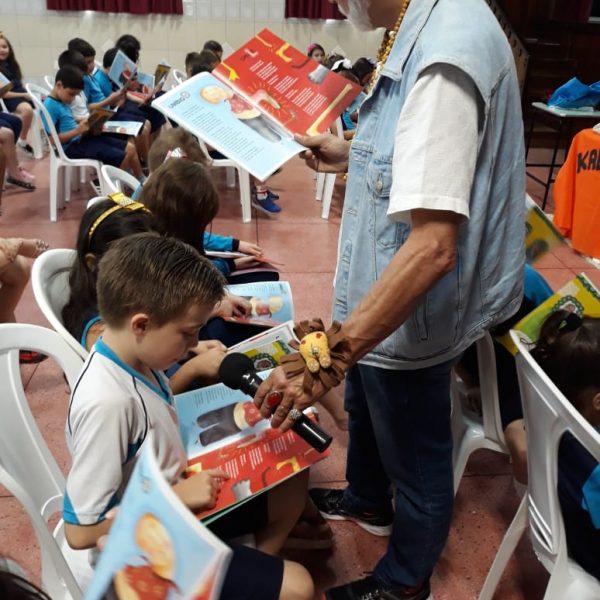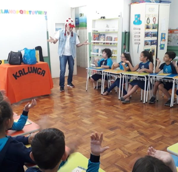 No dia 30 de outubro, recebemos o querido escritor Kalunga nas turmas 21, 22 e 23. Ele é o autor do livro estudado no terceiro trimestre “Da cuca lelé aos repolhinhos-de-bruxelhas”. Conversamos sobre as suas poesias, cantamos, brincamos e recebemos autógrafos. Kalunga é muito especial! Adoramos conhecê-lo! Agradecemos sua disponibilidade e carinho com nossos alunos. Professoras Carina, Cristina e Rita de Cassia.