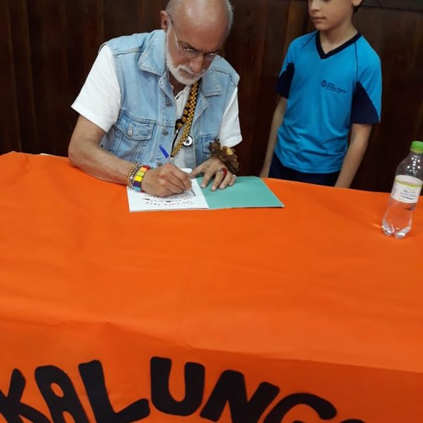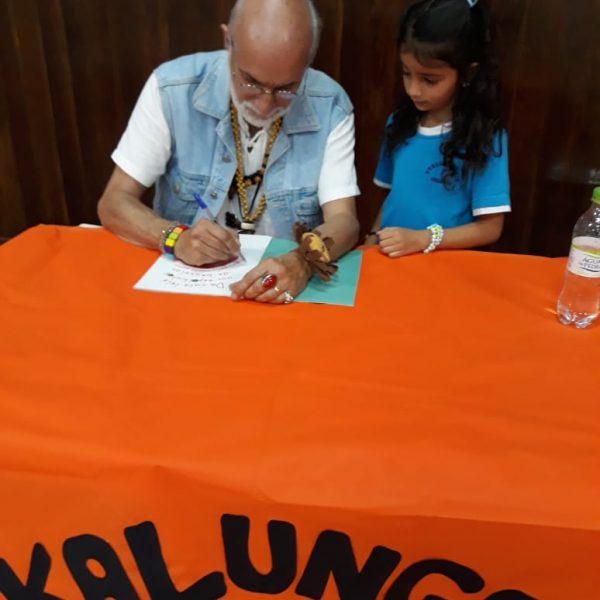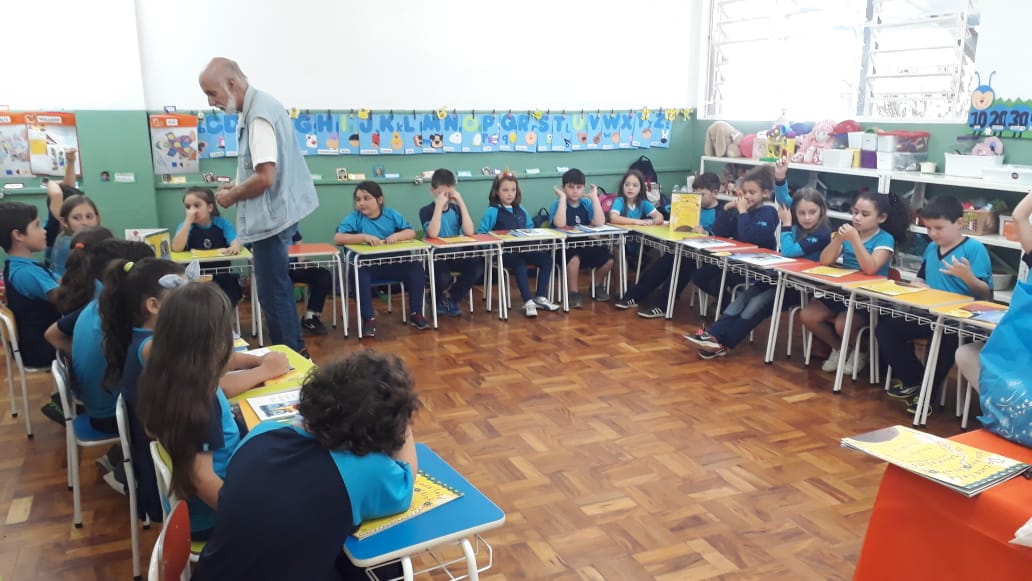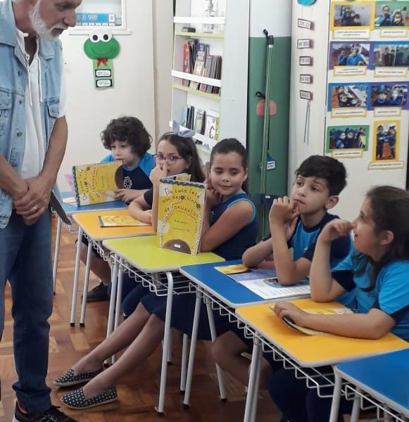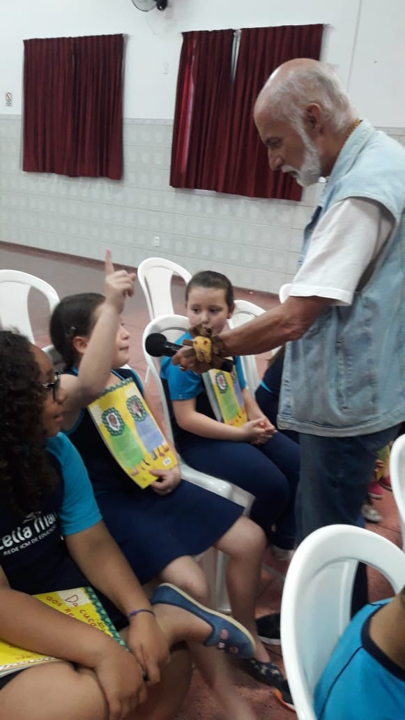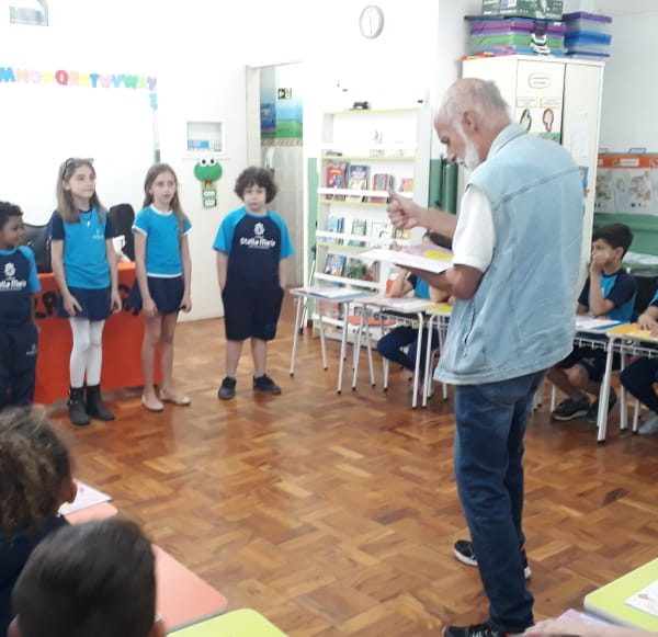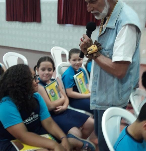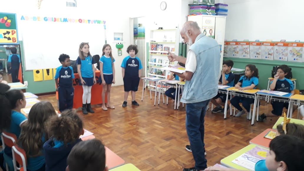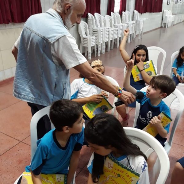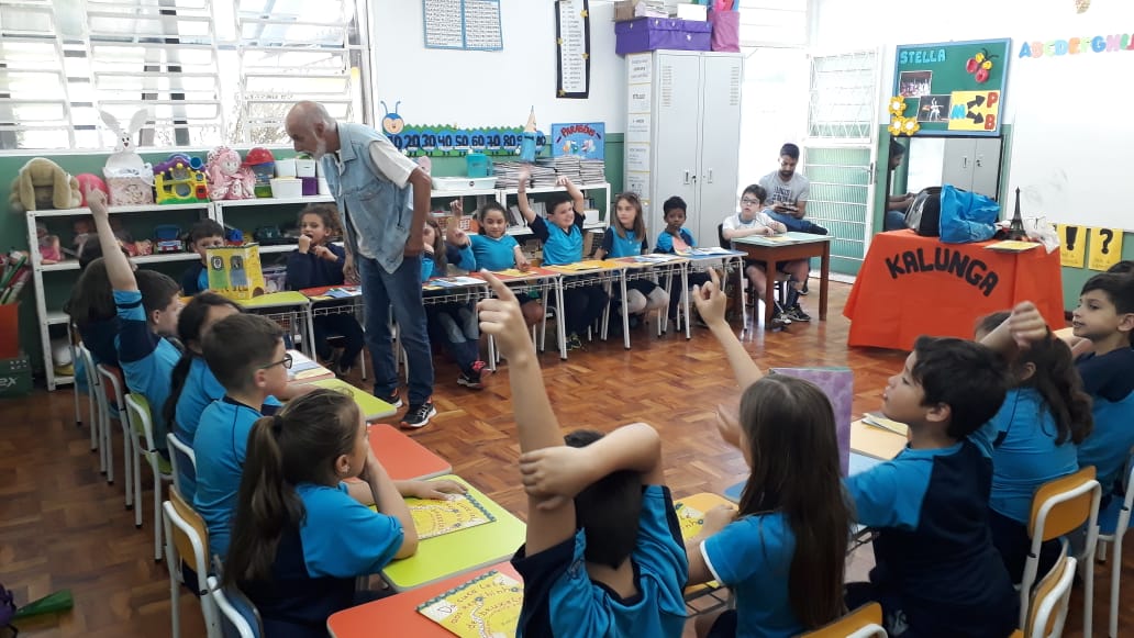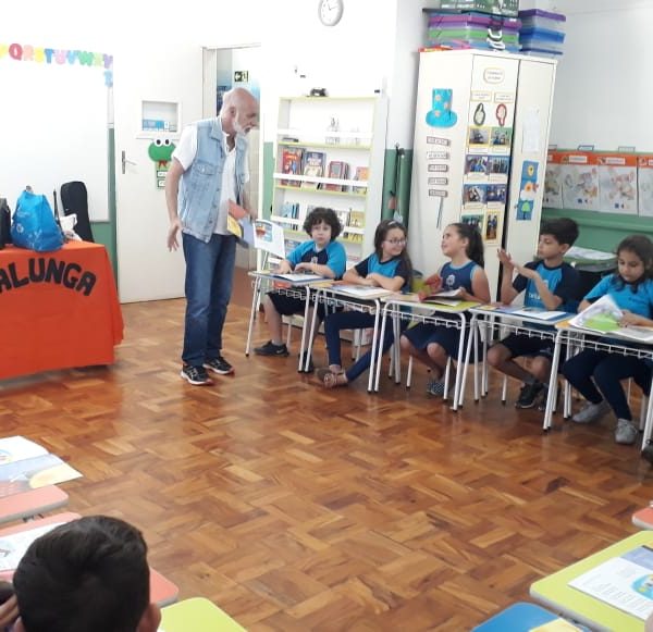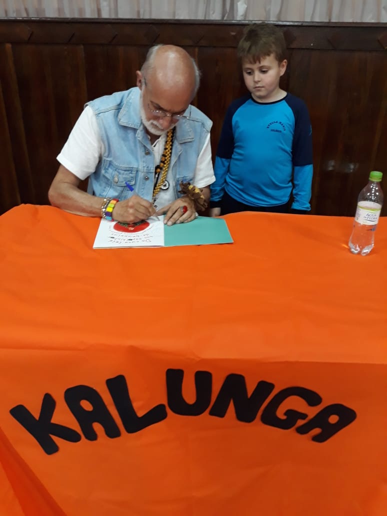 No dia 30 de outubro, recebemos o querido escritor Kalunga nas turmas 21, 22 e 23. Ele é o autor do livro estudado no terceiro trimestre “Da cuca lelé aos repolhinhos-de-bruxelhas”. Conversamos sobre as suas poesias, cantamos, brincamos e recebemos autógrafos. Kalunga é muito especial! Adoramos conhecê-lo! Agradecemos sua disponibilidade e carinho com nossos alunos. Professoras Carina, Cristina e Rita de Cassia.