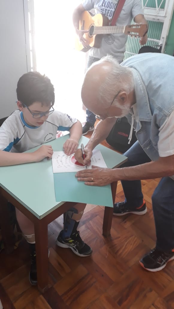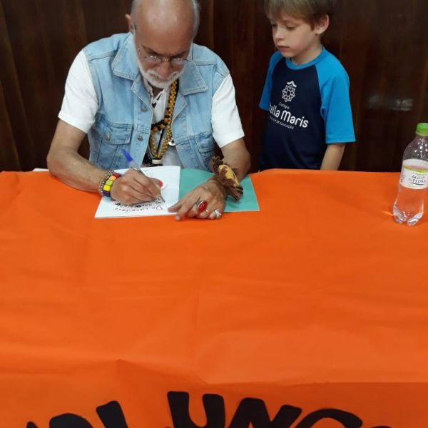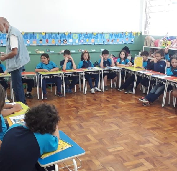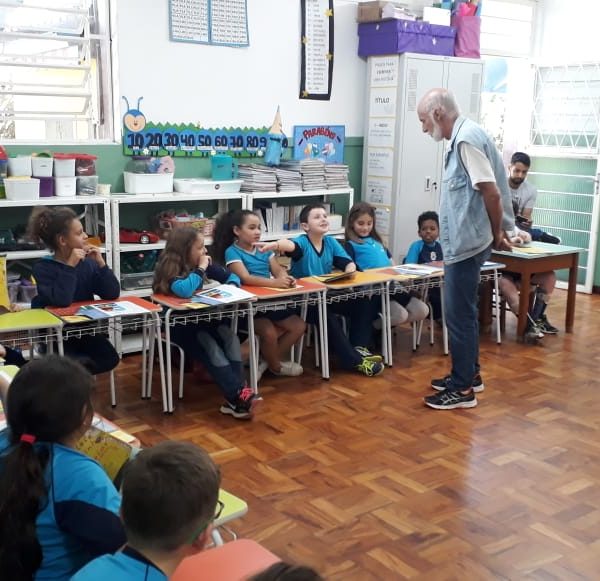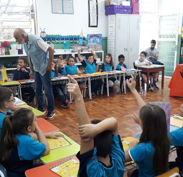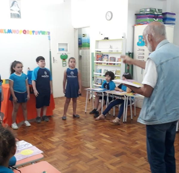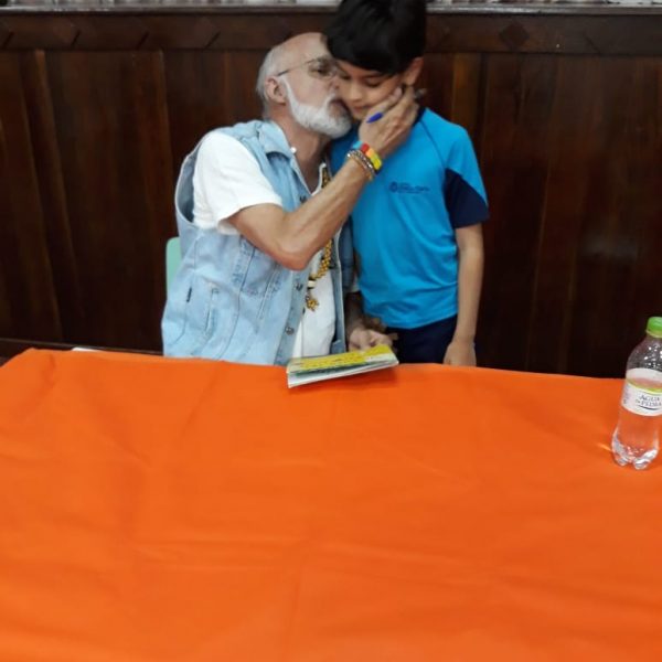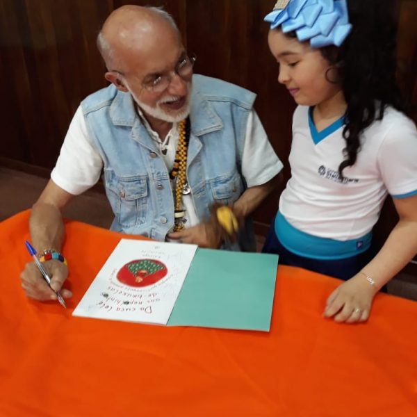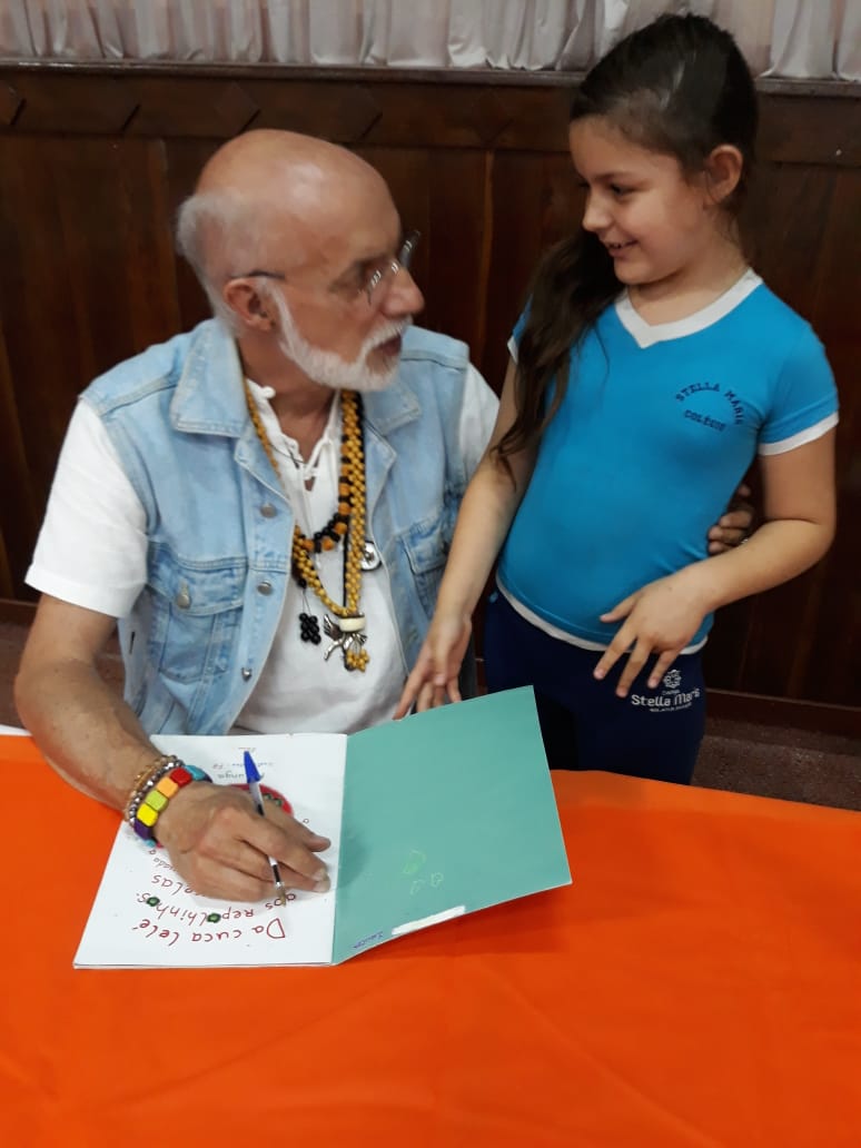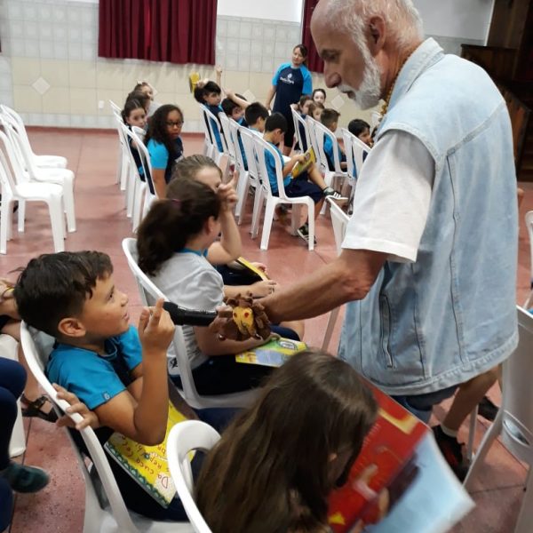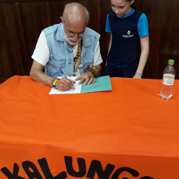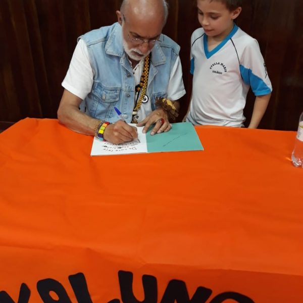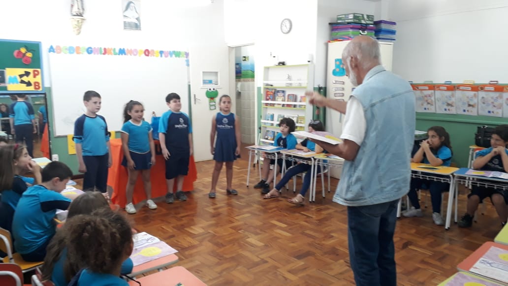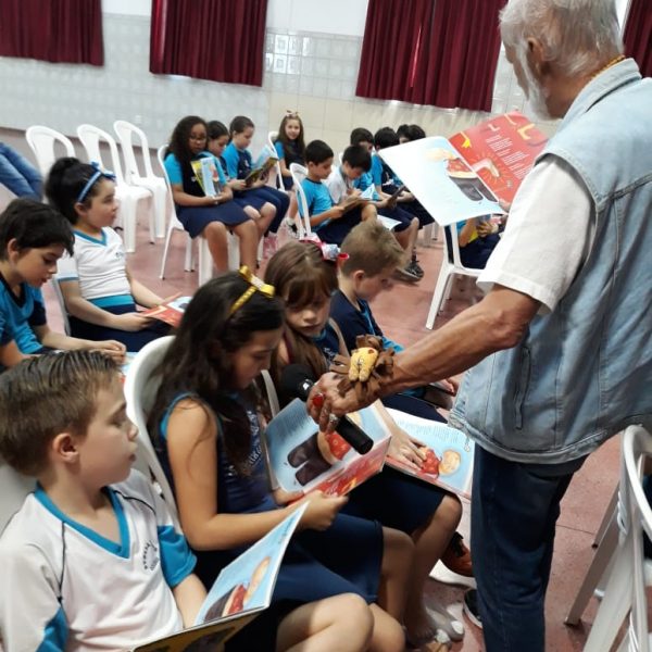 No dia 30 de outubro, recebemos o querido escritor Kalunga nas turmas 21, 22 e 23. Ele é o autor do livro estudado no terceiro trimestre “Da cuca lelé aos repolhinhos-de-bruxelhas”. Conversamos sobre as suas poesias, cantamos, brincamos e recebemos autógrafos. Kalunga é muito especial! Adoramos conhecê-lo! Agradecemos sua disponibilidade e carinho com nossos alunos. Professoras Carina, Cristina e Rita de Cassia.