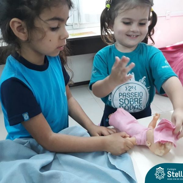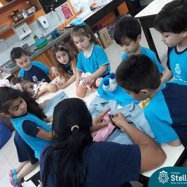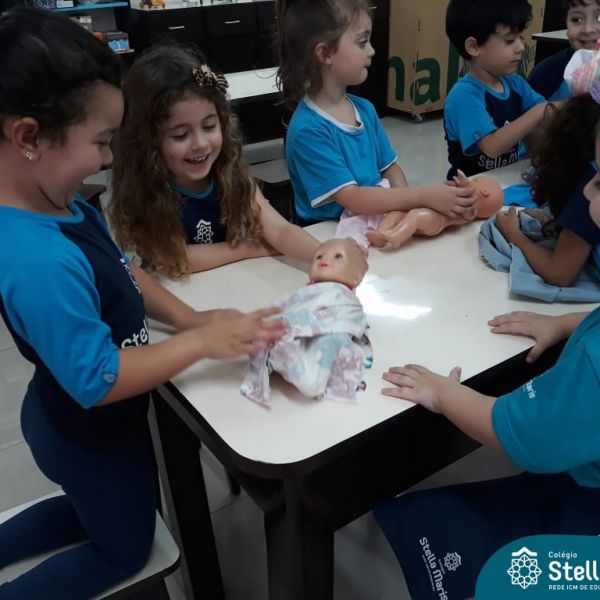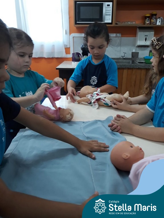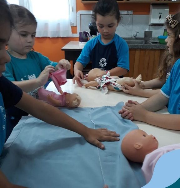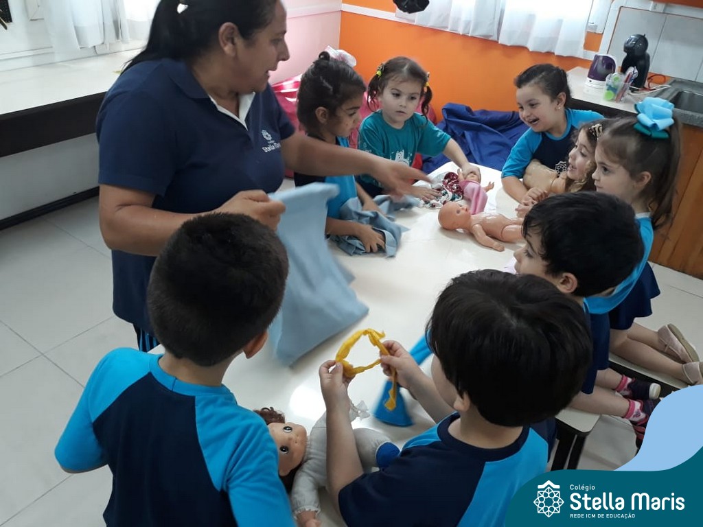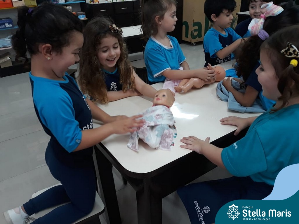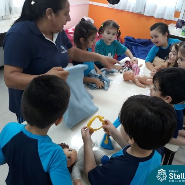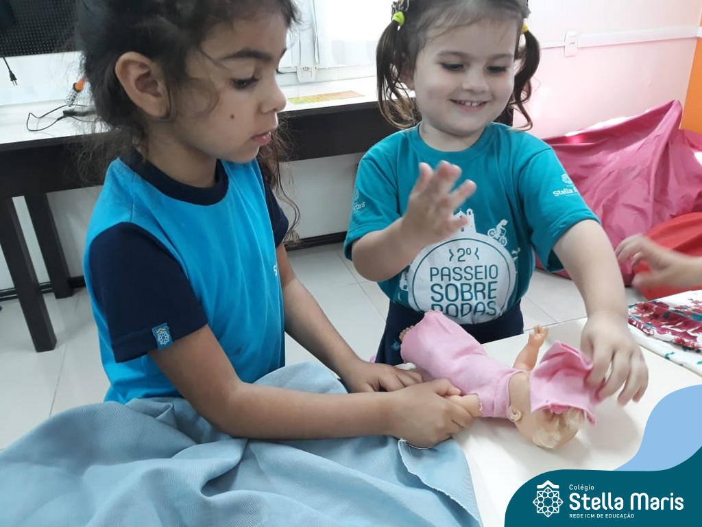 Nossos pequenos do Maternal 2 adoram participar das atividades na Sala Maker. Desta vez, junto com a construção com jogos e a pipoca no microondas, que eles adoram, também confeccionaram roupinhas para bonecas, com a ajuda da auxiliar Lélis! Que momentos únicos!