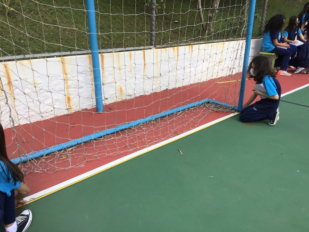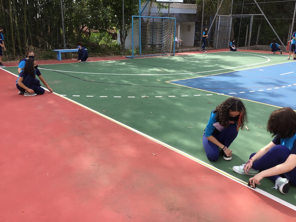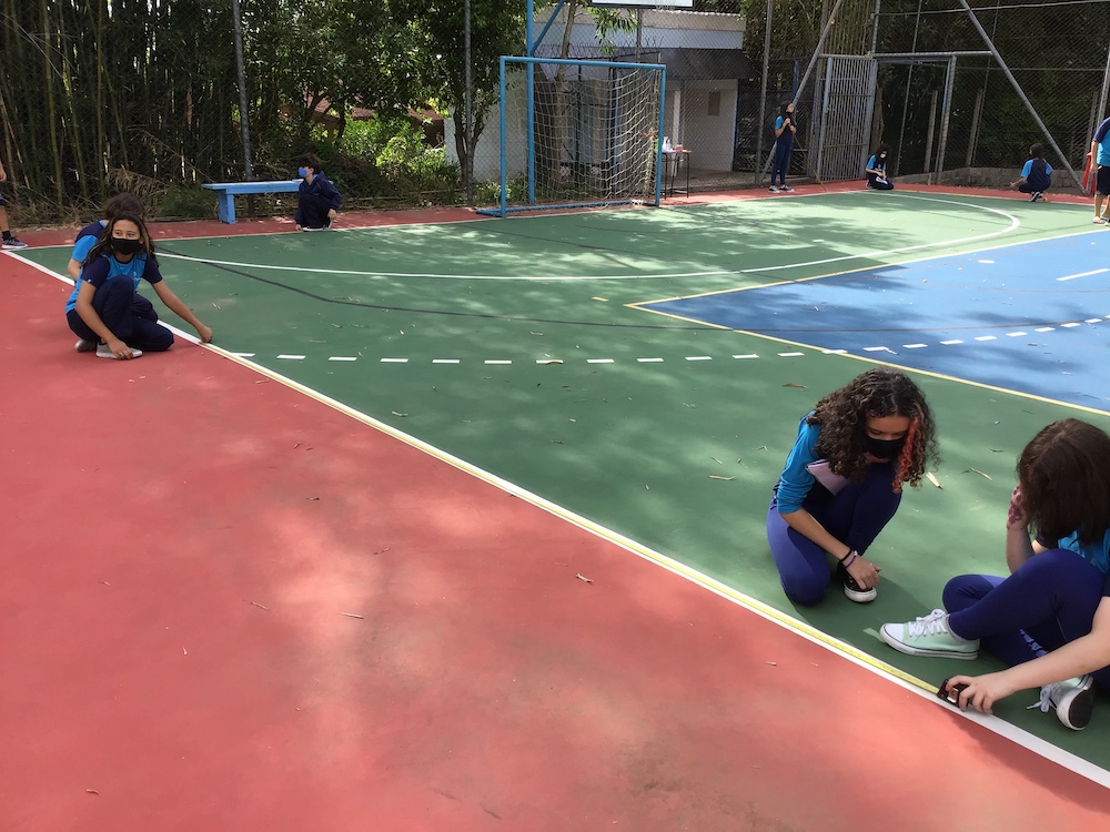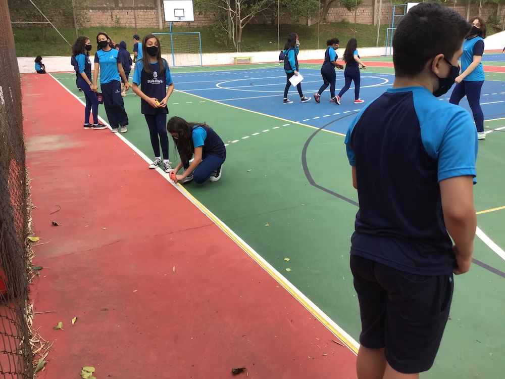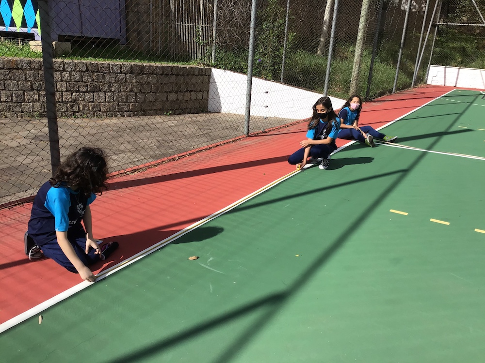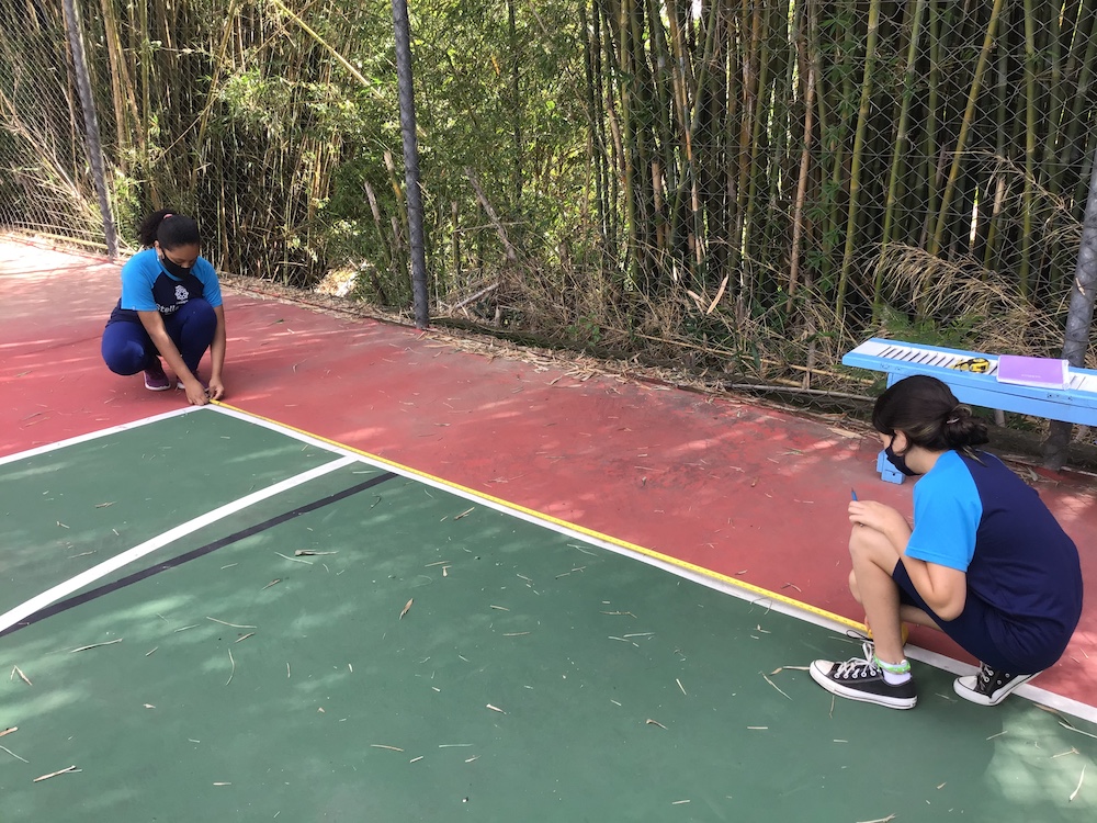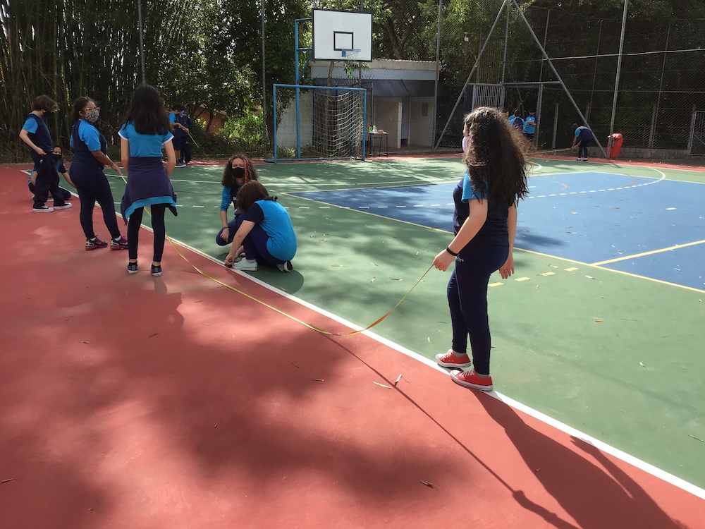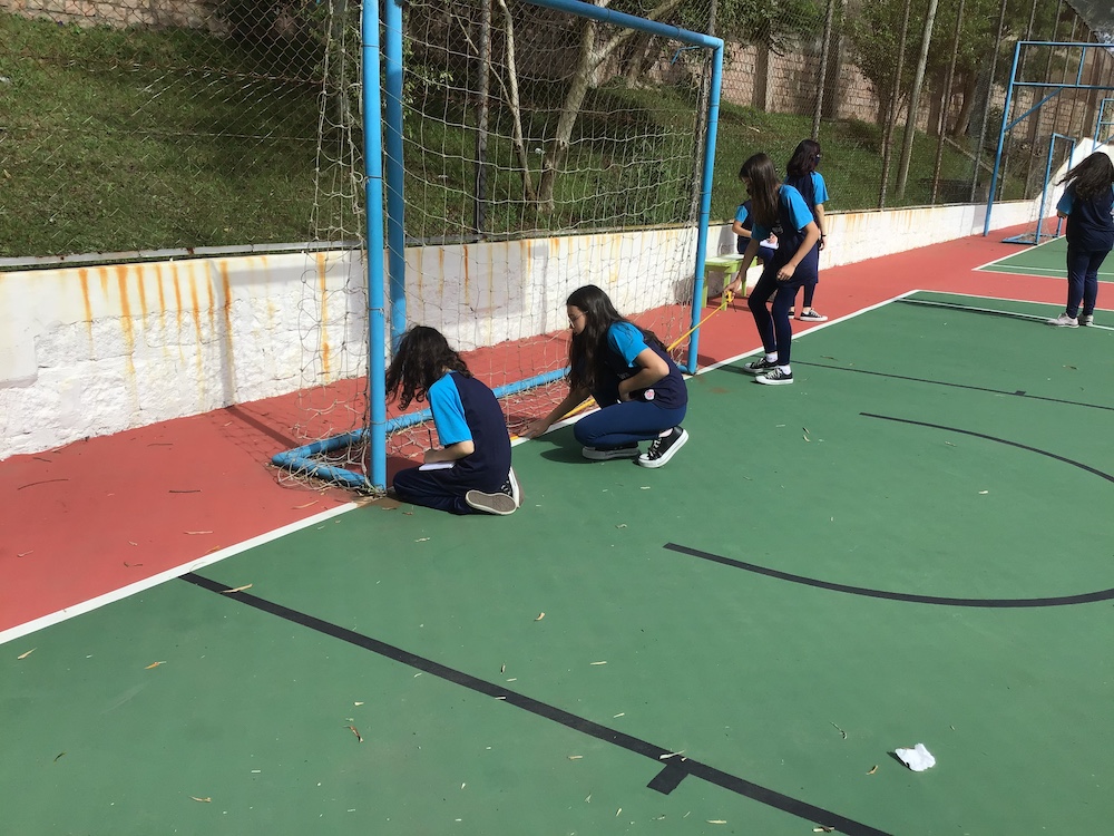 A turma 61, durante a aula de Matemática, com o Professor Elson, coletou dados na quadra de esportes do Colégio, para trabalhar o conteúdo de metros, múltiplos e submúltiplos.