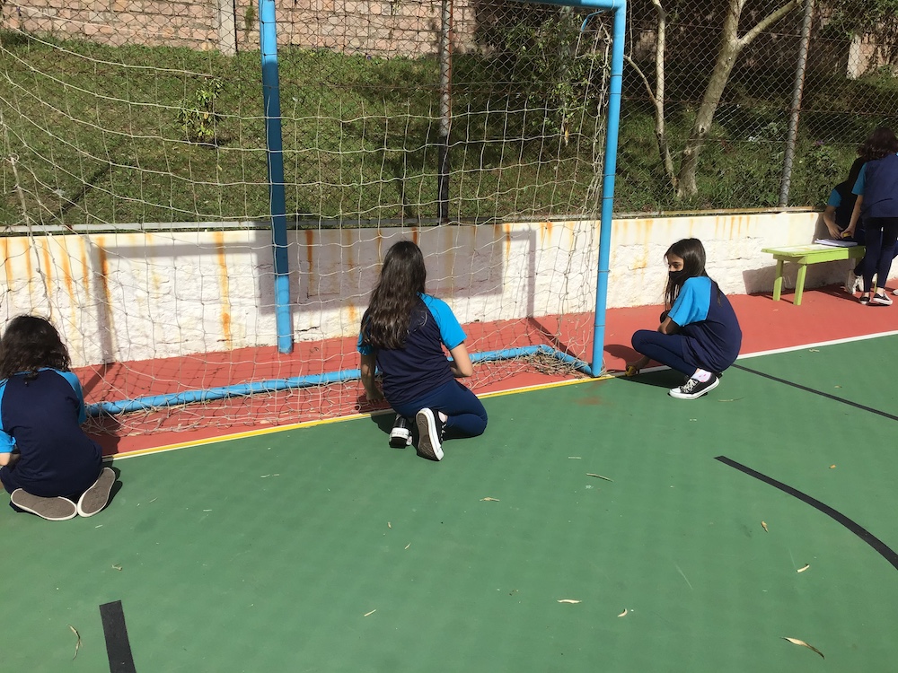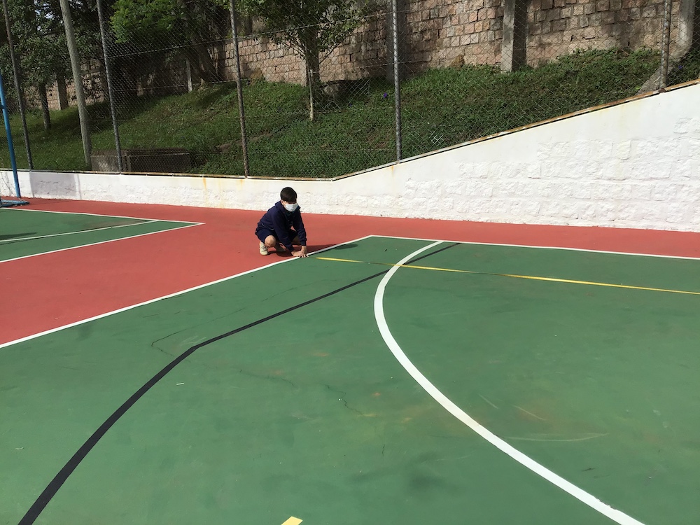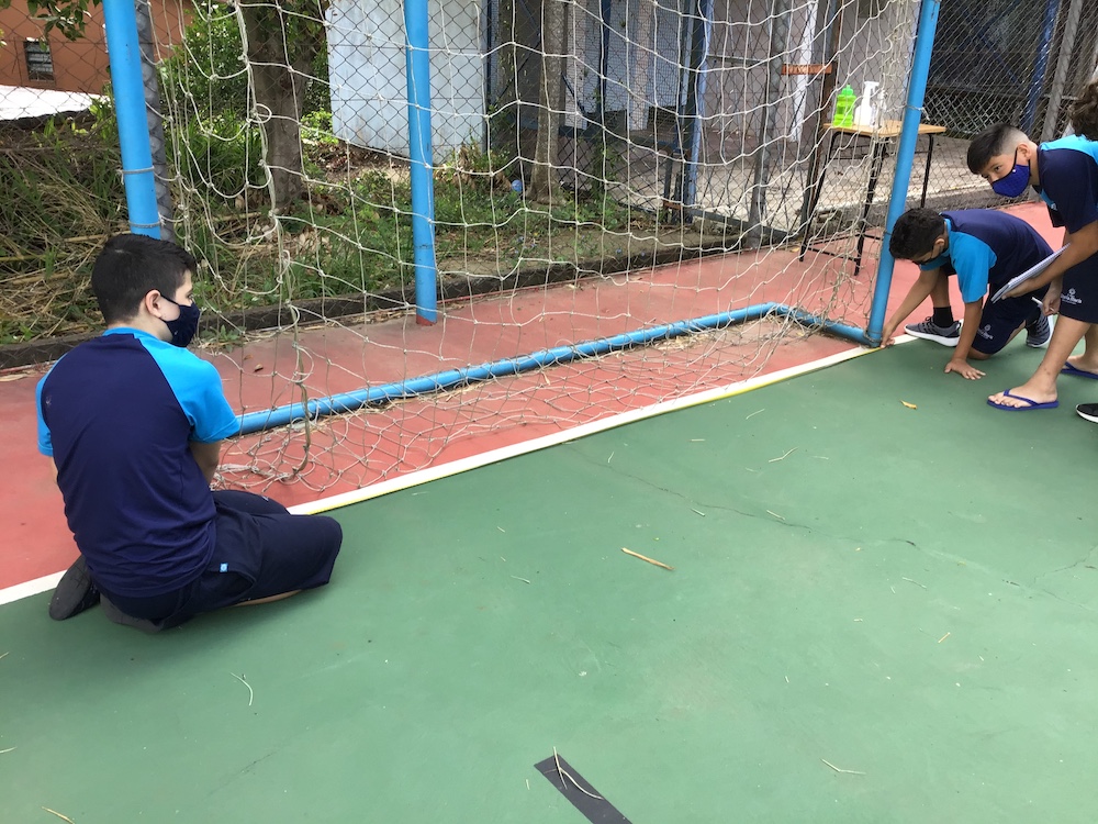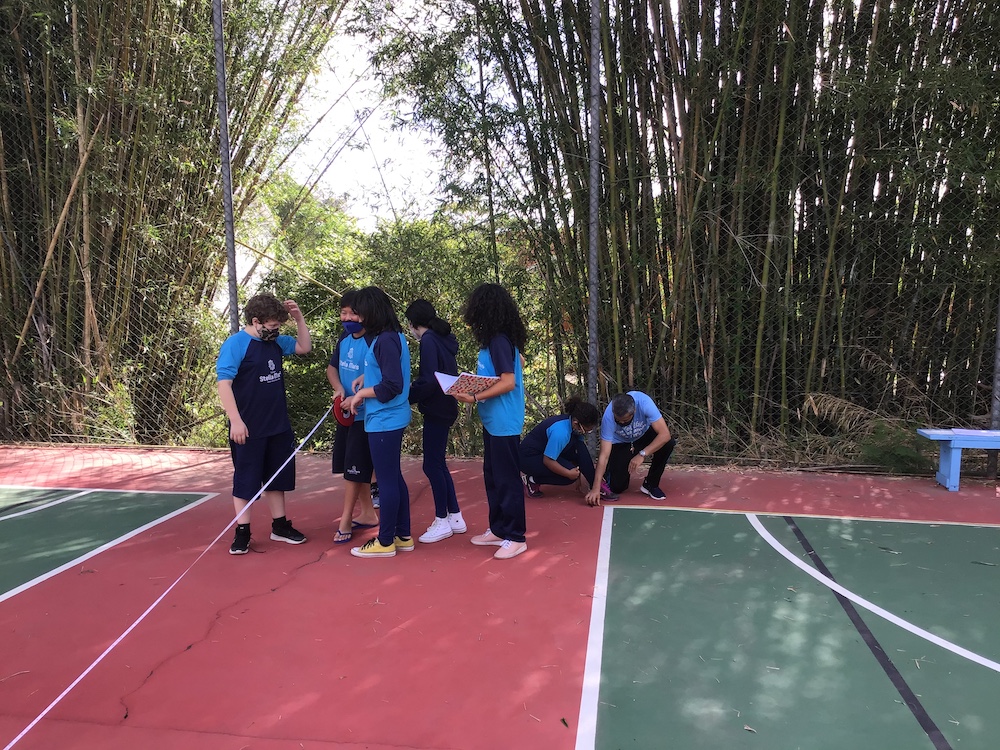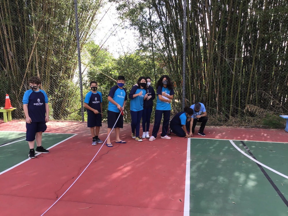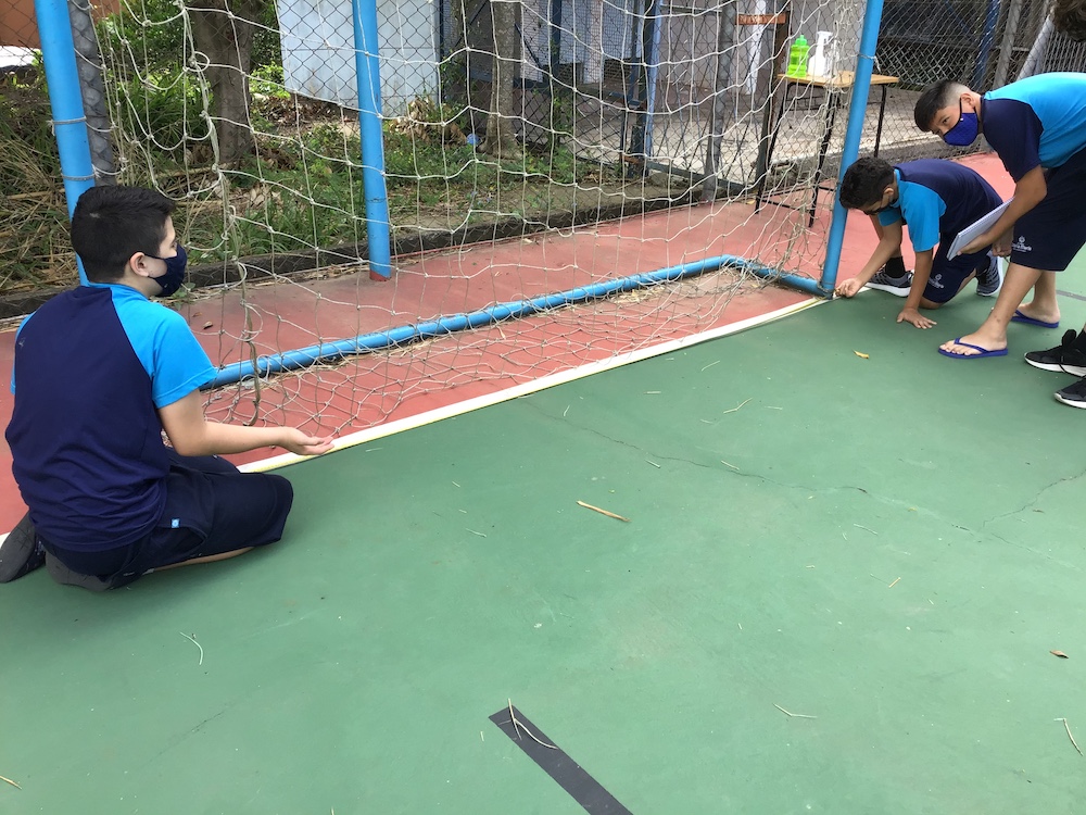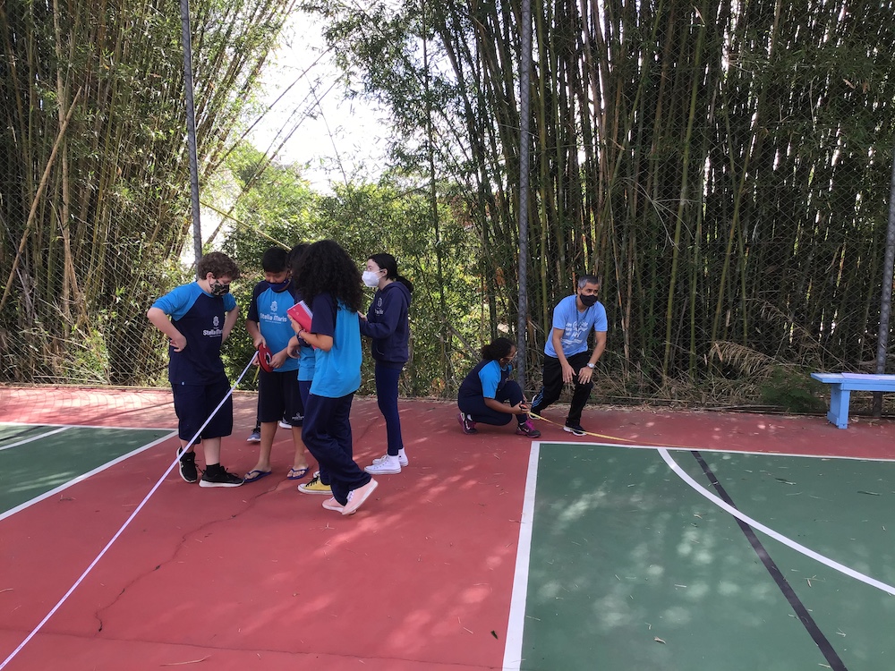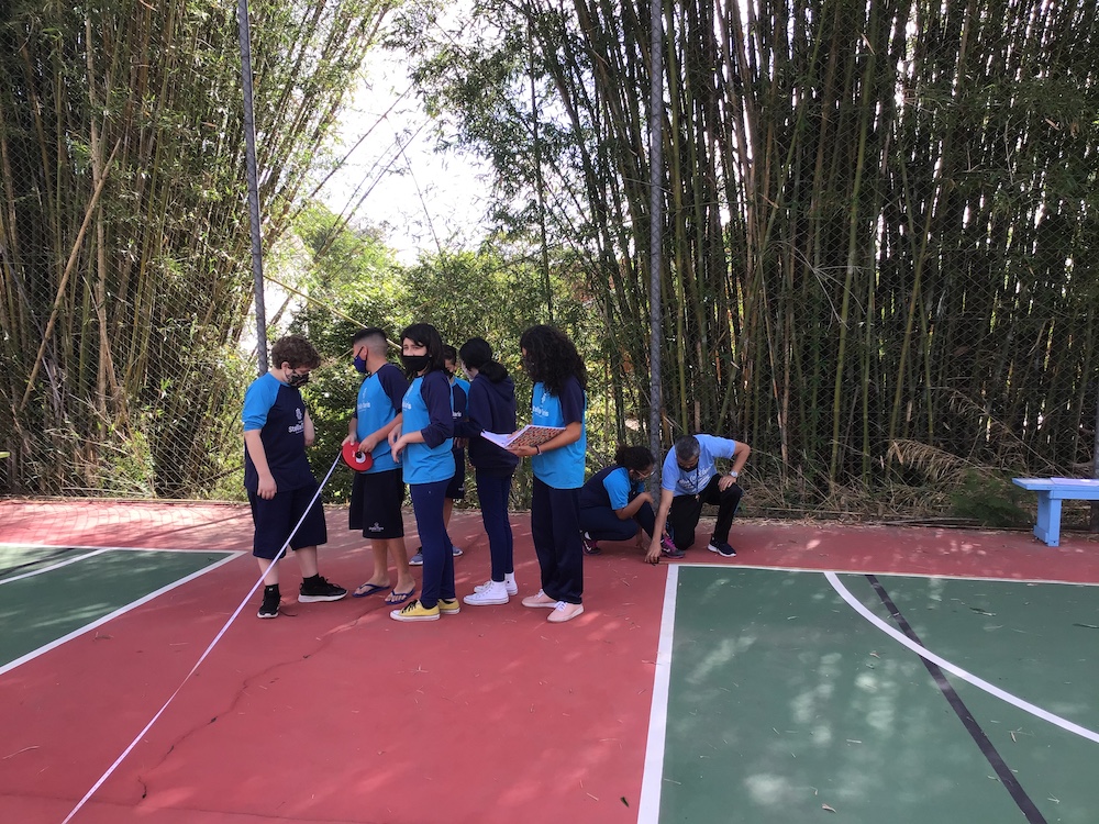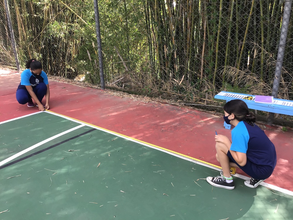 A turma 61, durante a aula de Matemática, com o Professor Elson, coletou dados na quadra de esportes do Colégio, para trabalhar o conteúdo de metros, múltiplos e submúltiplos.