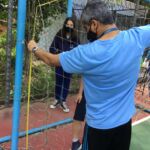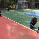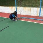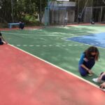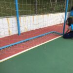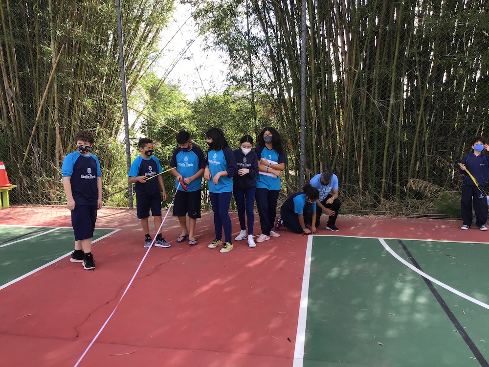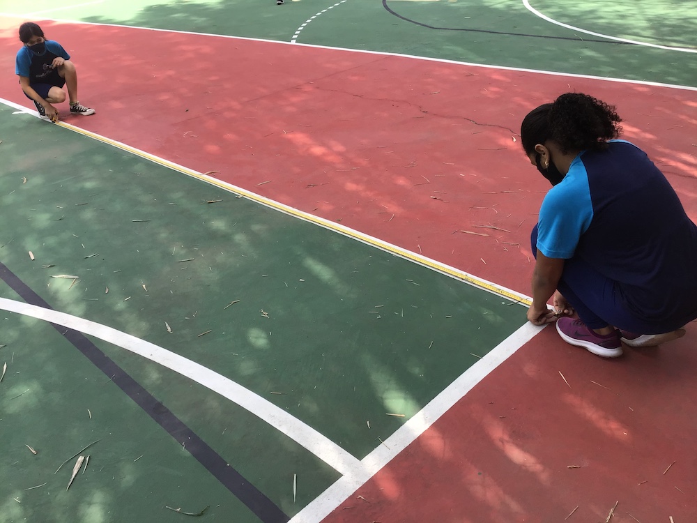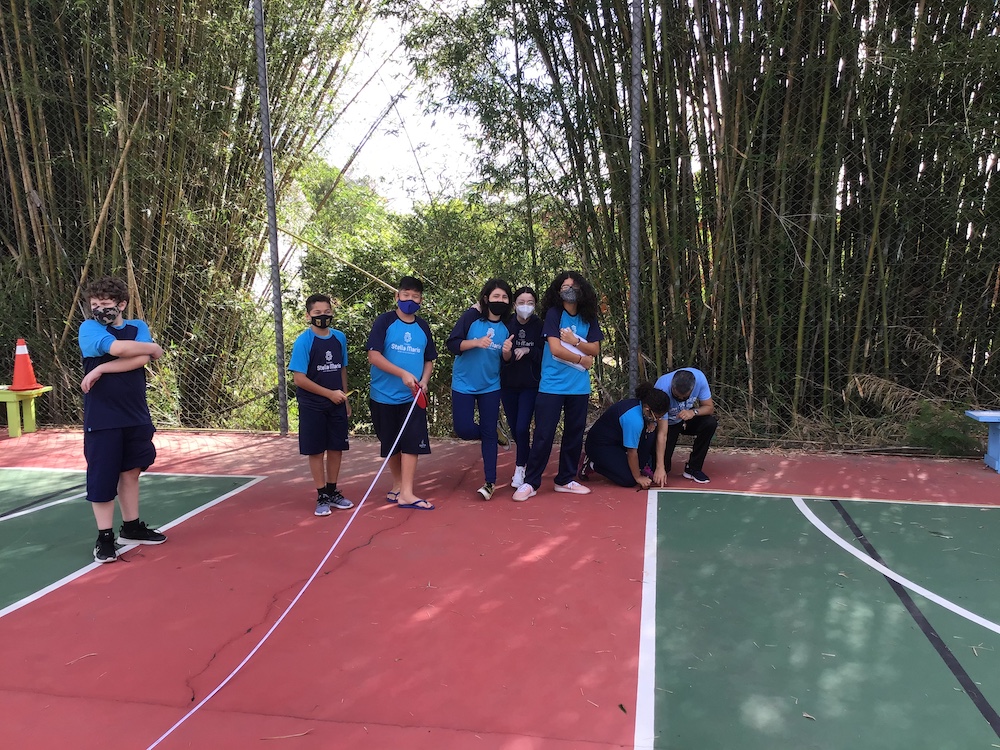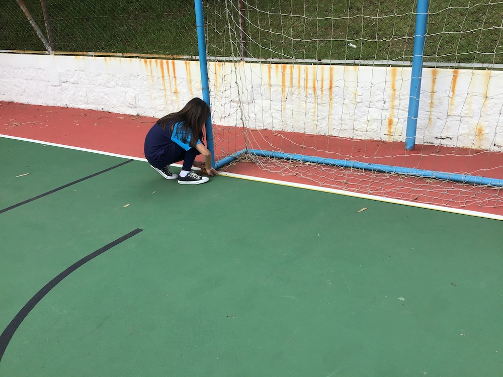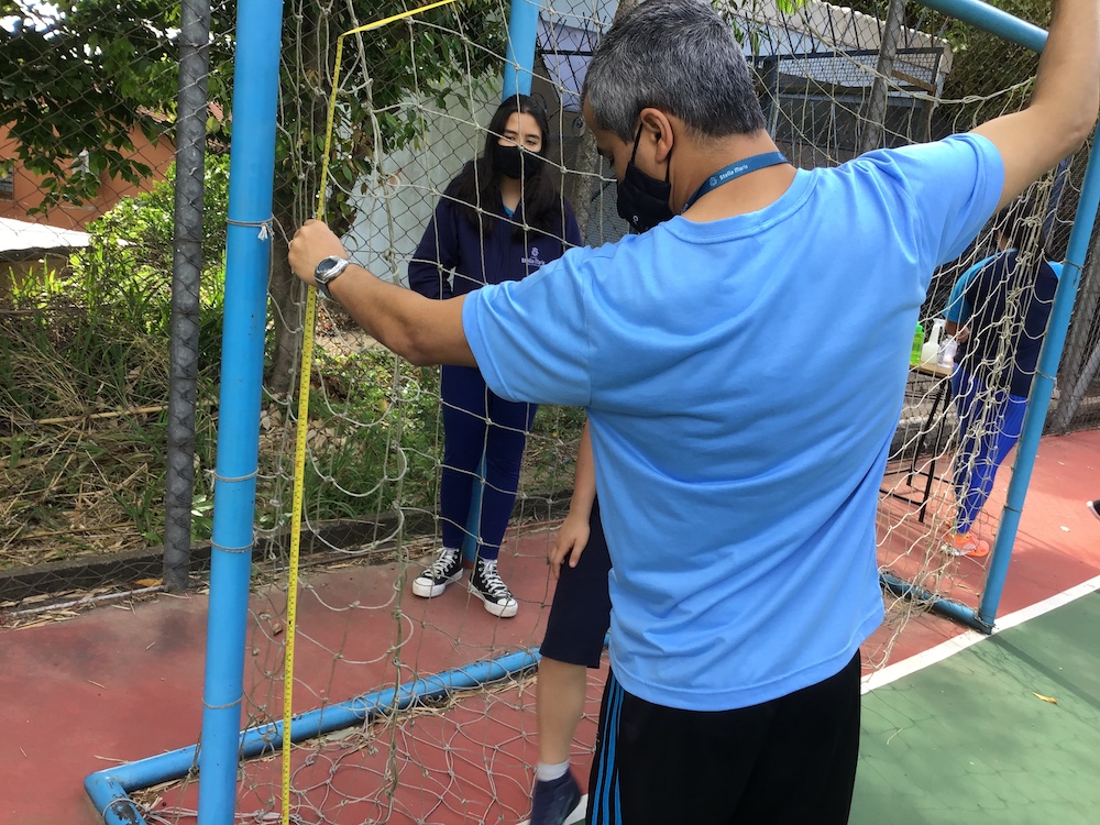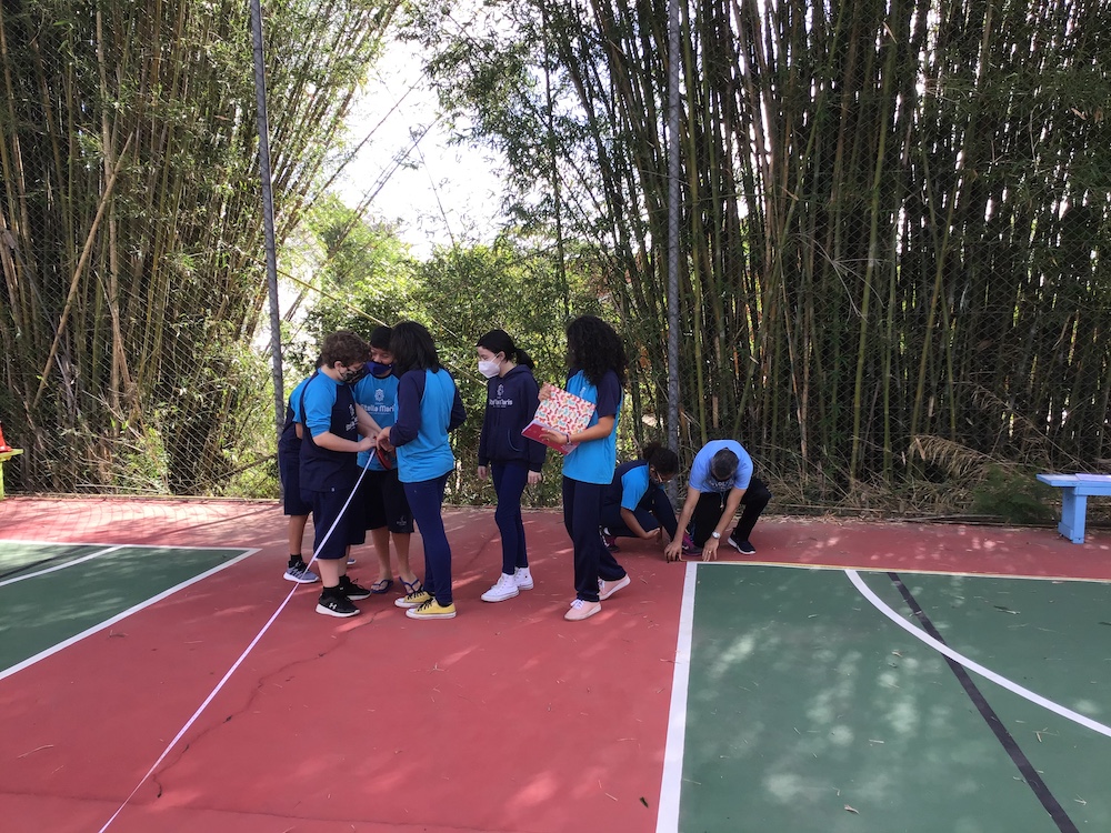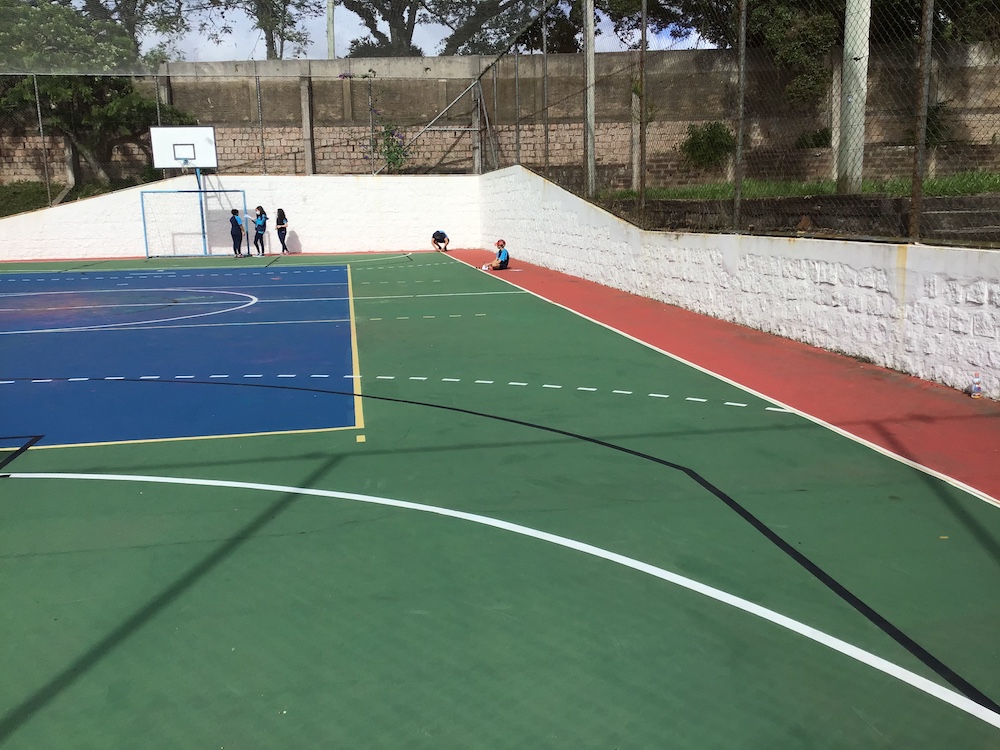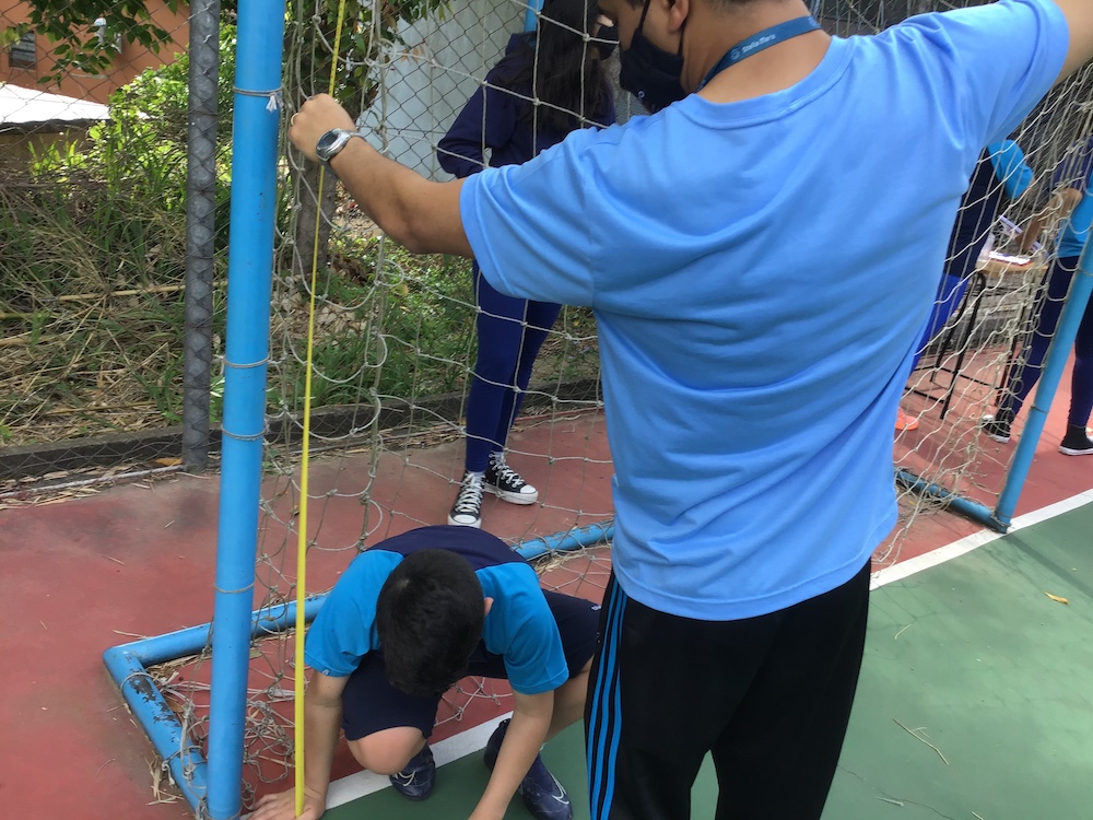A turma 61, durante a aula de Matemática, com o Professor Elson, coletou dados na quadra de esportes do Colégio, para trabalhar o conteúdo de metros, múltiplos e submúltiplos.