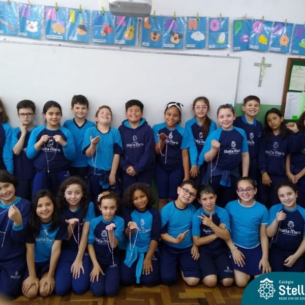 O mês de outubro é dedicado à devoção e orações ao Rosário, que tem como significado oferecer rosas a Nossa Senhora. Cada turma, em um momento especial na sala de aula e na Capela do Colégio, dedicou um tempo para reflexão e oração, culminando com a bênção dos terços das turmas da Educação Infantil ao 5° ano e, as turmas 62, 63 e 73, pelo Padre Edison e a professora Sonia.