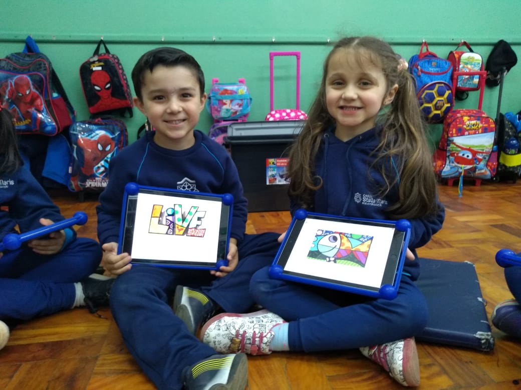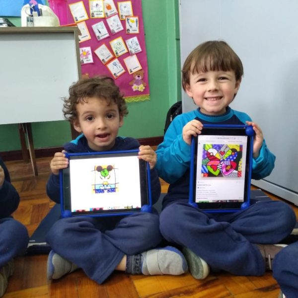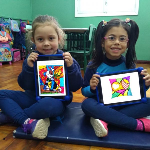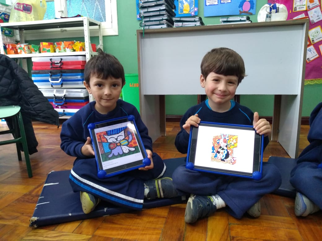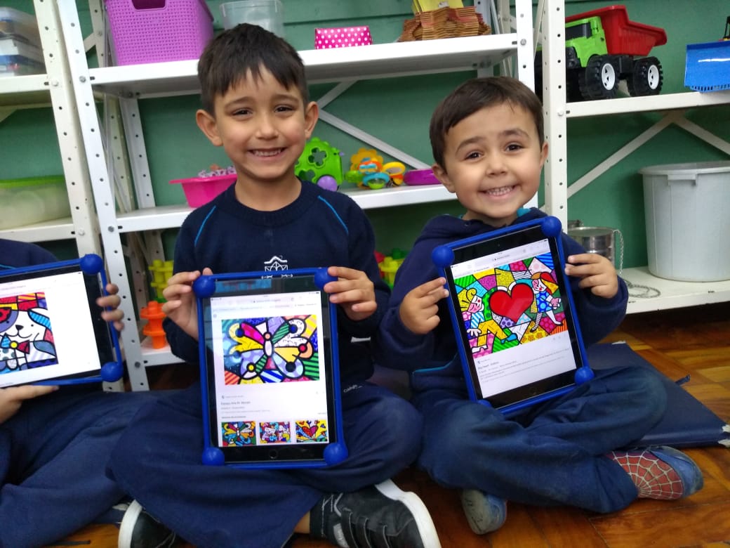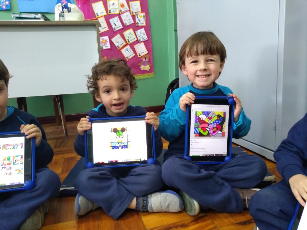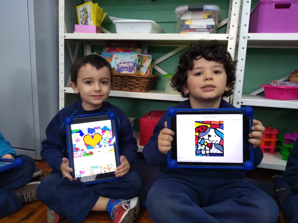 Os recursos tecnológicos contribuem para que os alunos sejam protagonistas no processo de ensino e aprendizagem. Pensando nisso, as turmas de N2 utilizaram os iPads para realizar uma pesquisa sobre o pintor Romero Britto, podendo interagir e trocar ideias sobre suas obras.