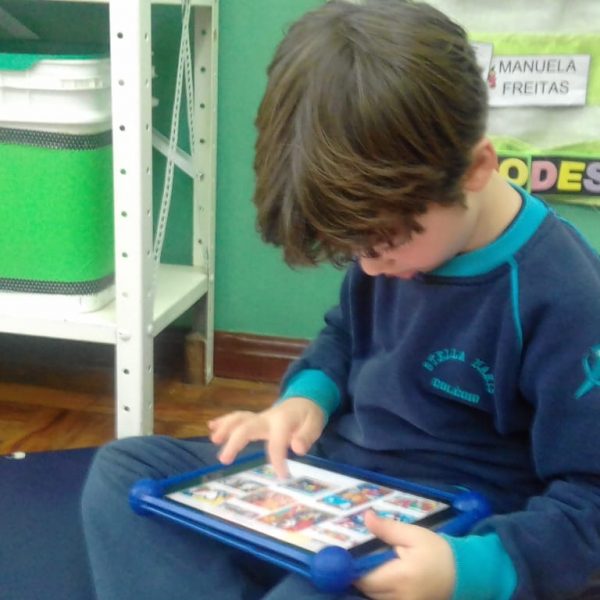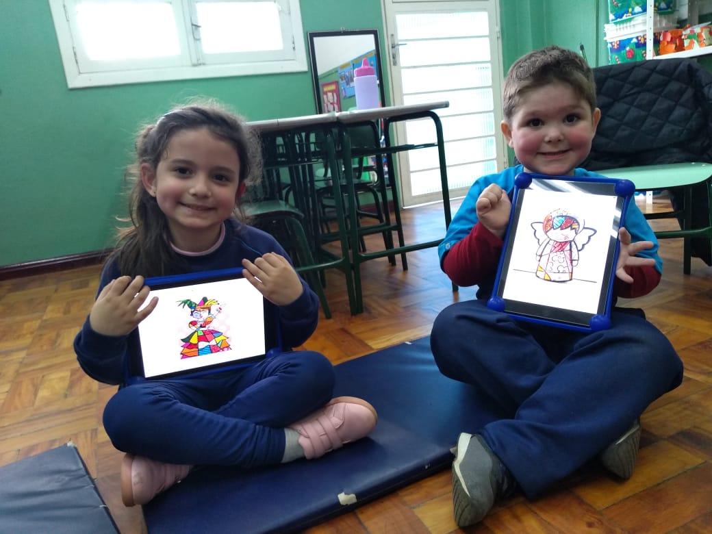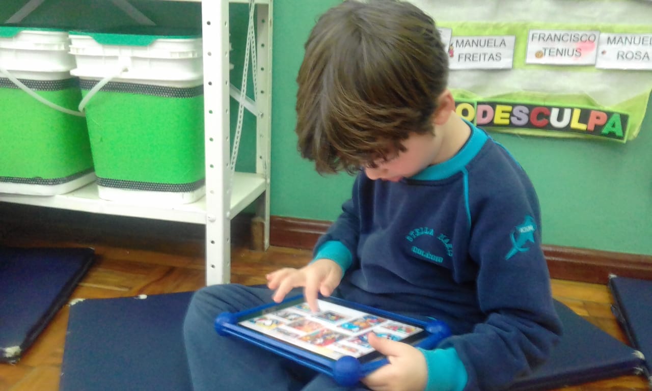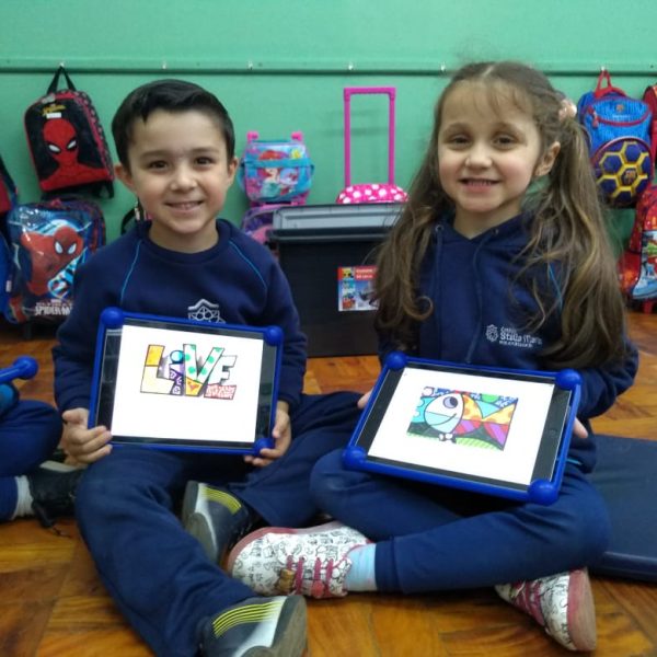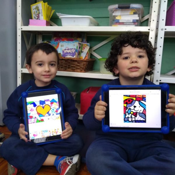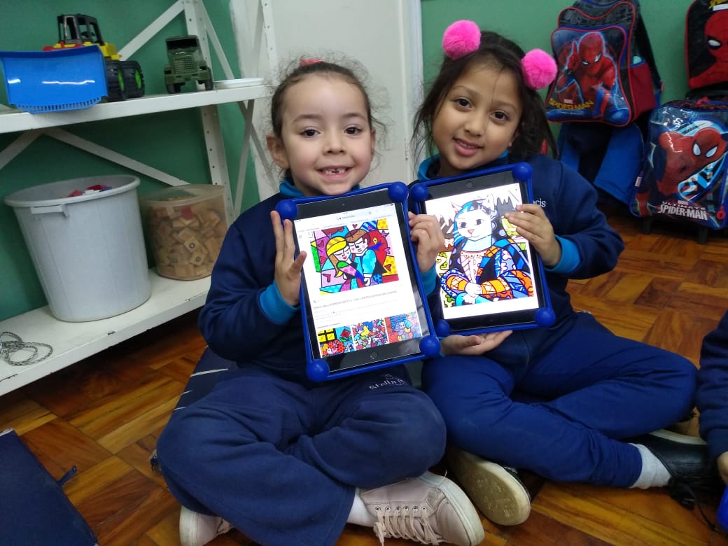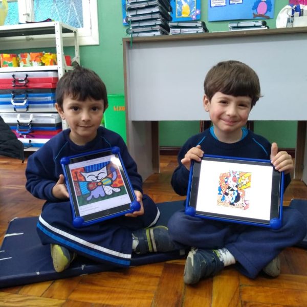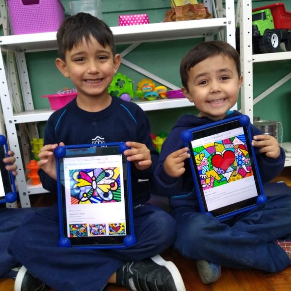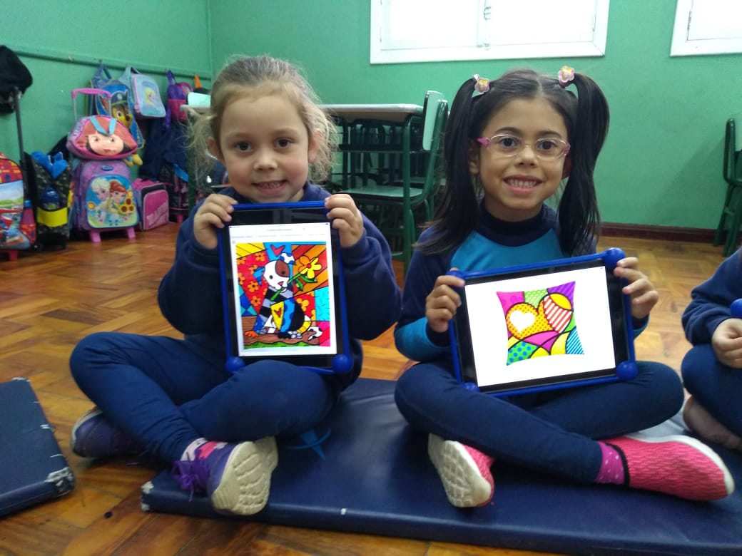 Os recursos tecnológicos contribuem para que os alunos sejam protagonistas no processo de ensino e aprendizagem. Pensando nisso, as turmas de N2 utilizaram os iPads para realizar uma pesquisa sobre o pintor Romero Britto, podendo interagir e trocar ideias sobre suas obras.