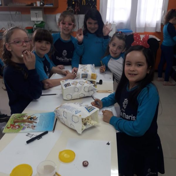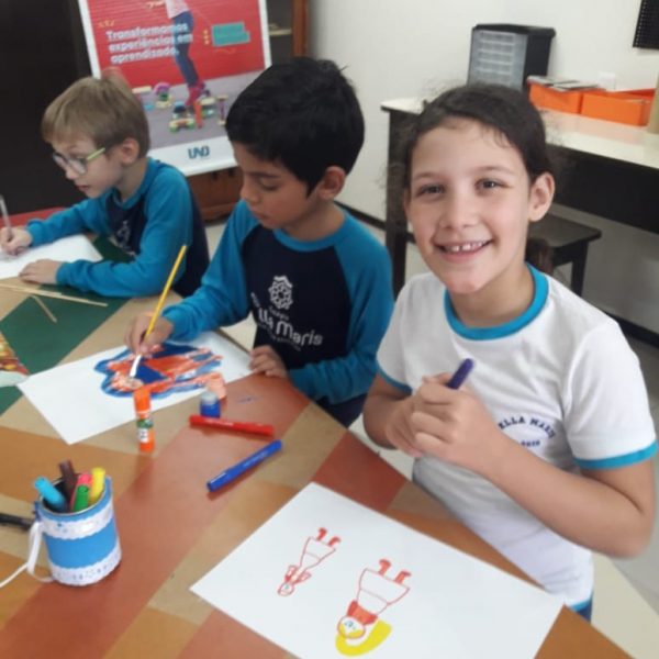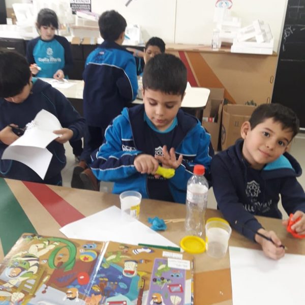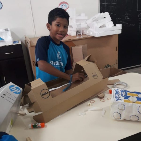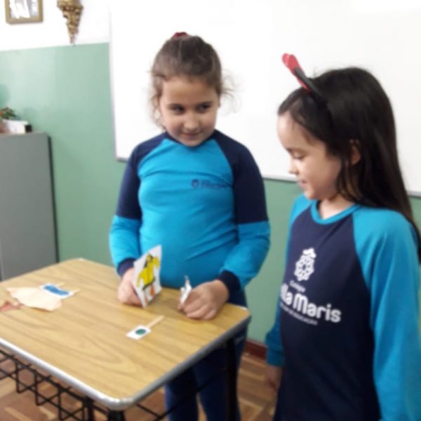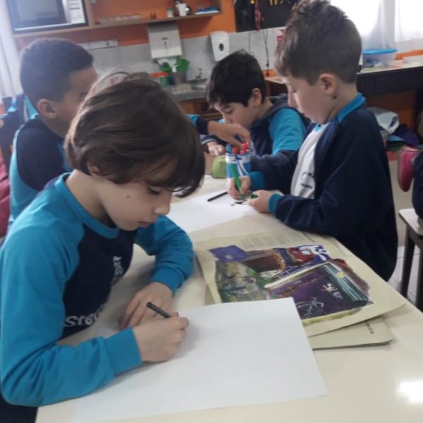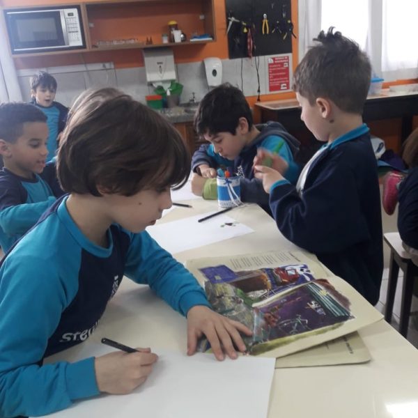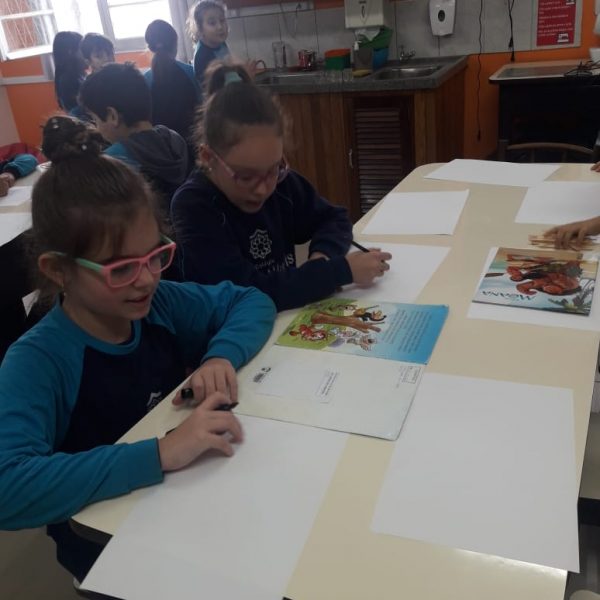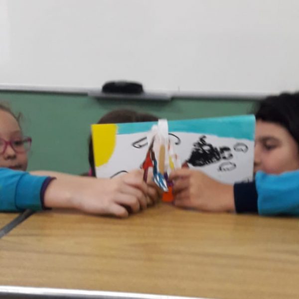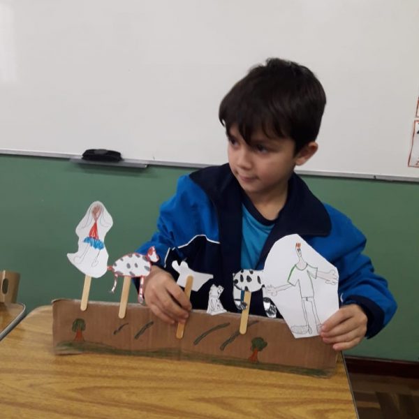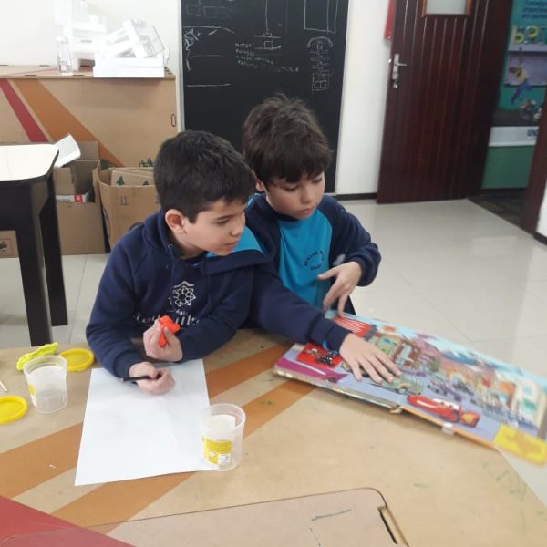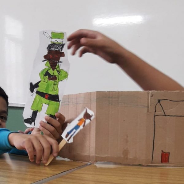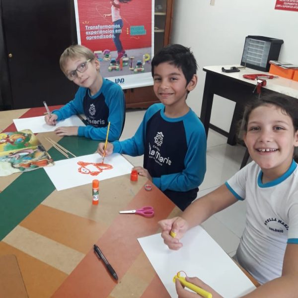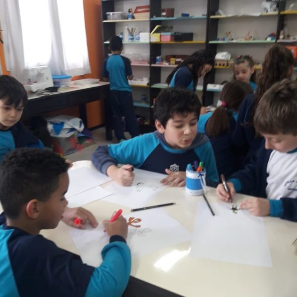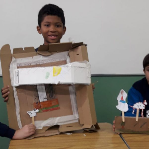 Na sala maker, os alunos da turma 23, juntamente com a professora Rita, construíram personagens e cenários de livros de histórias retirados da biblioteca dias antes. Depois, em sala de aula, os grupos apresentaram as histórias modificadas e recriadas que haviam construído na sala maker. Foi uma experiência riquíssima para toda a turma!