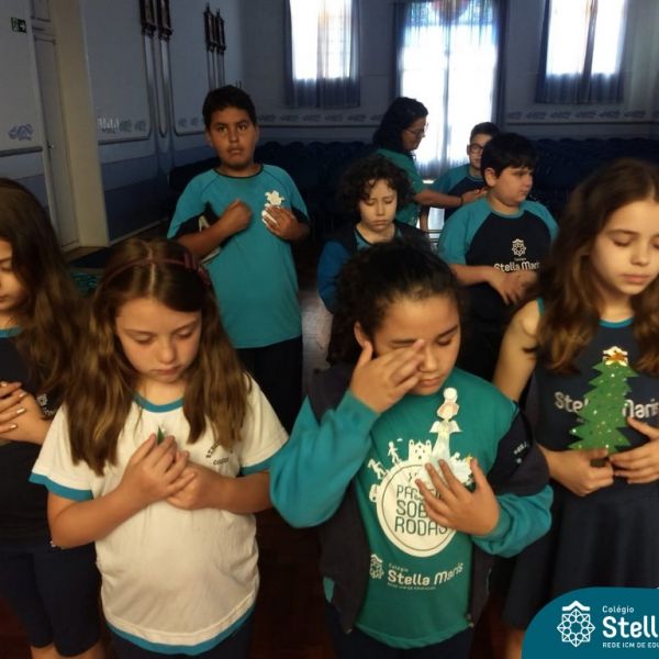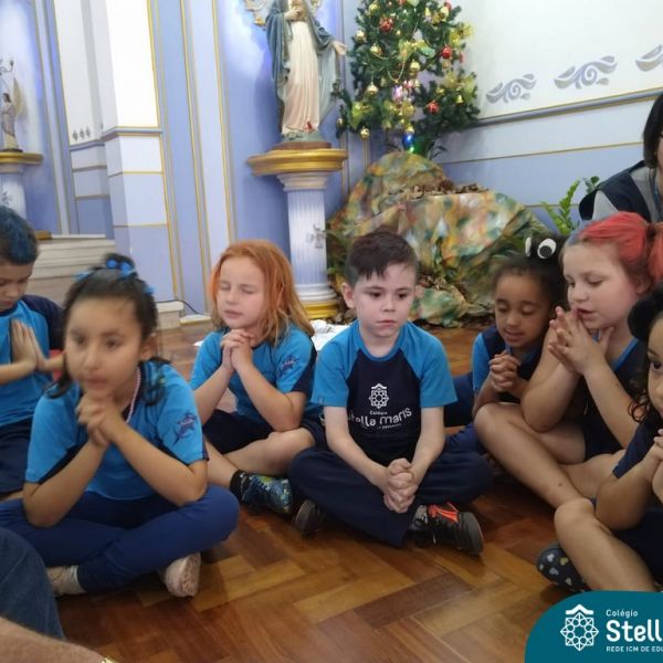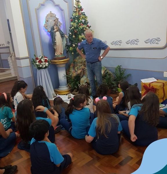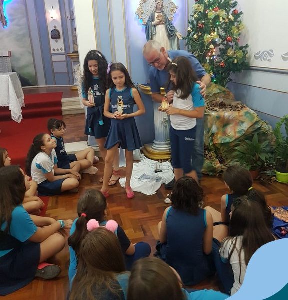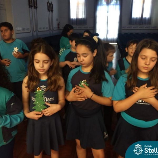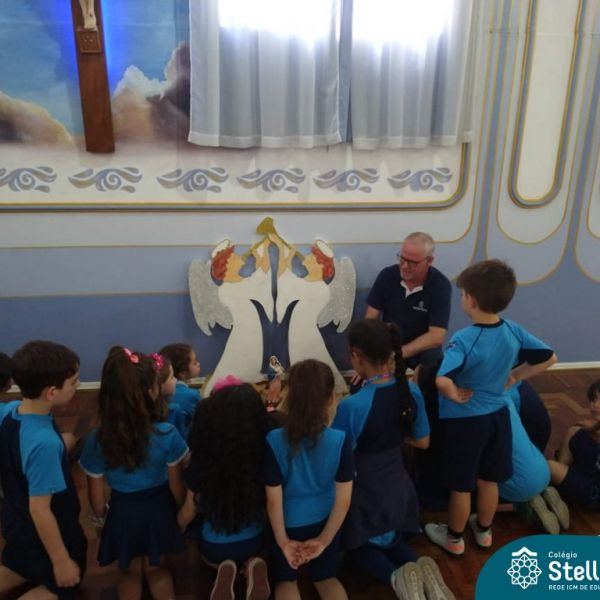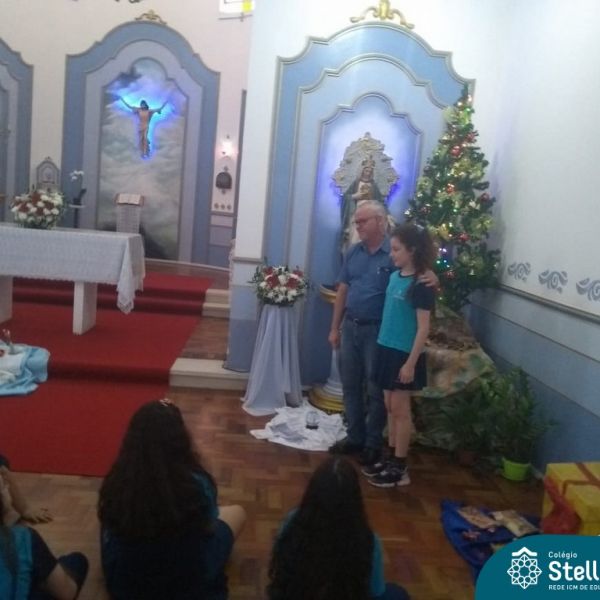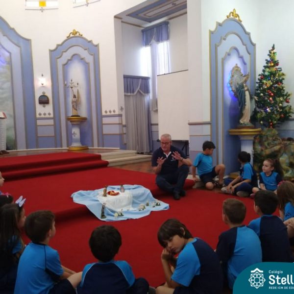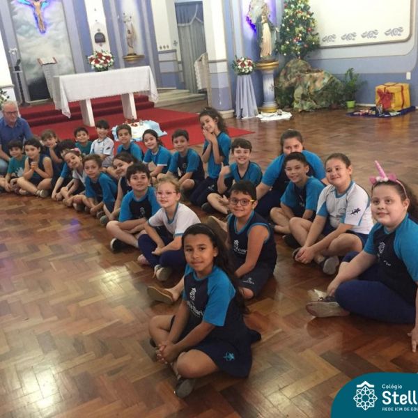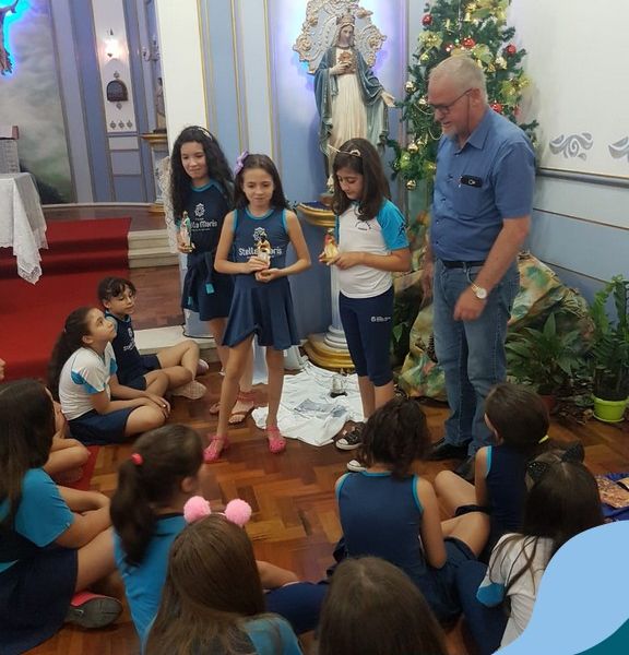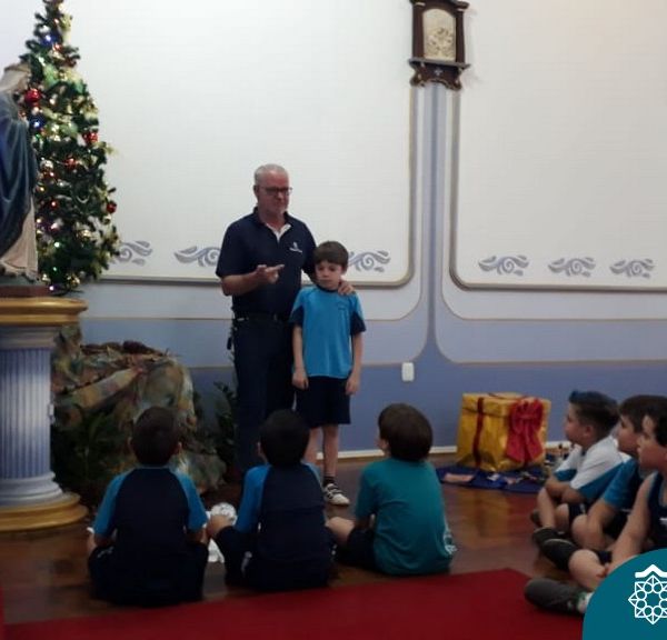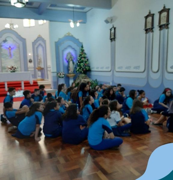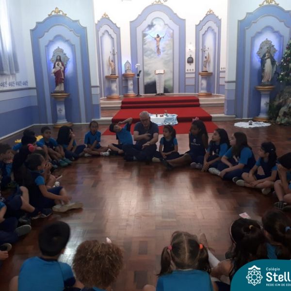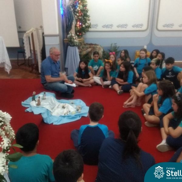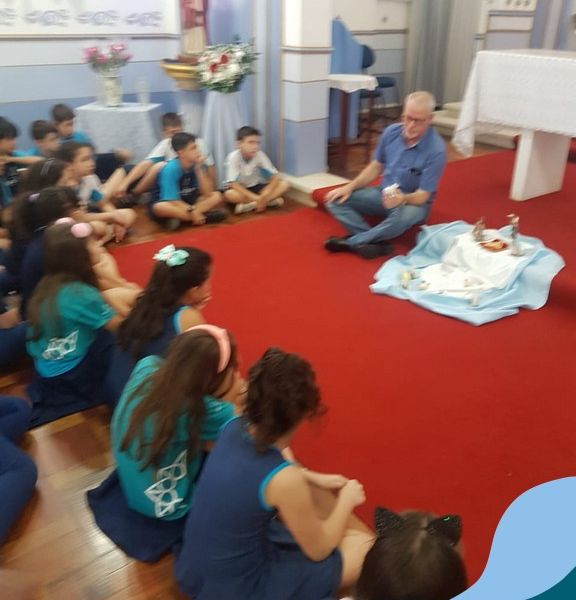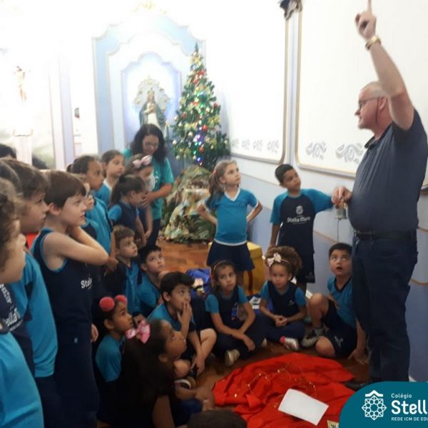 No Momento Pastoral do mês de dezembro os alunos da Educ. Infantil ao 5º ano, realizaram uma Formação sobre os verdadeiro significado dos Símbolos Natalinos, na Capela, juntamente com o Padre Edison e as professoras. Durante a reflexão os alunos foram conhecendo cada símbolos e interagindo, motivados pelo Padre. Receberam a benção no final do encontro, momento emocionante de oração e cultivo da fé.