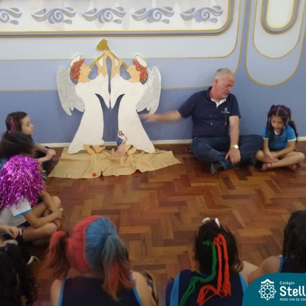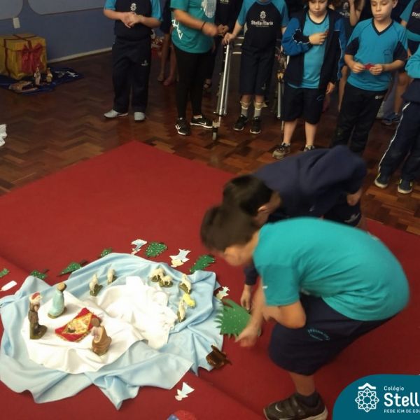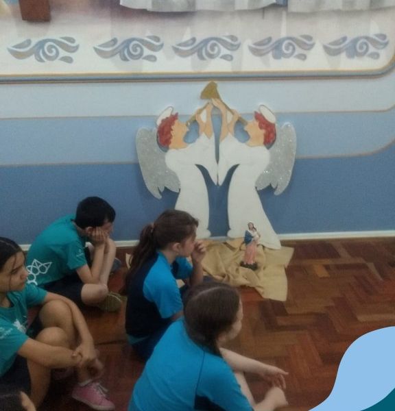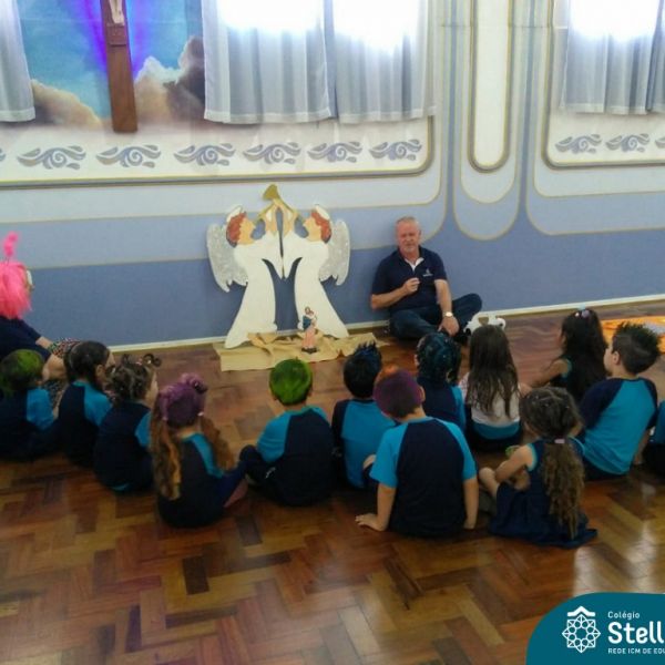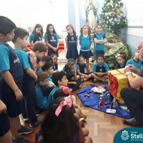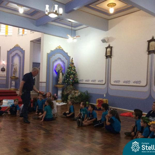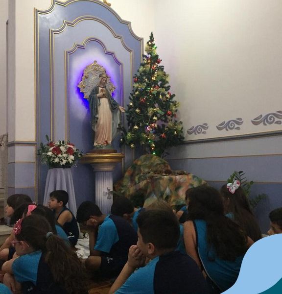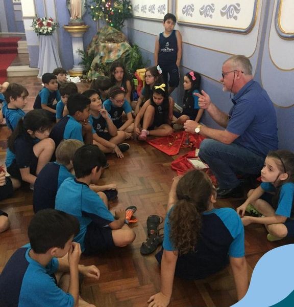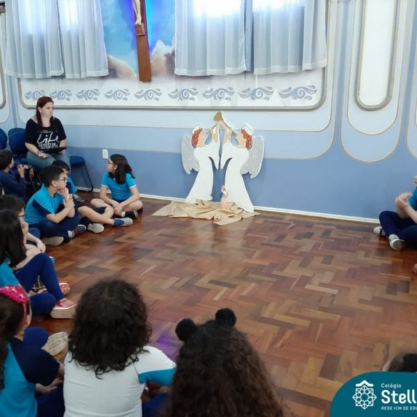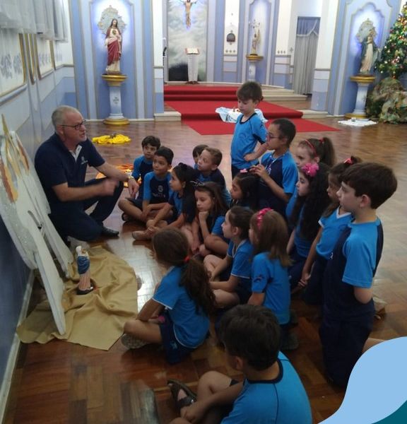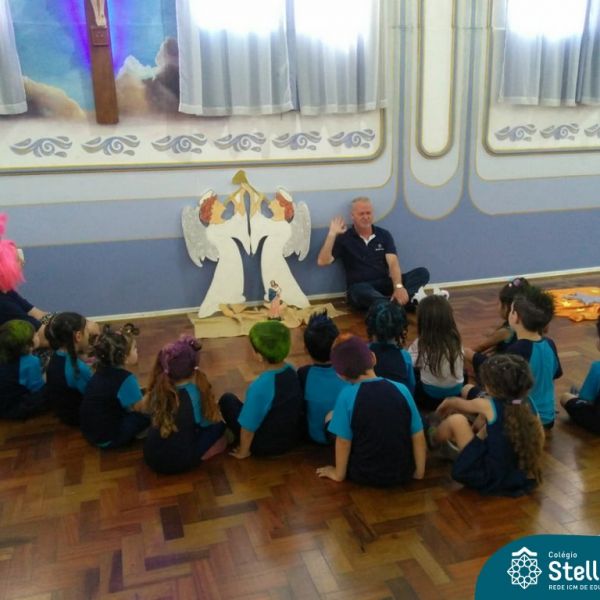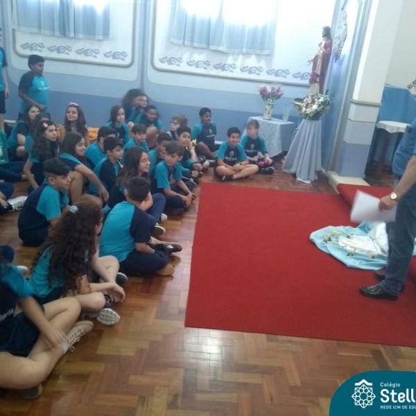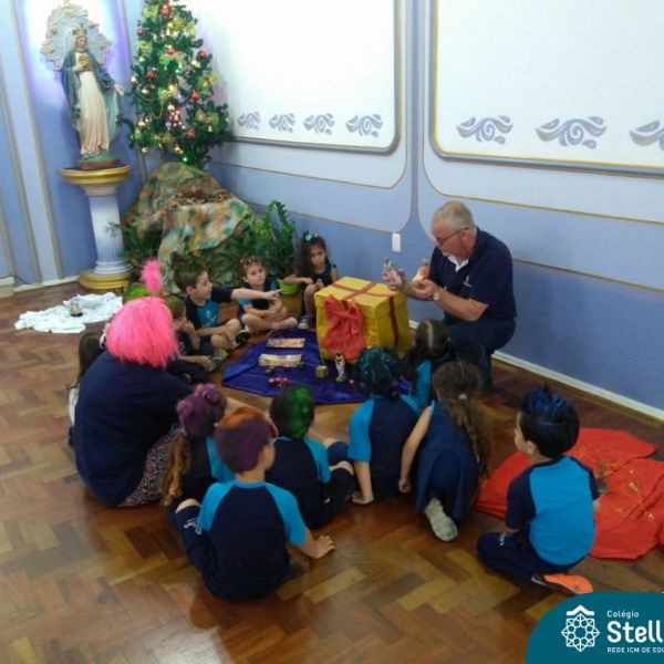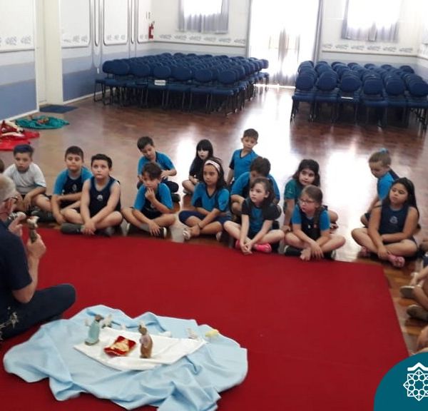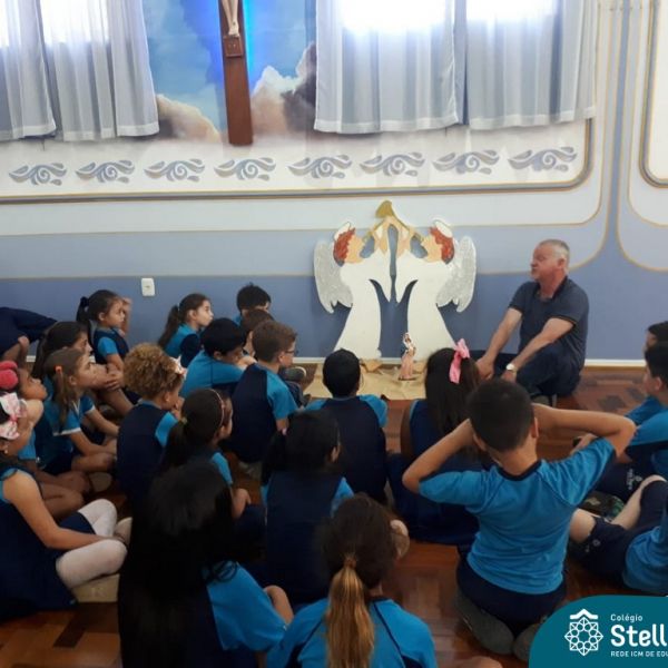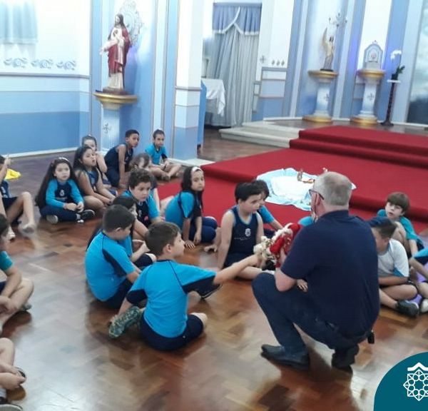 No Momento Pastoral do mês de dezembro os alunos da Educ. Infantil ao 5º ano, realizaram uma Formação sobre os verdadeiro significado dos Símbolos Natalinos, na Capela, juntamente com o Padre Edison e as professoras. Durante a reflexão os alunos foram conhecendo cada símbolos e interagindo, motivados pelo Padre. Receberam a benção no final do encontro, momento emocionante de oração e cultivo da fé.