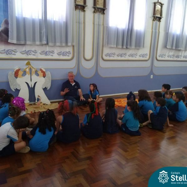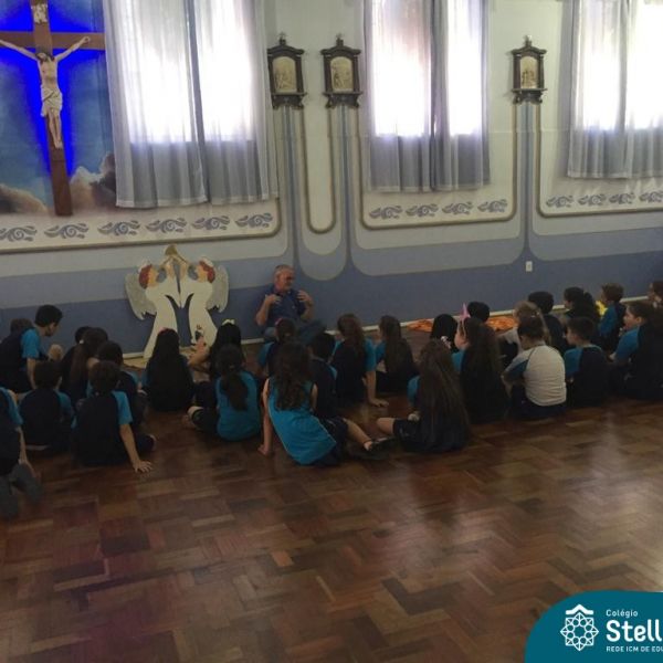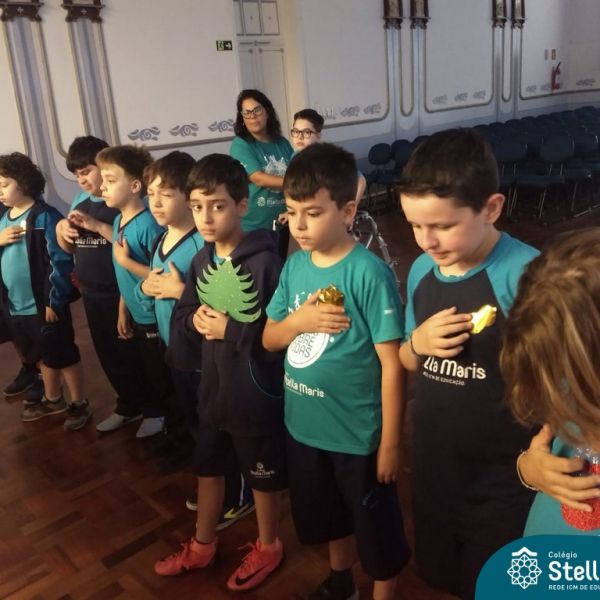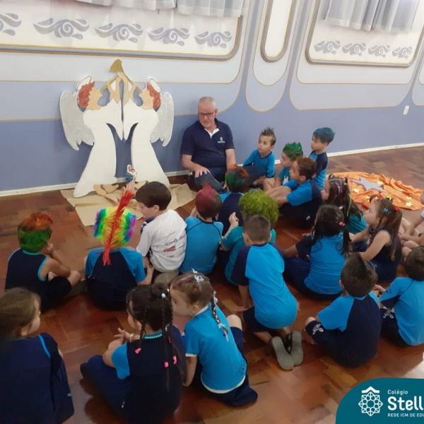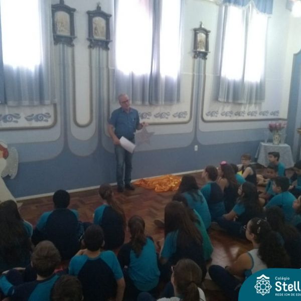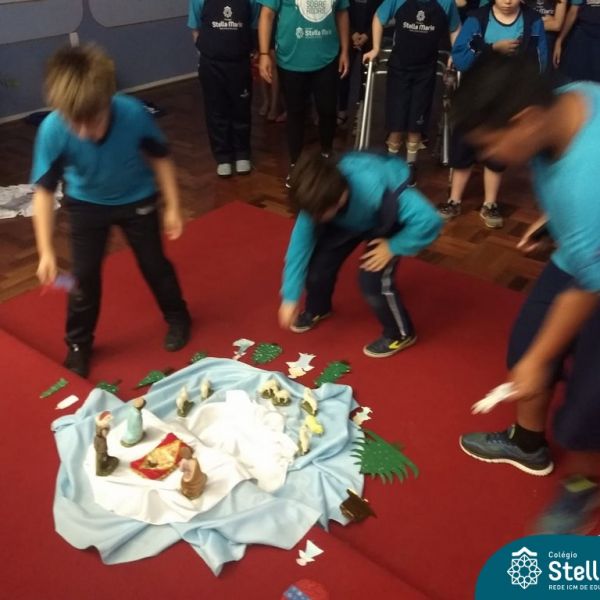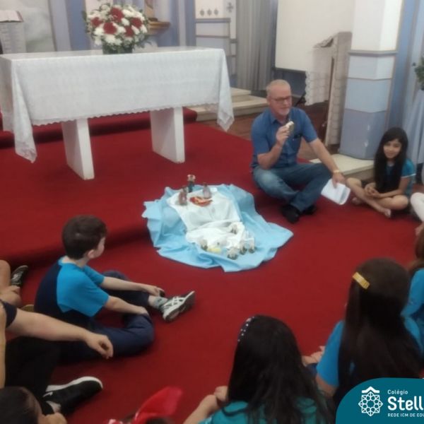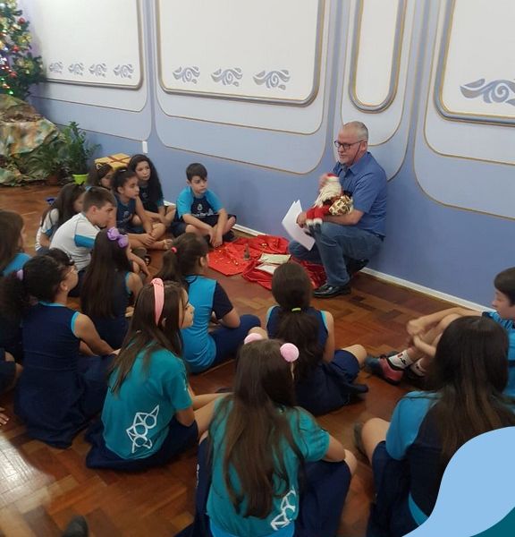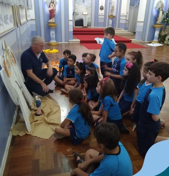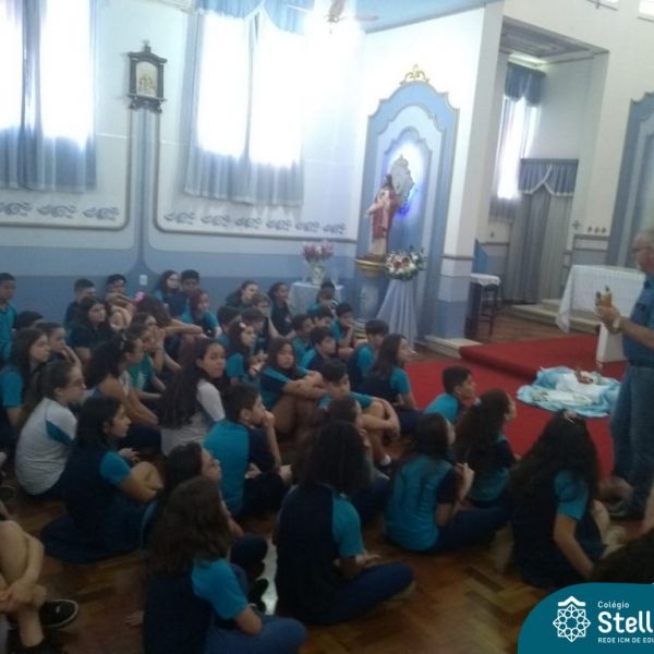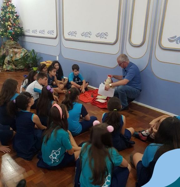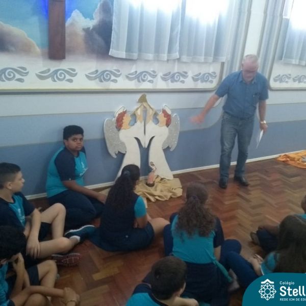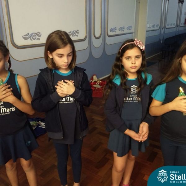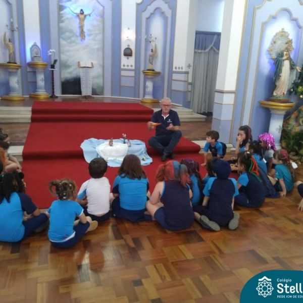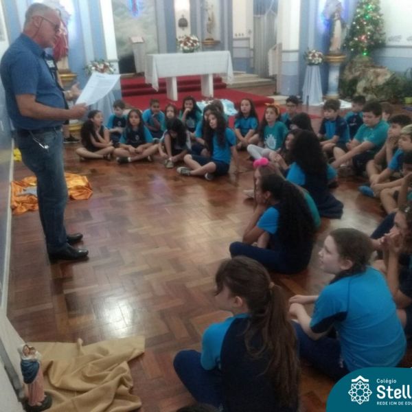 No Momento Pastoral do mês de dezembro os alunos da Educ. Infantil ao 5º ano, realizaram uma Formação sobre os verdadeiro significado dos Símbolos Natalinos, na Capela, juntamente com o Padre Edison e as professoras. Durante a reflexão os alunos foram conhecendo cada símbolos e interagindo, motivados pelo Padre. Receberam a benção no final do encontro, momento emocionante de oração e cultivo da fé.