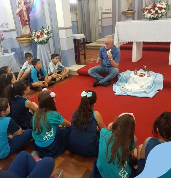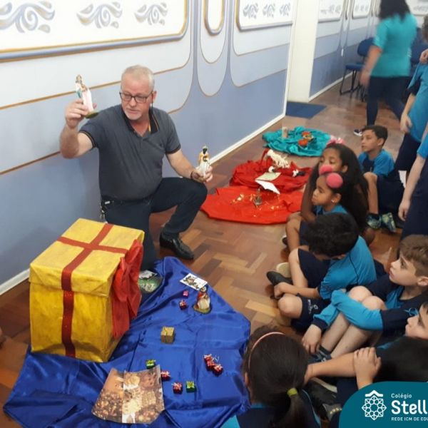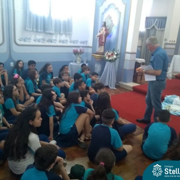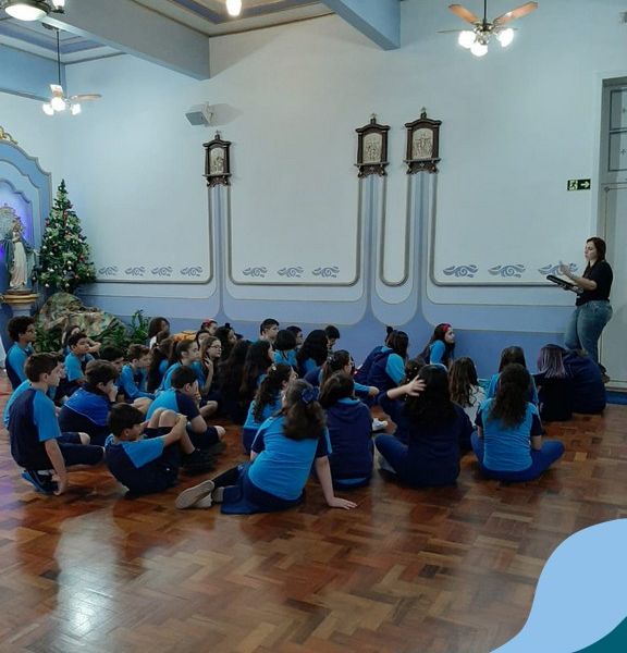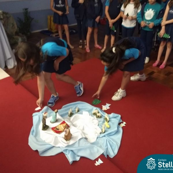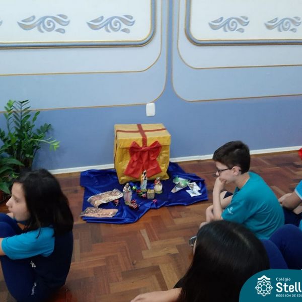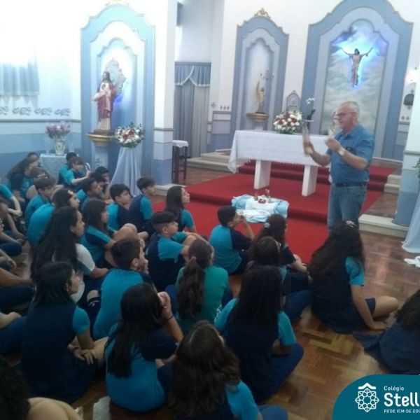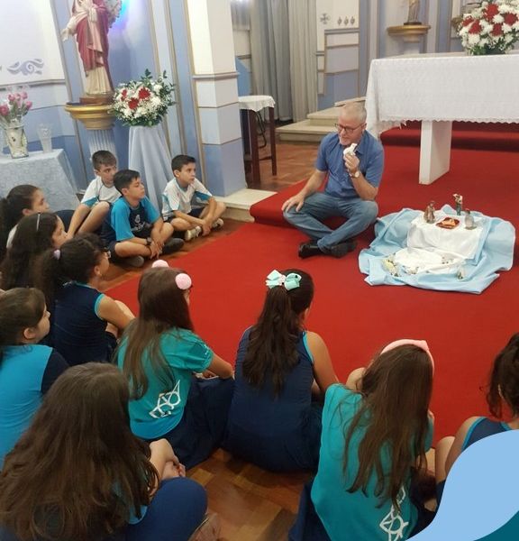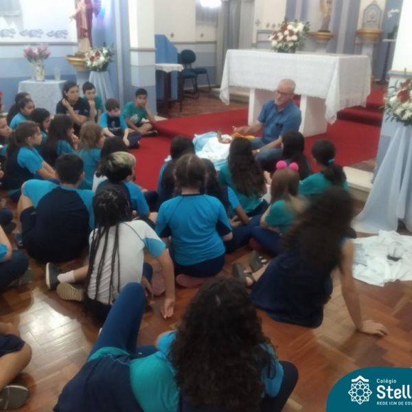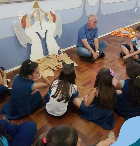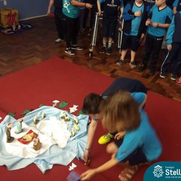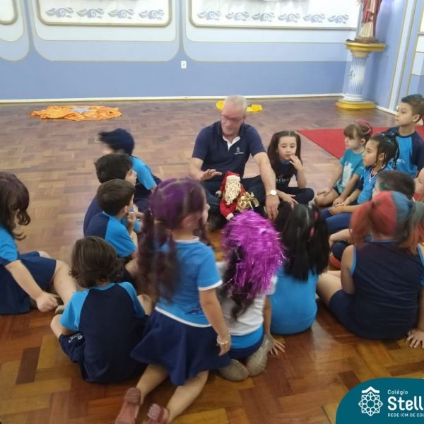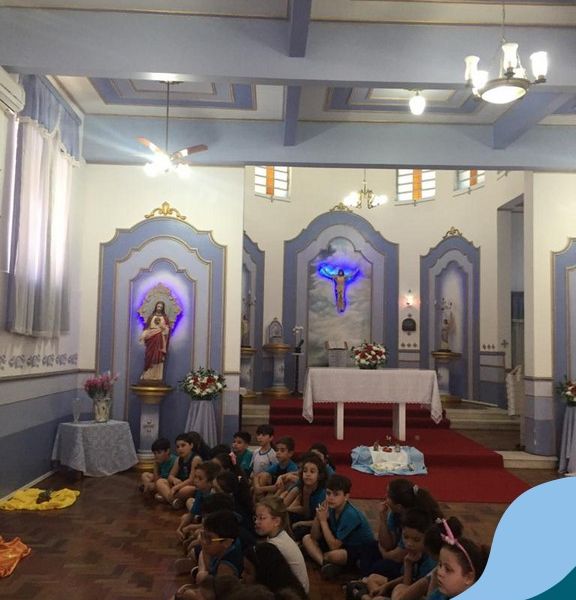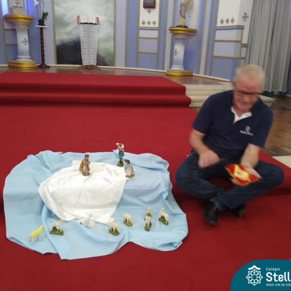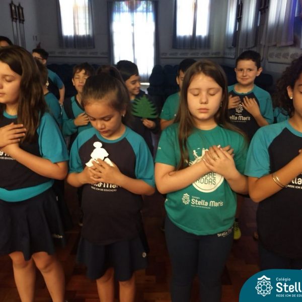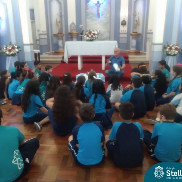 No Momento Pastoral do mês de dezembro os alunos da Educ. Infantil ao 5º ano, realizaram uma Formação sobre os verdadeiro significado dos Símbolos Natalinos, na Capela, juntamente com o Padre Edison e as professoras. Durante a reflexão os alunos foram conhecendo cada símbolos e interagindo, motivados pelo Padre. Receberam a benção no final do encontro, momento emocionante de oração e cultivo da fé.