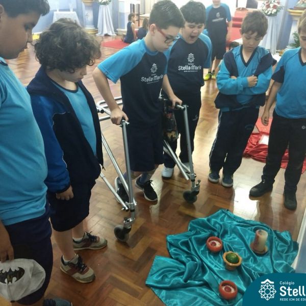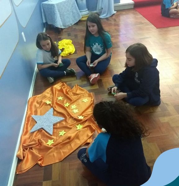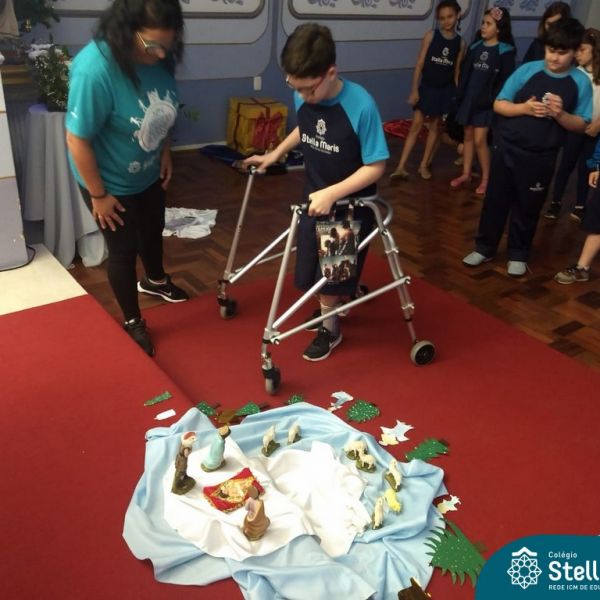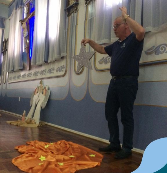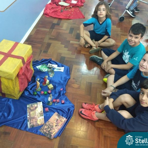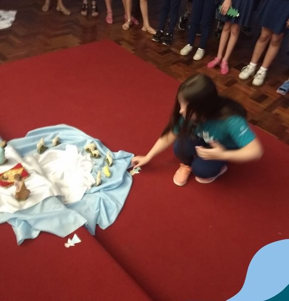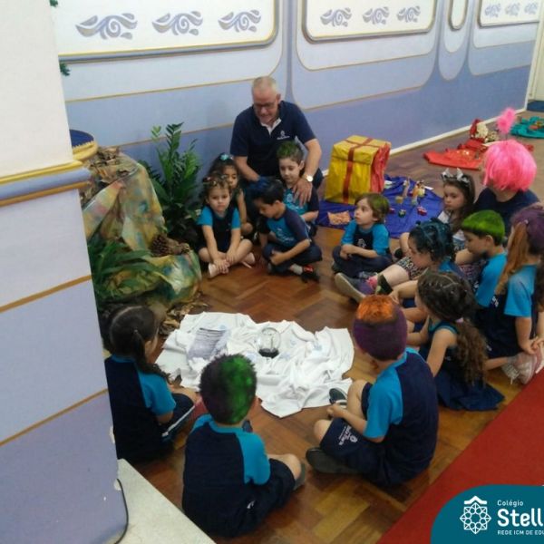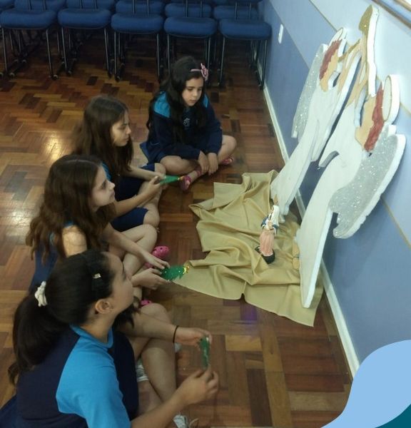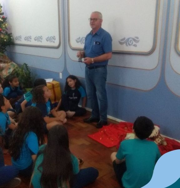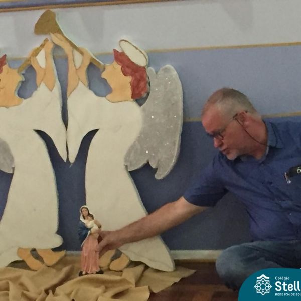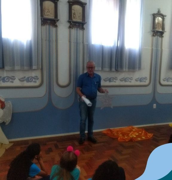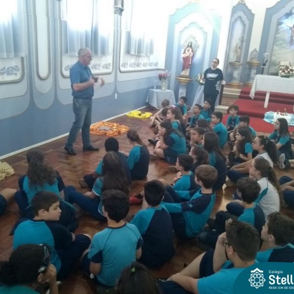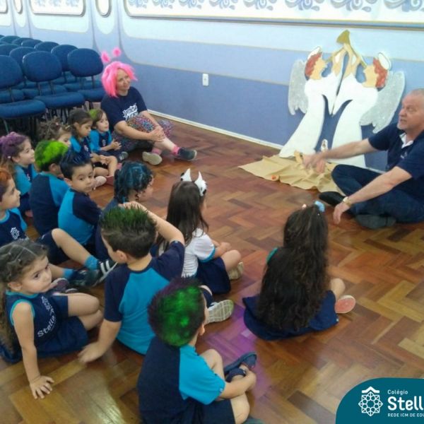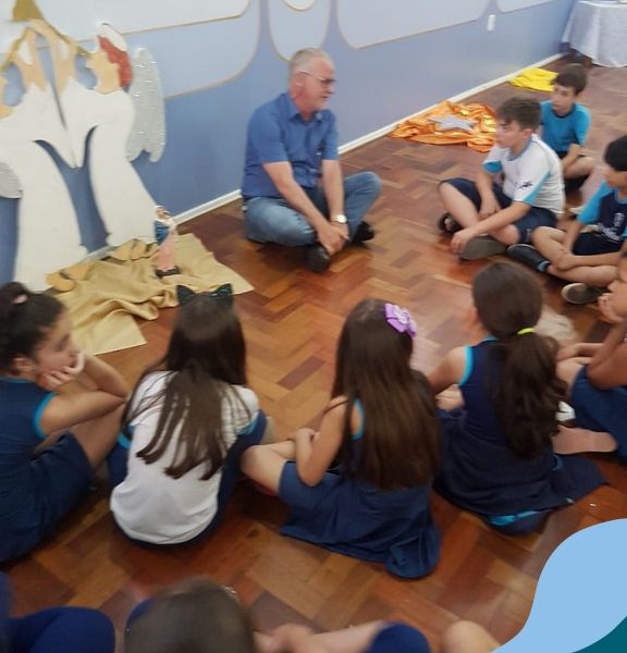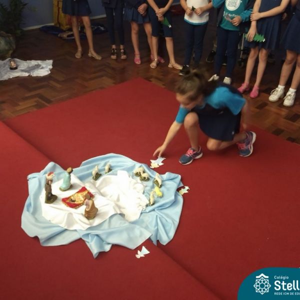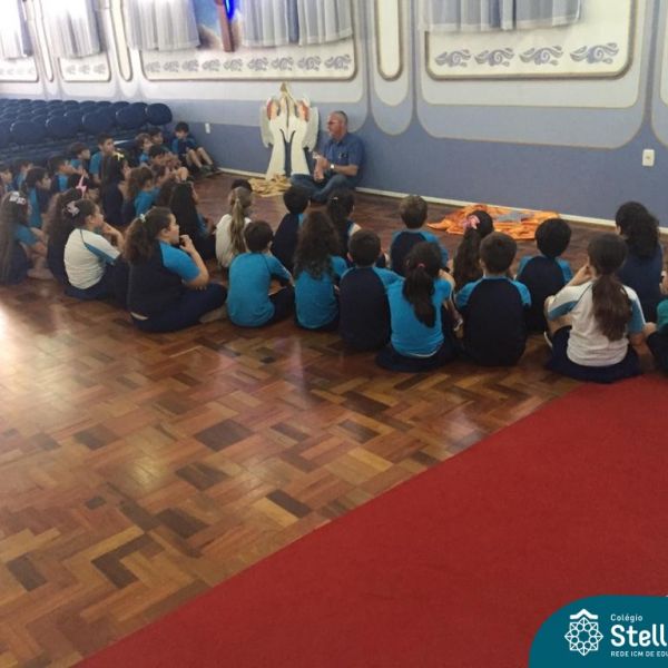 No Momento Pastoral do mês de dezembro os alunos da Educ. Infantil ao 5º ano, realizaram uma Formação sobre os verdadeiro significado dos Símbolos Natalinos, na Capela, juntamente com o Padre Edison e as professoras. Durante a reflexão os alunos foram conhecendo cada símbolos e interagindo, motivados pelo Padre. Receberam a benção no final do encontro, momento emocionante de oração e cultivo da fé.