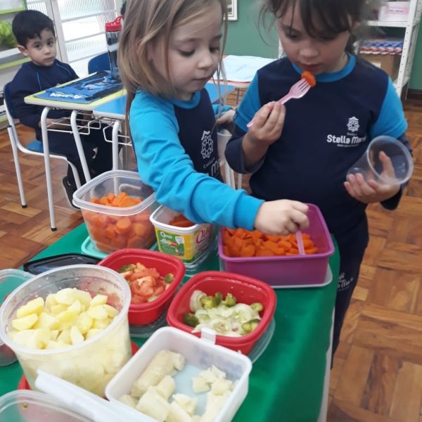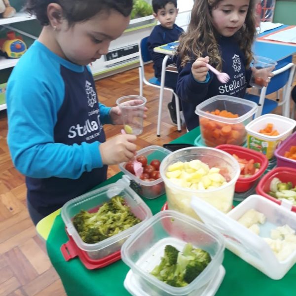 Como Seu Lobato gosta de alimentação saudável e tem muitos legumes no seu sítio, a turma de Maternal 2, com a professora Cristina, realizou uma Oficina de Degustação de Legumes. Cada criança trouxe o seu legume preferido para partilhar com os colegas. Hummm que delícia de aula saudável!