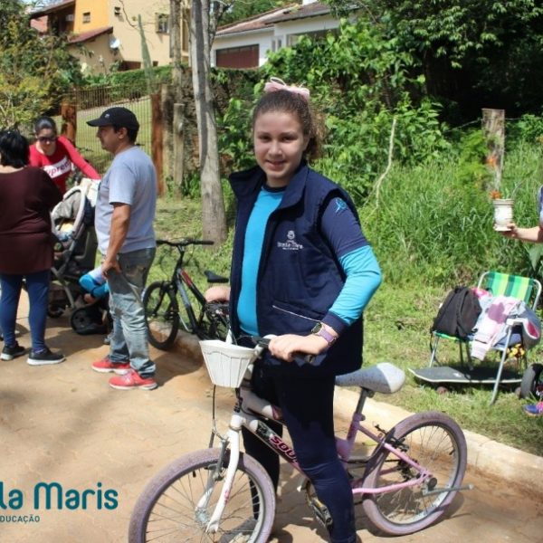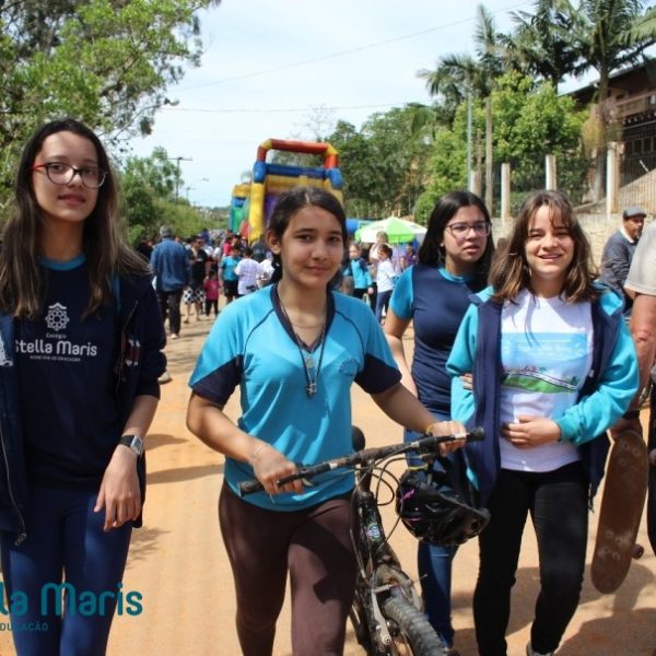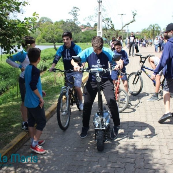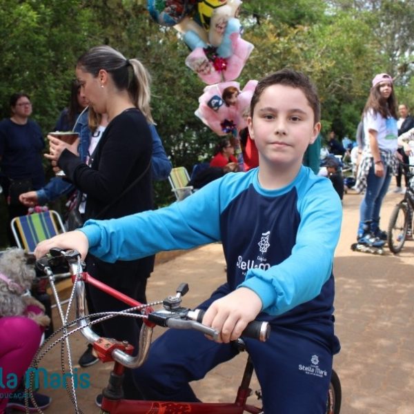 As bicicletas foram as rainhas desta manhã, mas os patins, os rollers, os skates e os patinetes também marcaram presença!  Contamos com a trilha sonora do DJ Batata e tivemos shows com a Banda Musical do Stella Maris, regida pelo Maestro André de Oliveira, o momento de espiritualidade foi encaminhado pela Profª Simone Souza, da Pastoral. Tivemos shows também, com a cantora Fernanda Rosmaniño e banda, ex-aluna do Stella, com Arthur Kayser Nessy, um baita gaiteiro e a Inaís Andrade, cantora em ascensão, ambos nossos alunos! Ainda tivemos a animação super especial da Tia Lisi.  O Grupo Stella Maris Show também fez bonito, com coreografias da Profª Júlia Ribeiro.