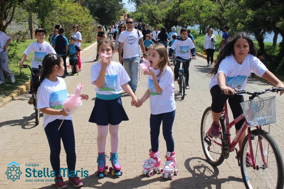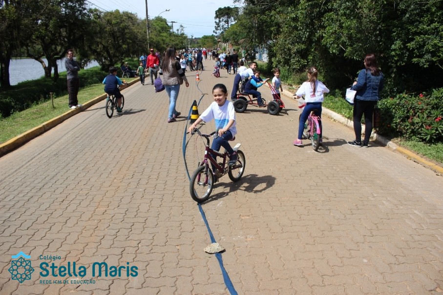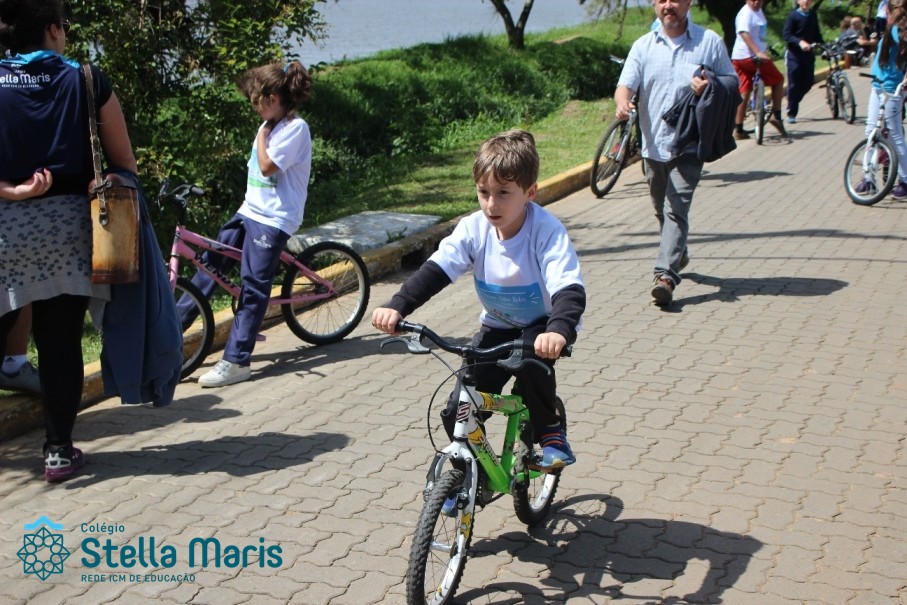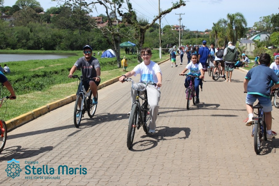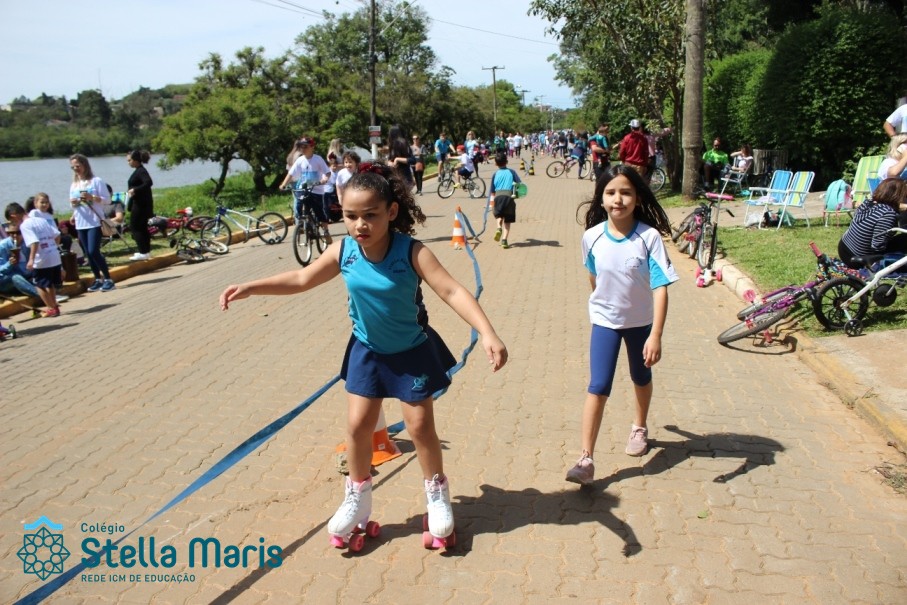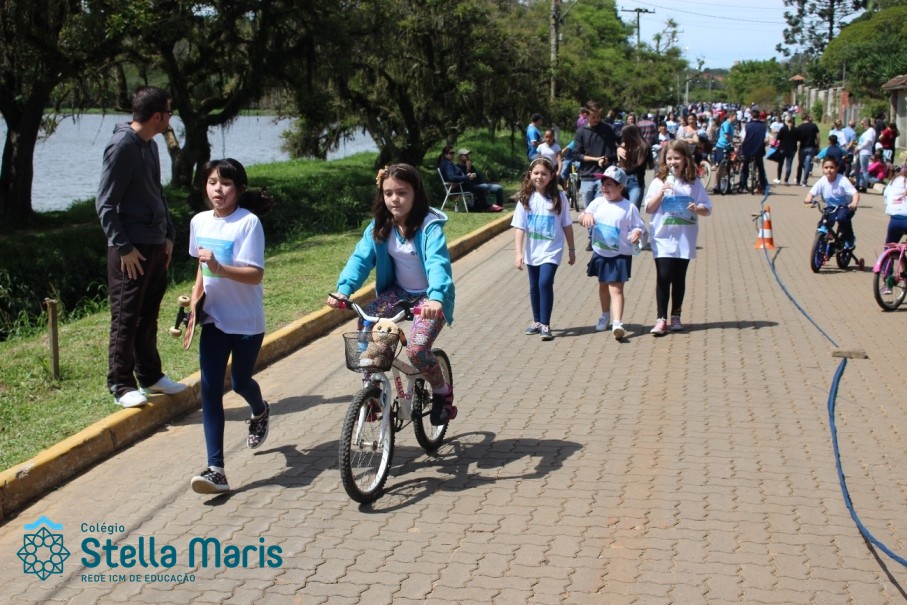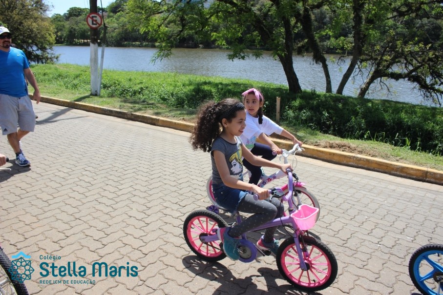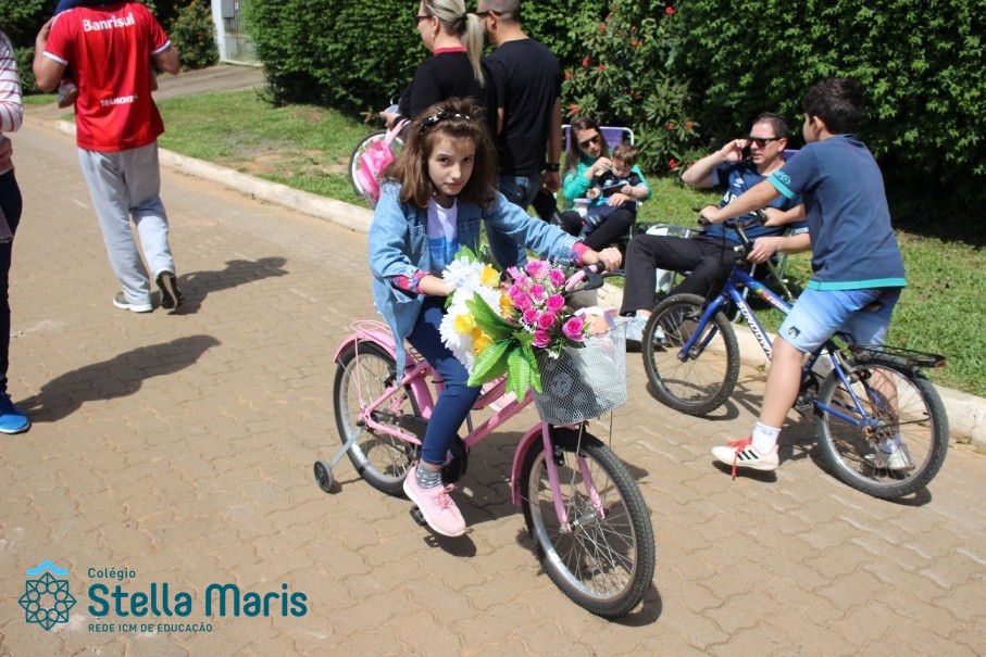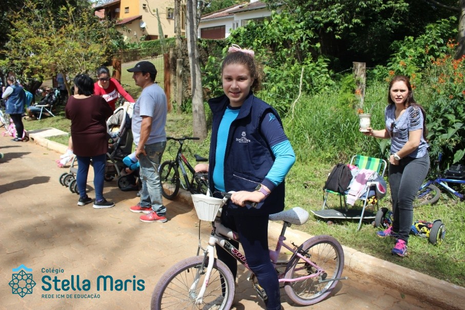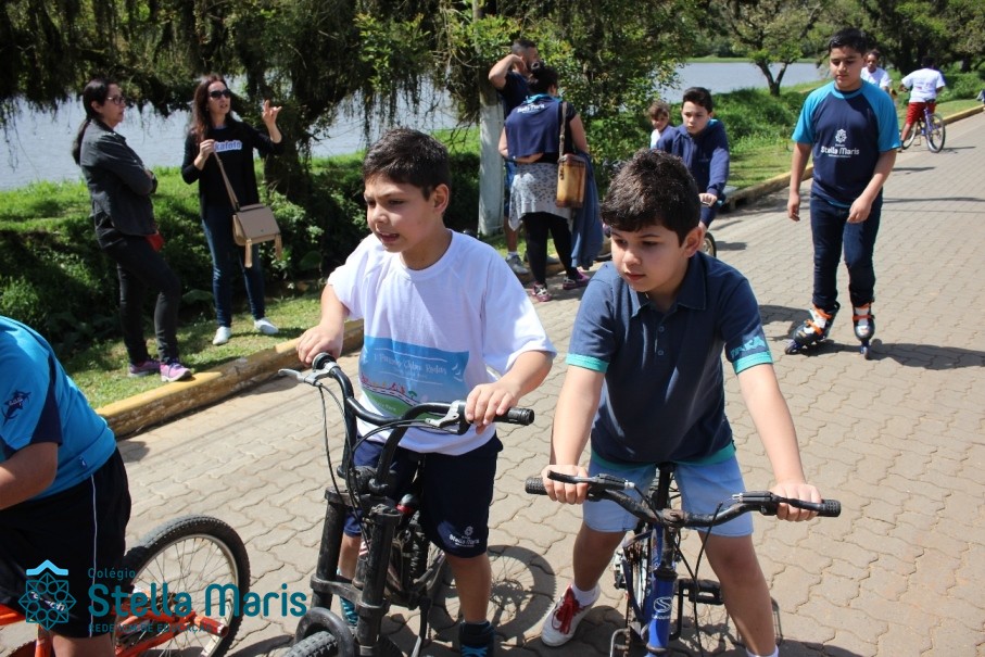 As bicicletas foram as rainhas desta manhã, mas os patins, os rollers, os skates e os patinetes também marcaram presença!  Contamos com a trilha sonora do DJ Batata e tivemos shows com a Banda Musical do Stella Maris, regida pelo Maestro André de Oliveira, o momento de espiritualidade foi encaminhado pela Profª Simone Souza, da Pastoral. Tivemos shows também, com a cantora Fernanda Rosmaniño e banda, ex-aluna do Stella, com Arthur Kayser Nessy, um baita gaiteiro e a Inaís Andrade, cantora em ascensão, ambos nossos alunos! Ainda tivemos a animação super especial da Tia Lisi.  O Grupo Stella Maris Show também fez bonito, com coreografias da Profª Júlia Ribeiro.