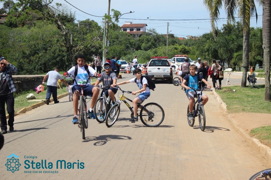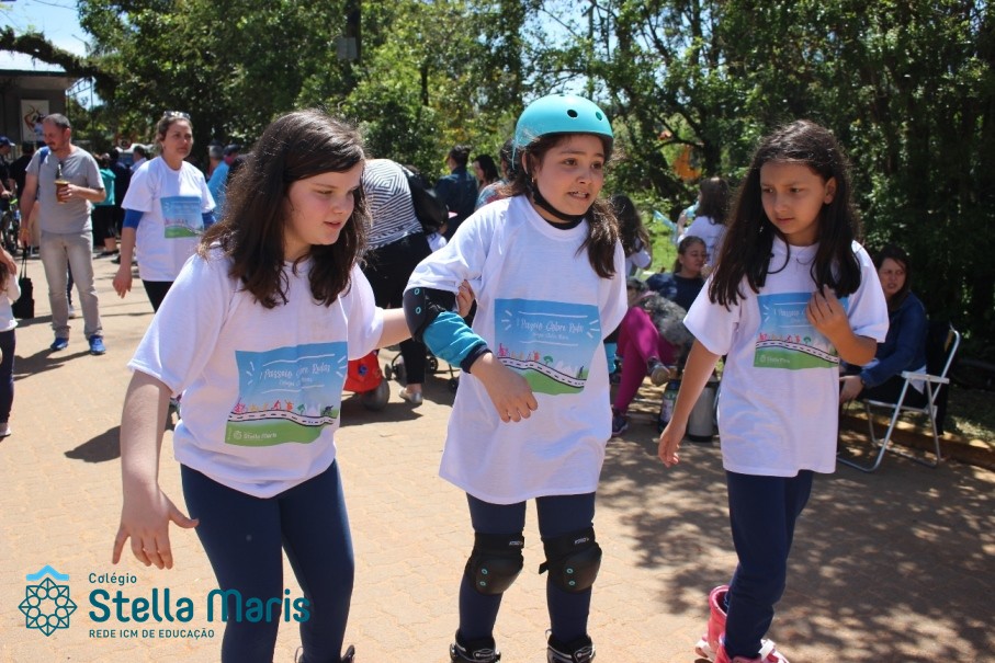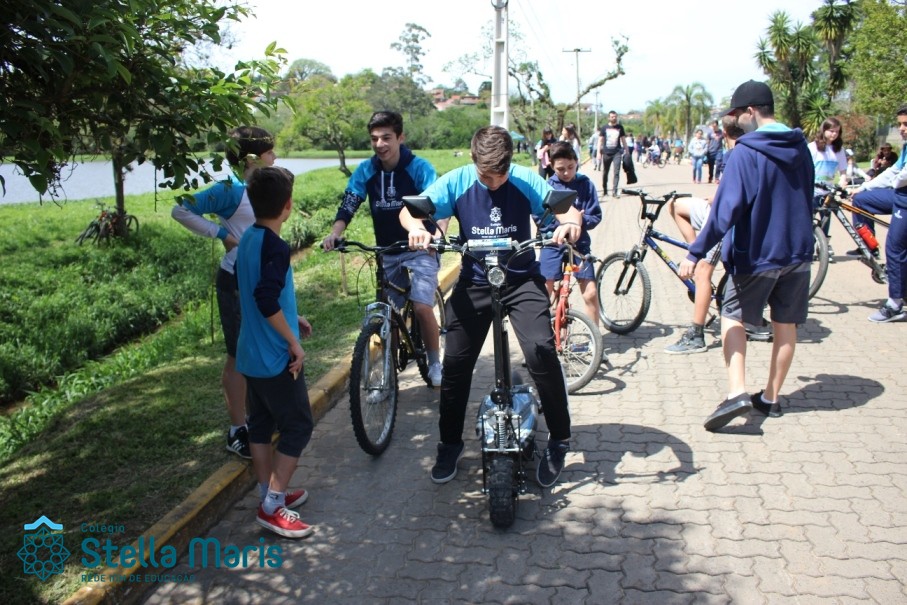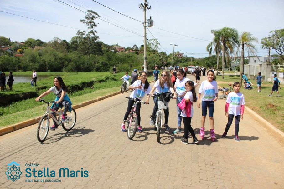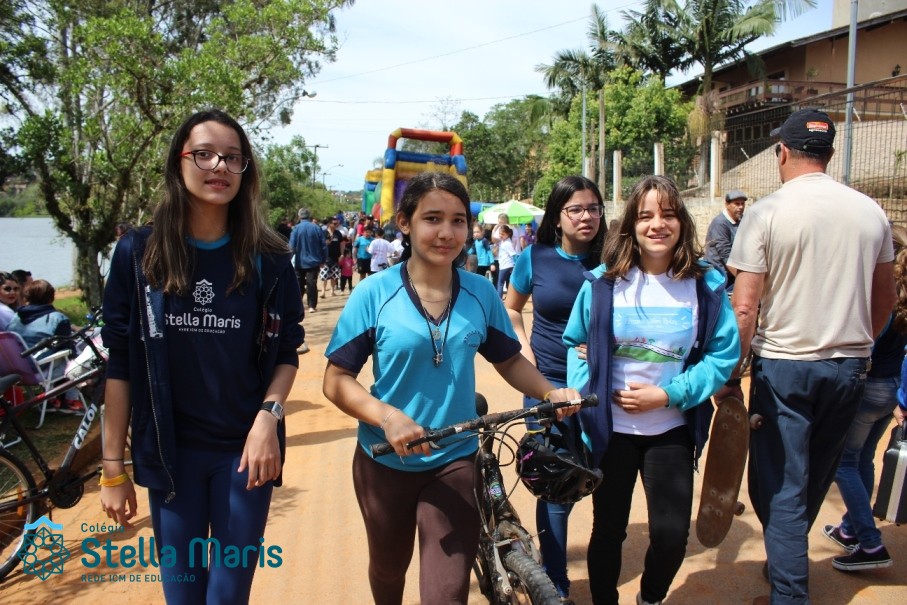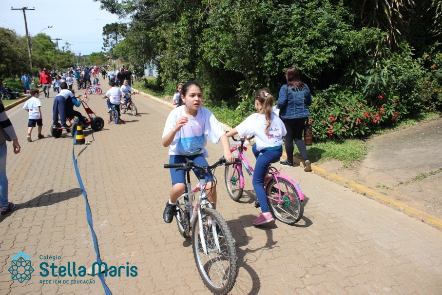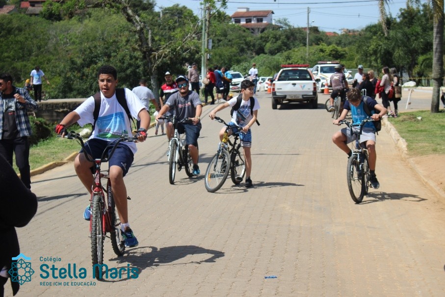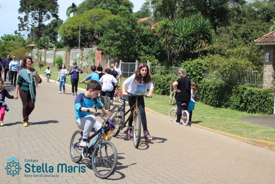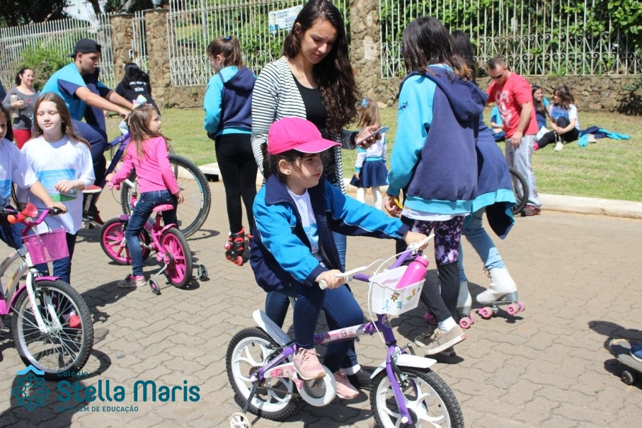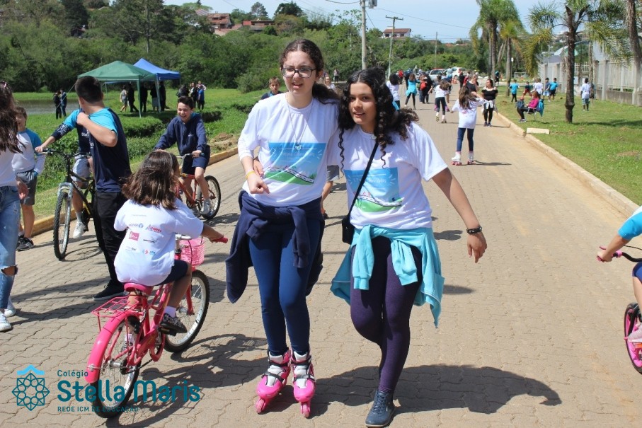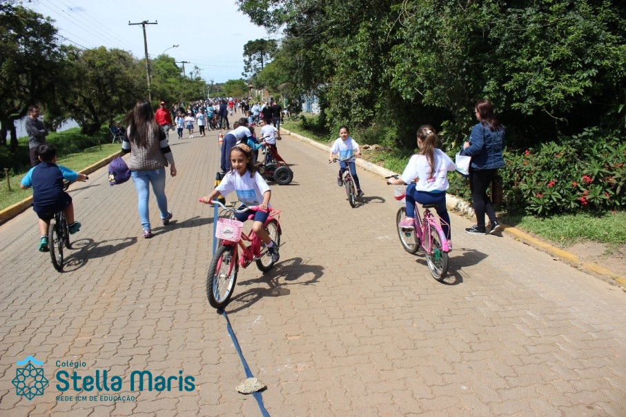 As bicicletas foram as rainhas desta manhã, mas os patins, os rollers, os skates e os patinetes também marcaram presença!  Contamos com a trilha sonora do DJ Batata e tivemos shows com a Banda Musical do Stella Maris, regida pelo Maestro André de Oliveira, o momento de espiritualidade foi encaminhado pela Profª Simone Souza, da Pastoral. Tivemos shows também, com a cantora Fernanda Rosmaniño e banda, ex-aluna do Stella, com Arthur Kayser Nessy, um baita gaiteiro e a Inaís Andrade, cantora em ascensão, ambos nossos alunos! Ainda tivemos a animação super especial da Tia Lisi.  O Grupo Stella Maris Show também fez bonito, com coreografias da Profª Júlia Ribeiro.