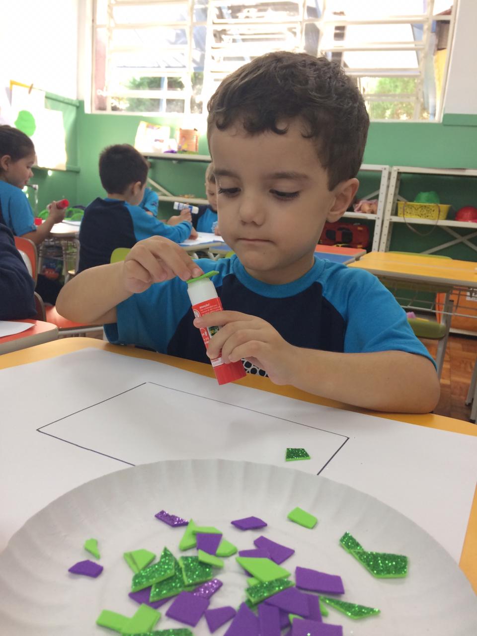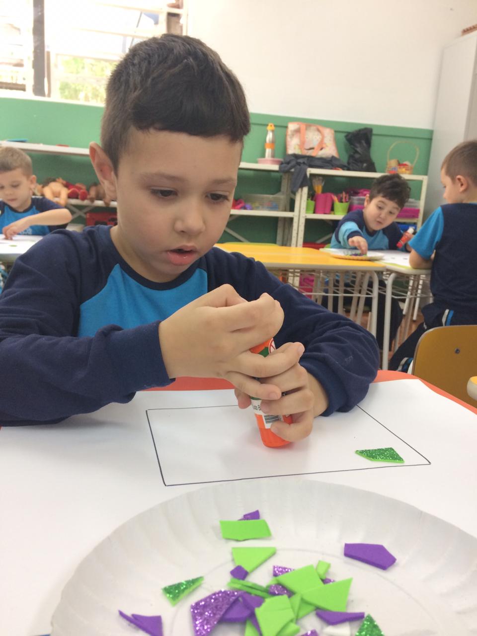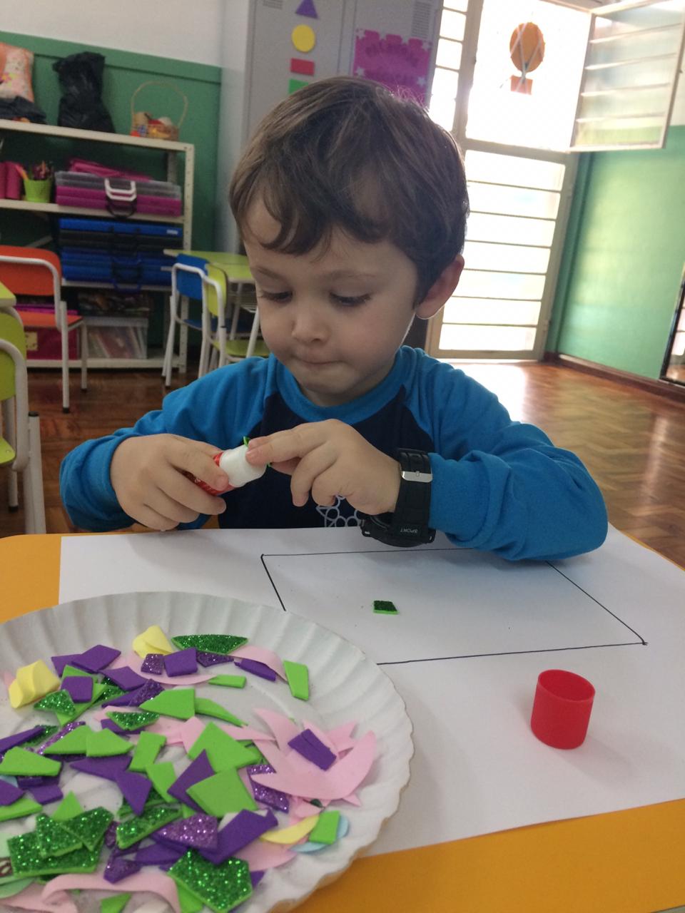 Na última semana os alunos do Pré 1-B vivenciaram momentos nos quais utilizaram cola bastão e pintura com pincel,pela primeira vez neste ano, com o auxílio da prof. Ana Paula Sena. Os pequenos adoraram e criaram lindas produções. Foram momentos muito especiais!