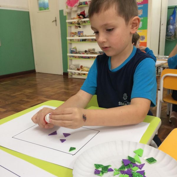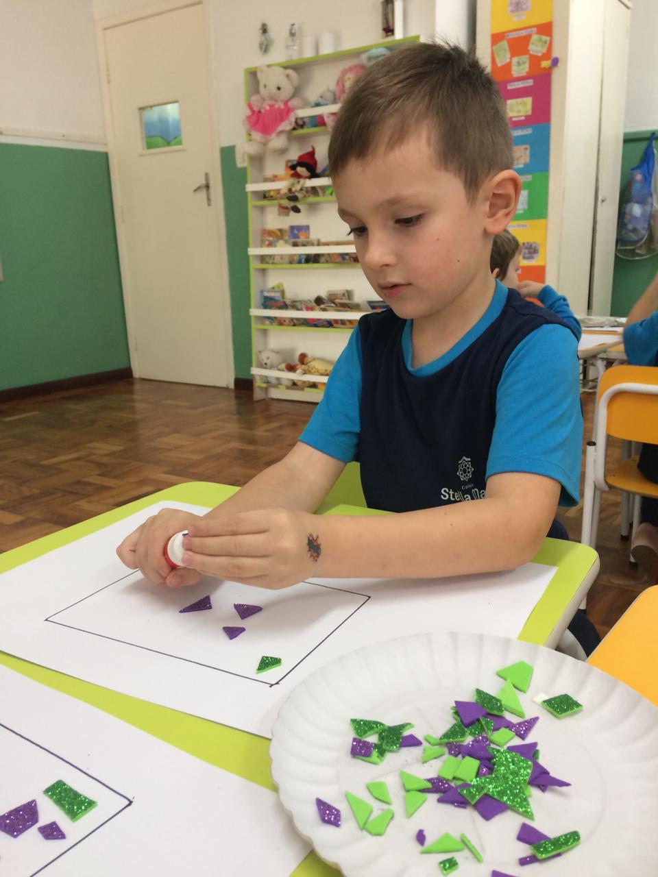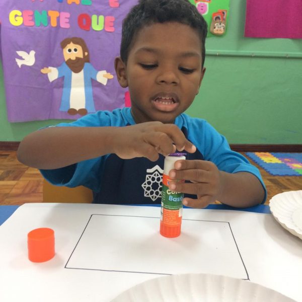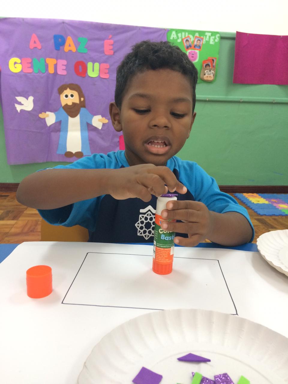 Na última semana os alunos do Pré 1-B vivenciaram momentos nos quais utilizaram cola bastão e pintura com pincel,pela primeira vez neste ano, com o auxílio da prof. Ana Paula Sena. Os pequenos adoraram e criaram lindas produções. Foram momentos muito especiais!