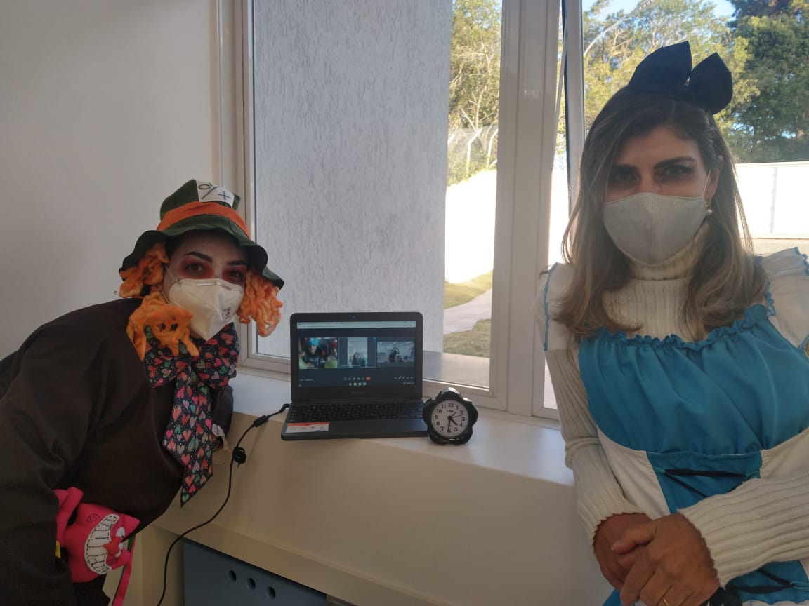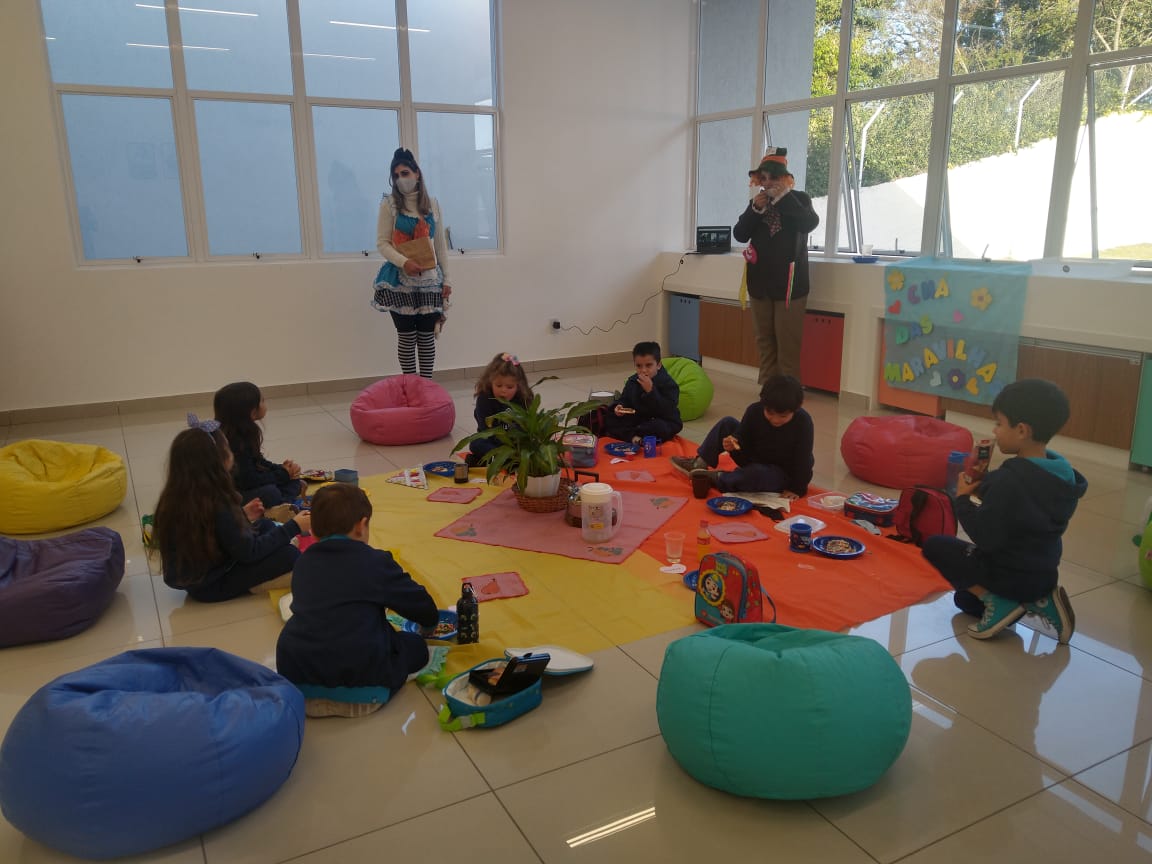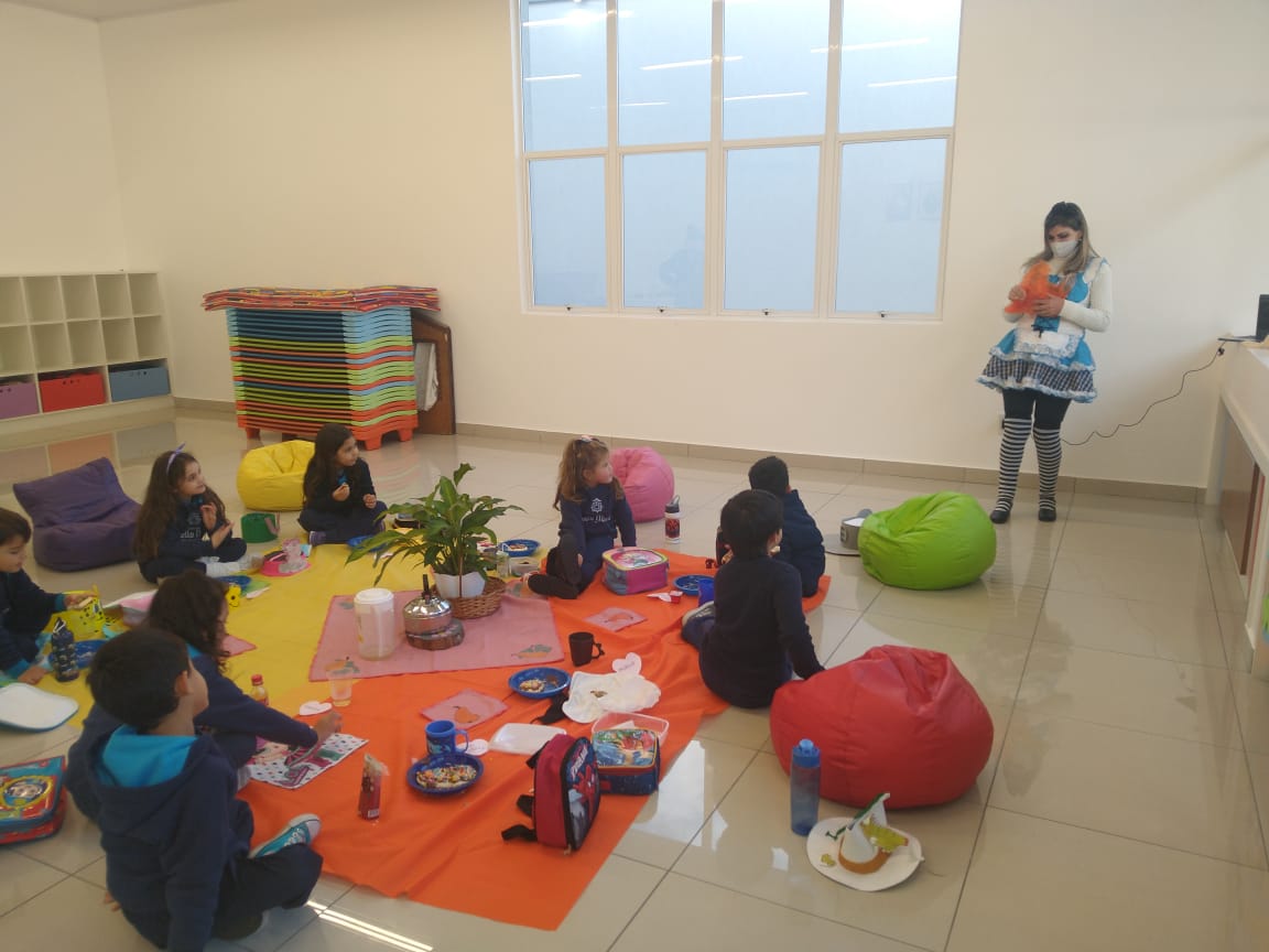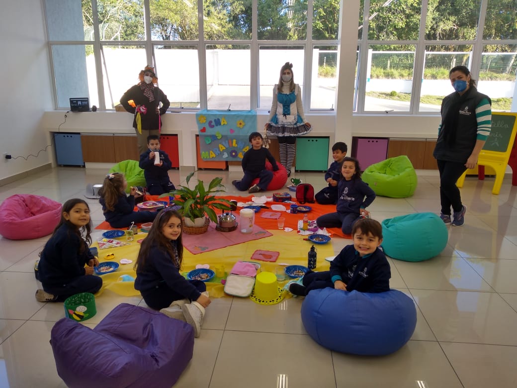 Em uma tarde linda a turminha do pré 2 B e a professora Gabriela receberam a visita da Alice e o Chapeleiro, diretamente do País das maravilhas. Para está tarde especial a turma preparou deliciosos biscoitinhos coloridos e um cházinho delicioso. As crianças visitaram a horta da escola e escolheram os chás, sentiram seus cheirinhos e colheram com muito carinho. Foi incrível! O Cházinho ficou repleto de sentimentos e todos adoraram. Obrigada pela visita e pelo presente: o relógio, do senhor coelho. E lá vamos nós para mais descobertas: o tempo e as horas.