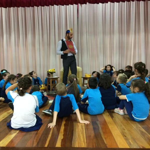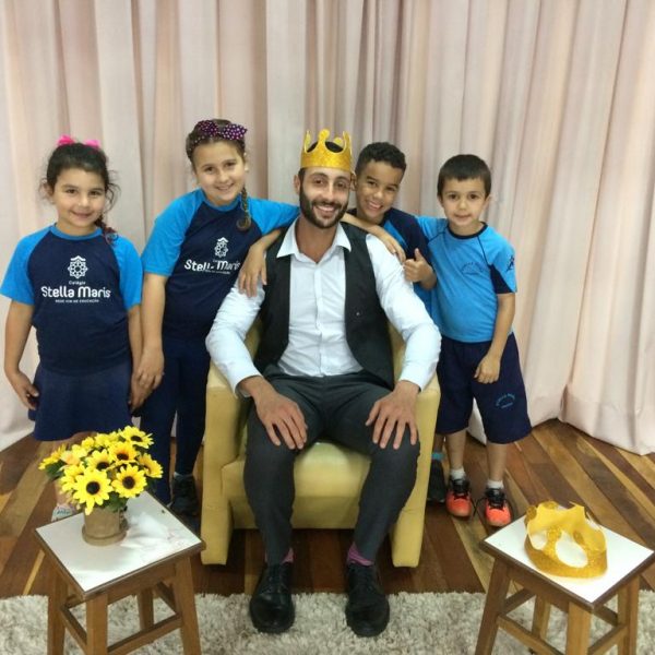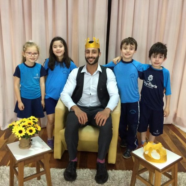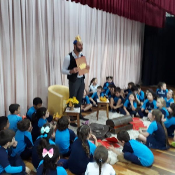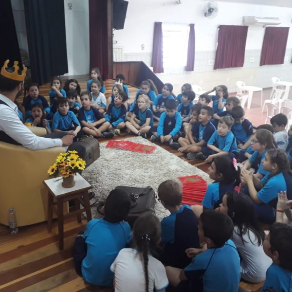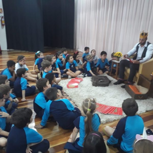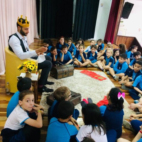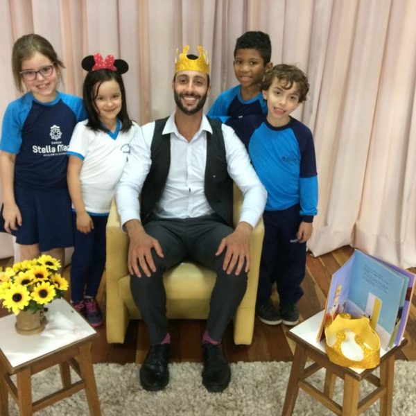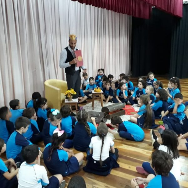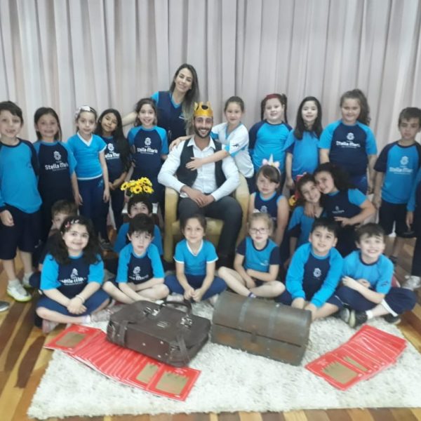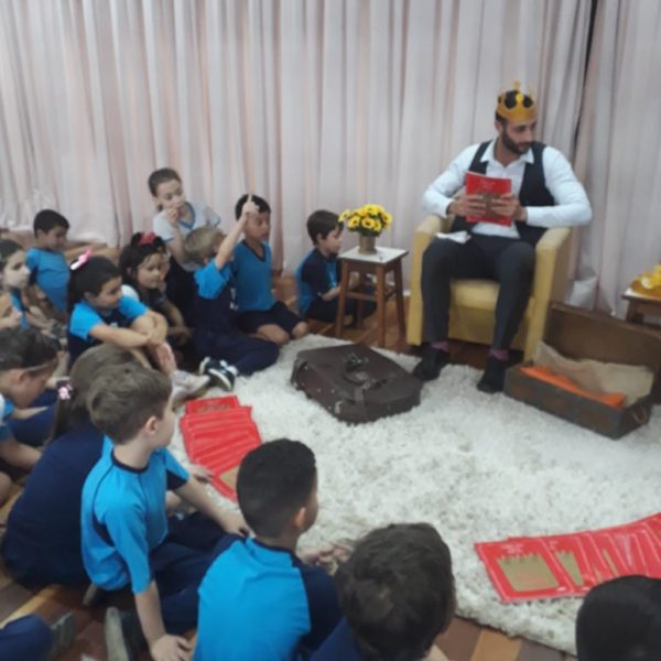 Dando continuidade às vivências do Projeto Literário do 3° Trimestre, as turmas do 1° ano receberam a visita do Príncipe Valentino. Ele veio direto do Mundo do Faz de Conta para contar suas aventuras e atos de bravura vivenciados na Escola de Príncipes Encantados.