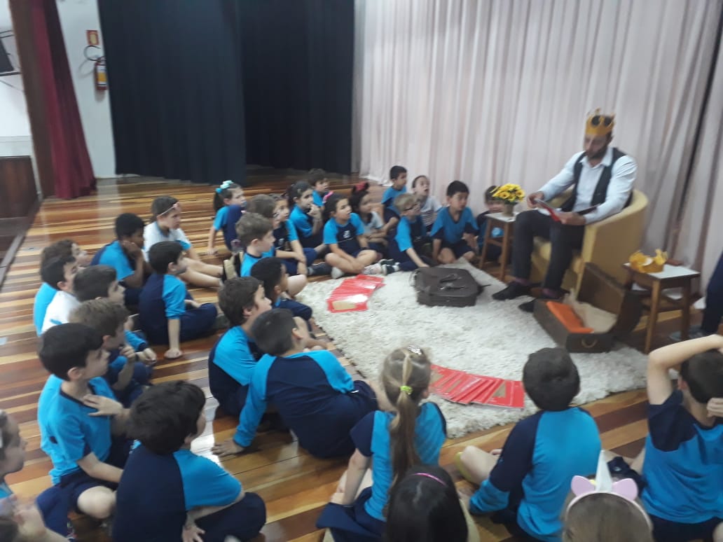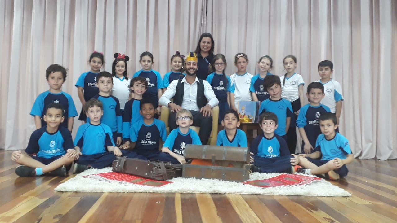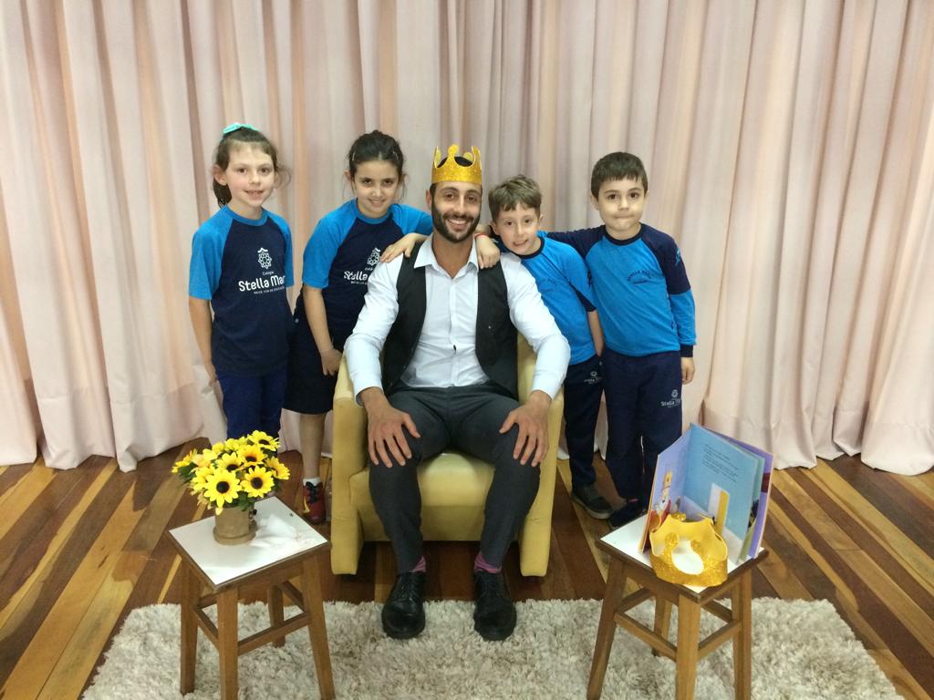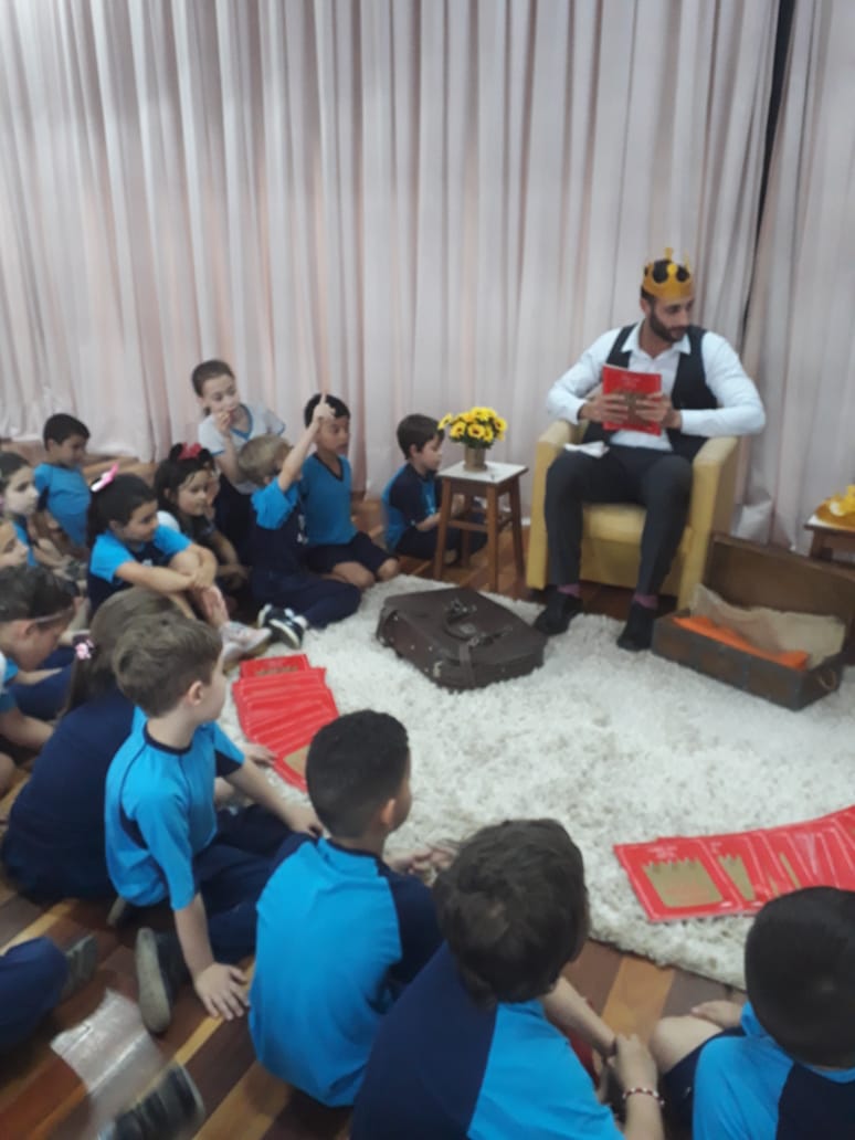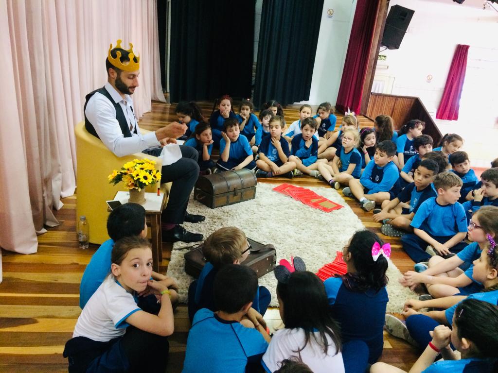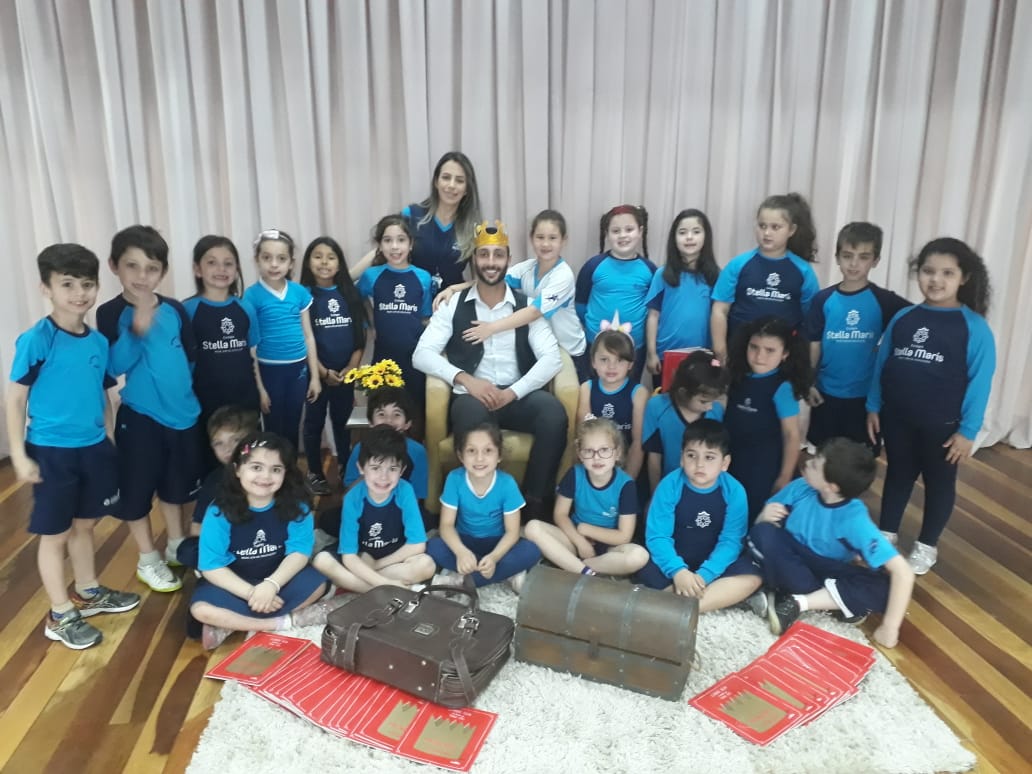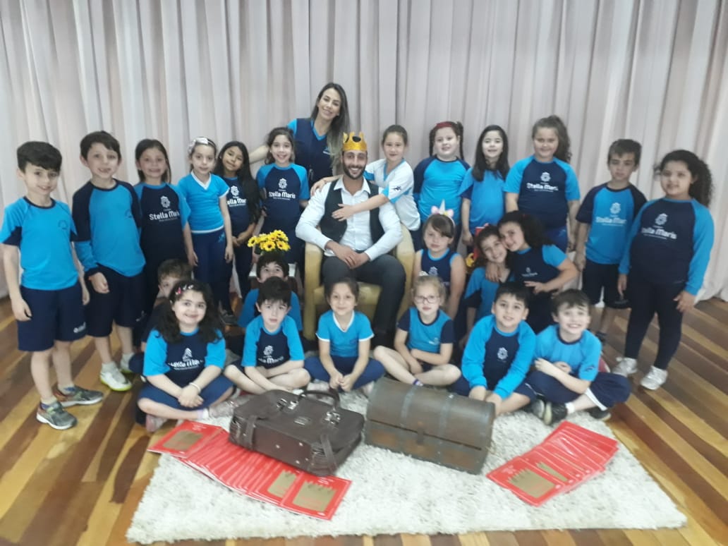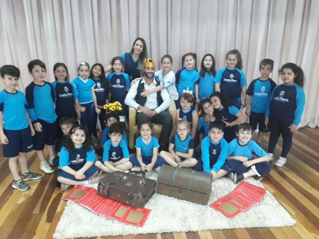 Dando continuidade às vivências do Projeto Literário do 3° Trimestre, as turmas do 1° ano receberam a visita do Príncipe Valentino. Ele veio direto do Mundo do Faz de Conta para contar suas aventuras e atos de bravura vivenciados na Escola de Príncipes Encantados.