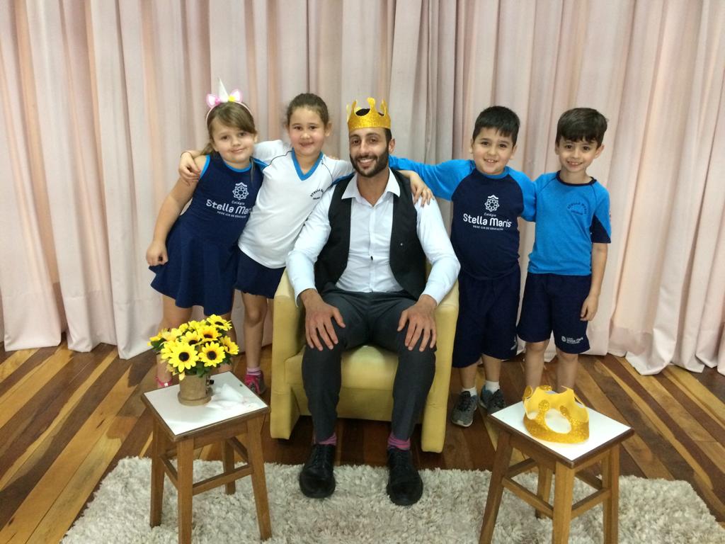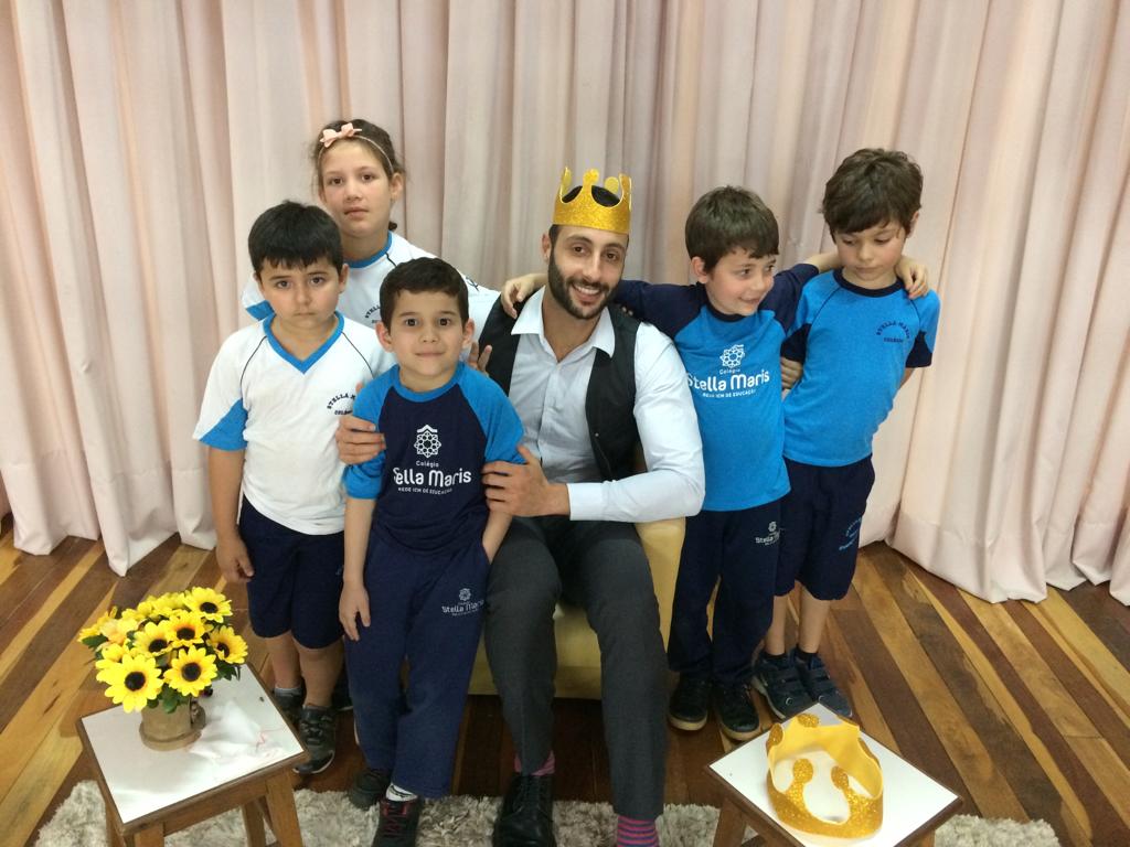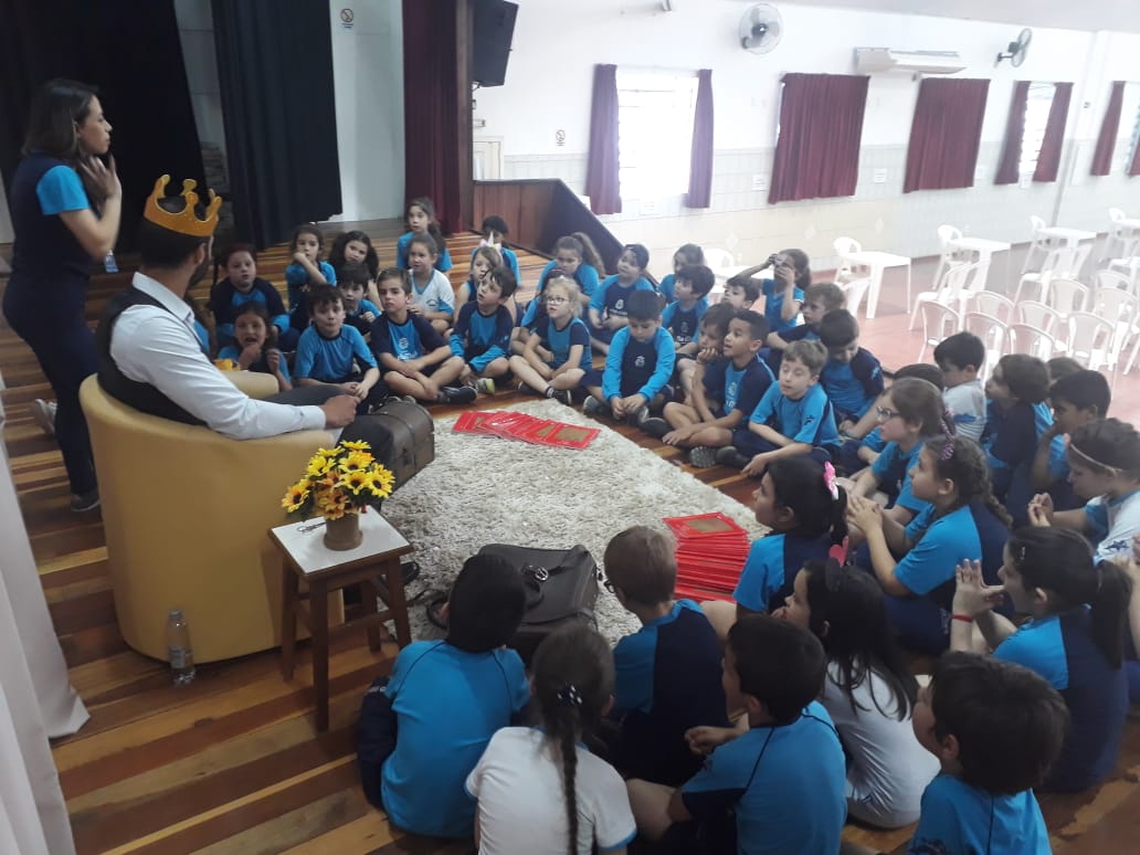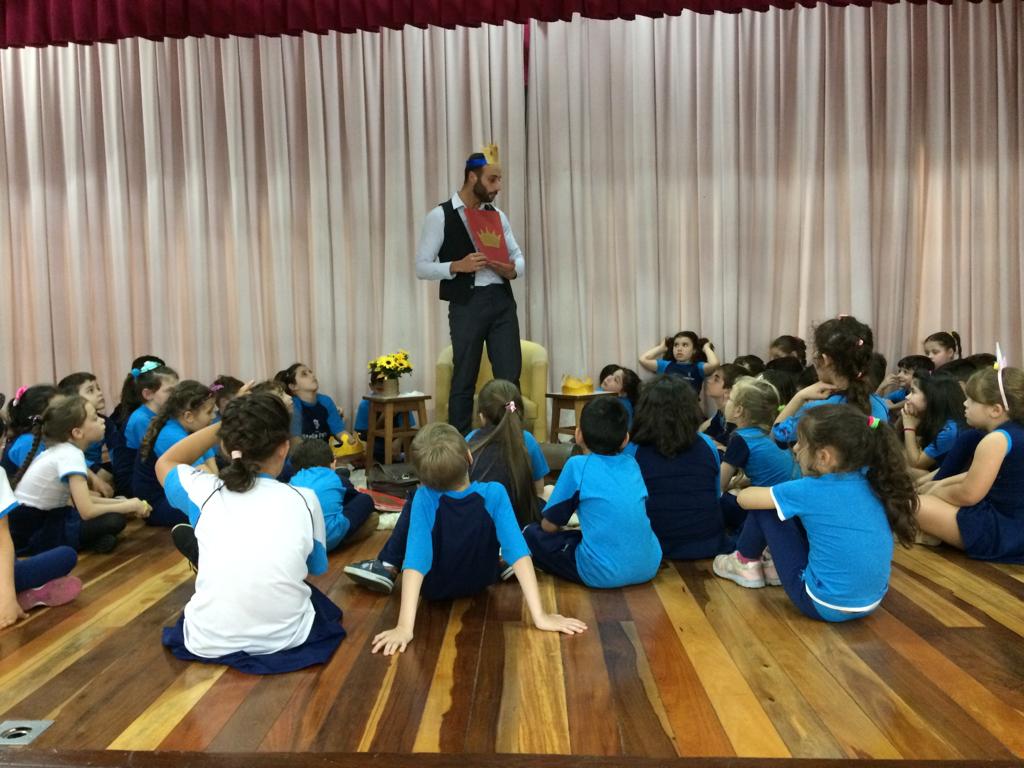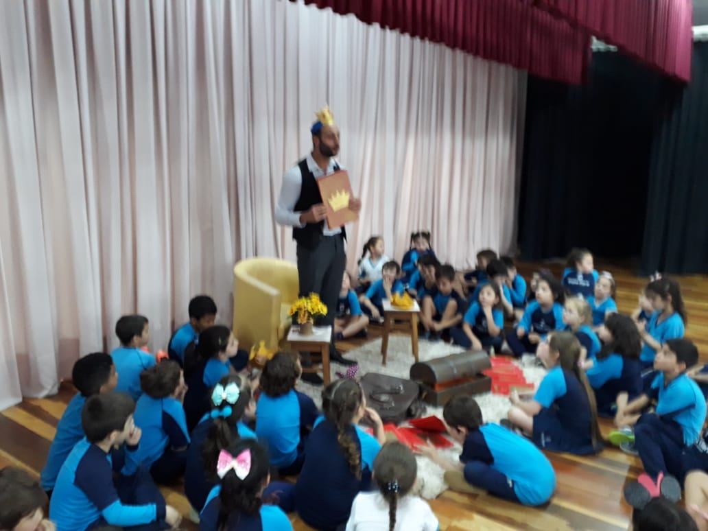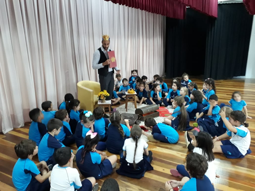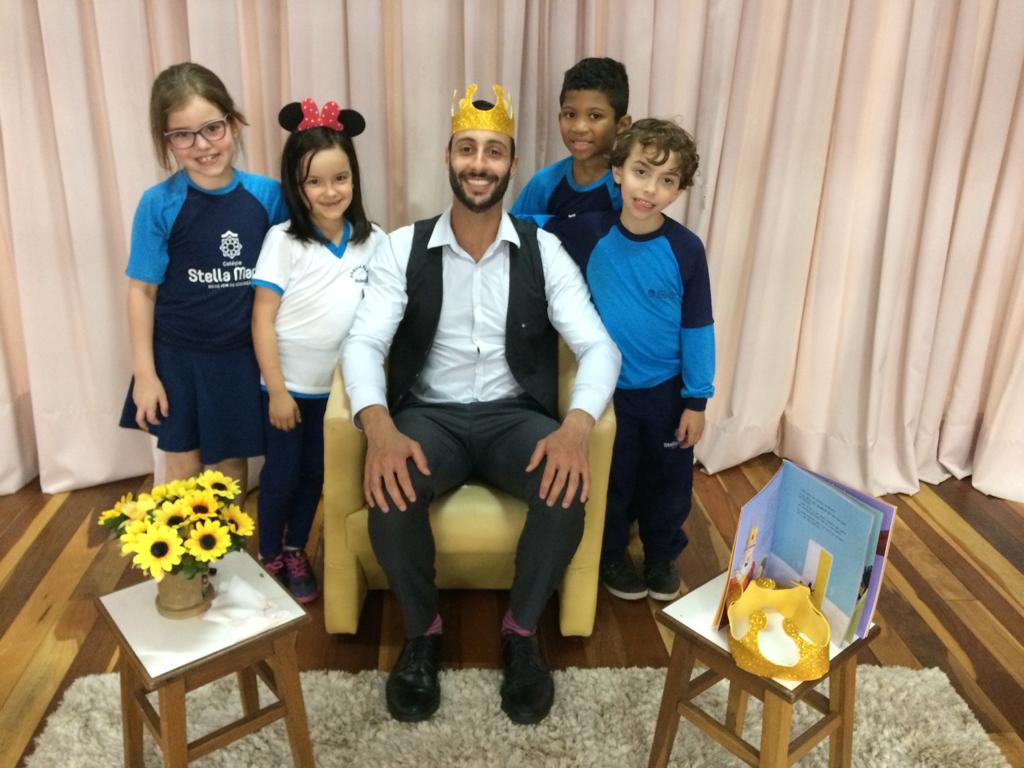 Dando continuidade às vivências do Projeto Literário do 3° Trimestre, as turmas do 1° ano receberam a visita do Príncipe Valentino. Ele veio direto do Mundo do Faz de Conta para contar suas aventuras e atos de bravura vivenciados na Escola de Príncipes Encantados.