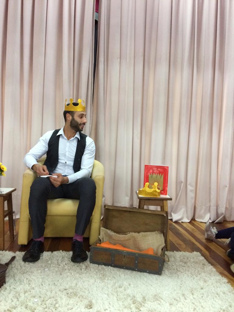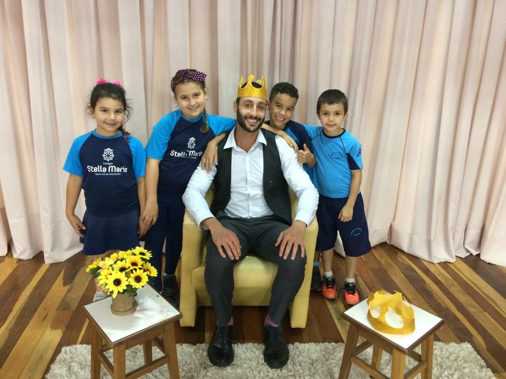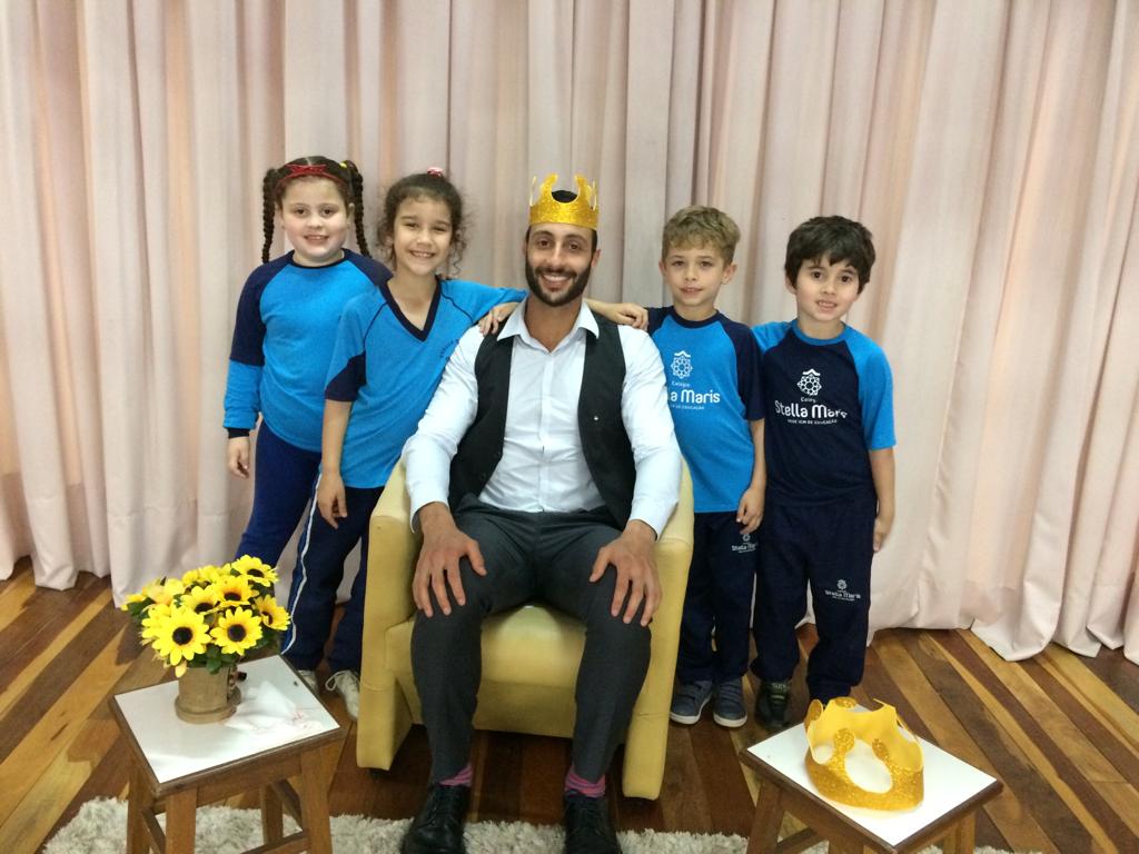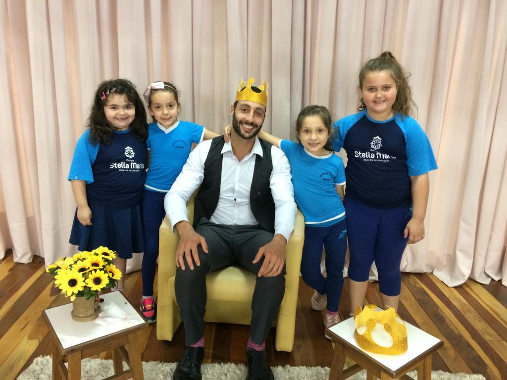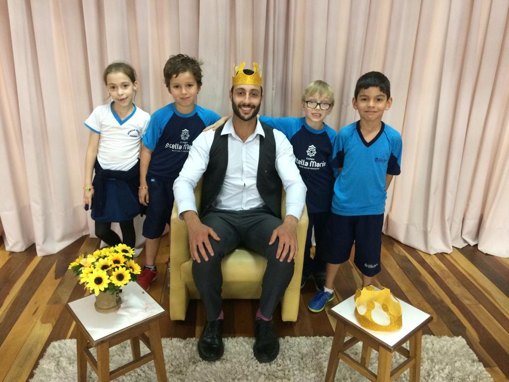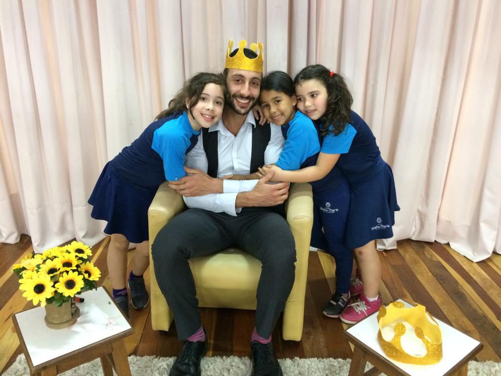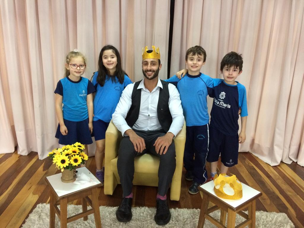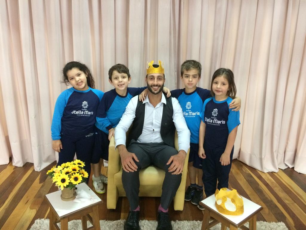 Dando continuidade às vivências do Projeto Literário do 3° Trimestre, as turmas do 1° ano receberam a visita do Príncipe Valentino. Ele veio direto do Mundo do Faz de Conta para contar suas aventuras e atos de bravura vivenciados na Escola de Príncipes Encantados.