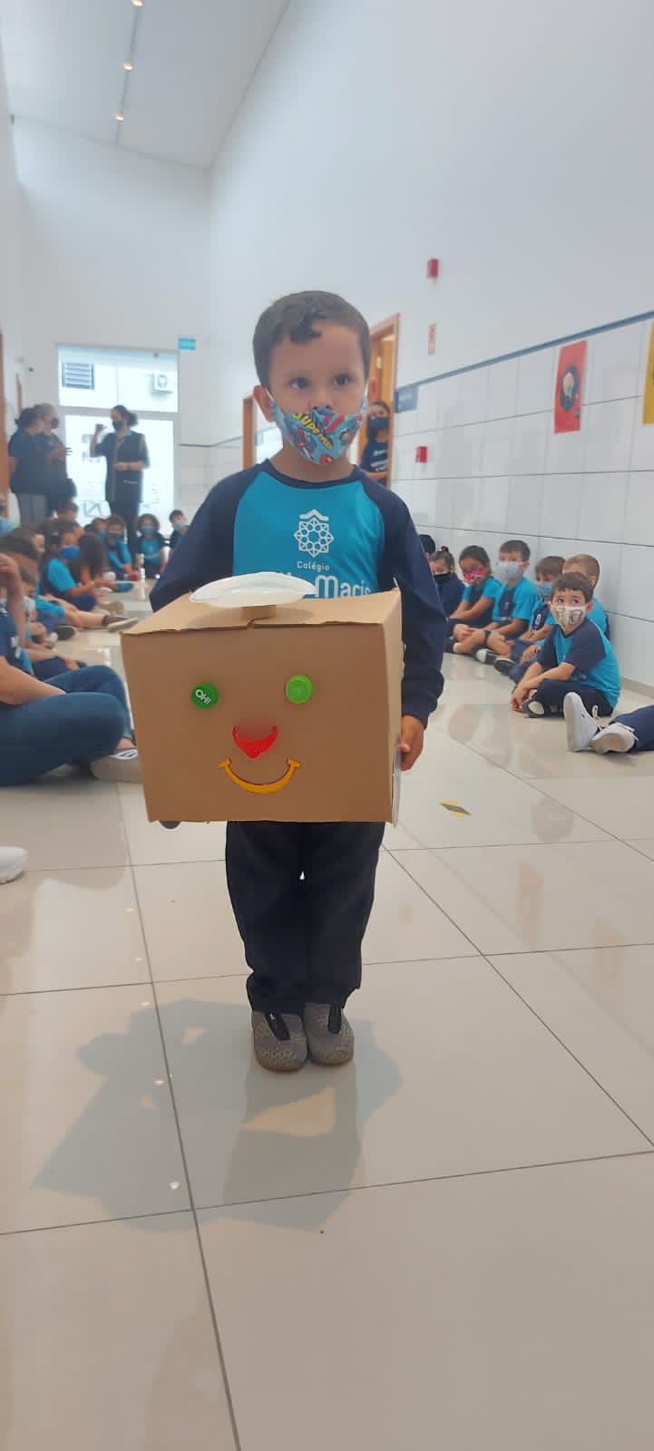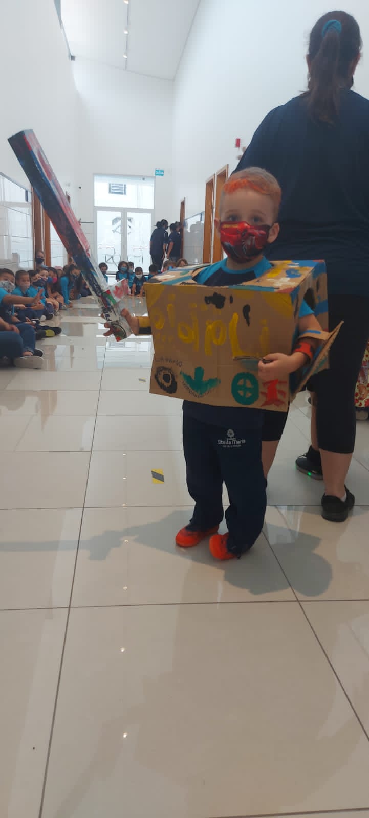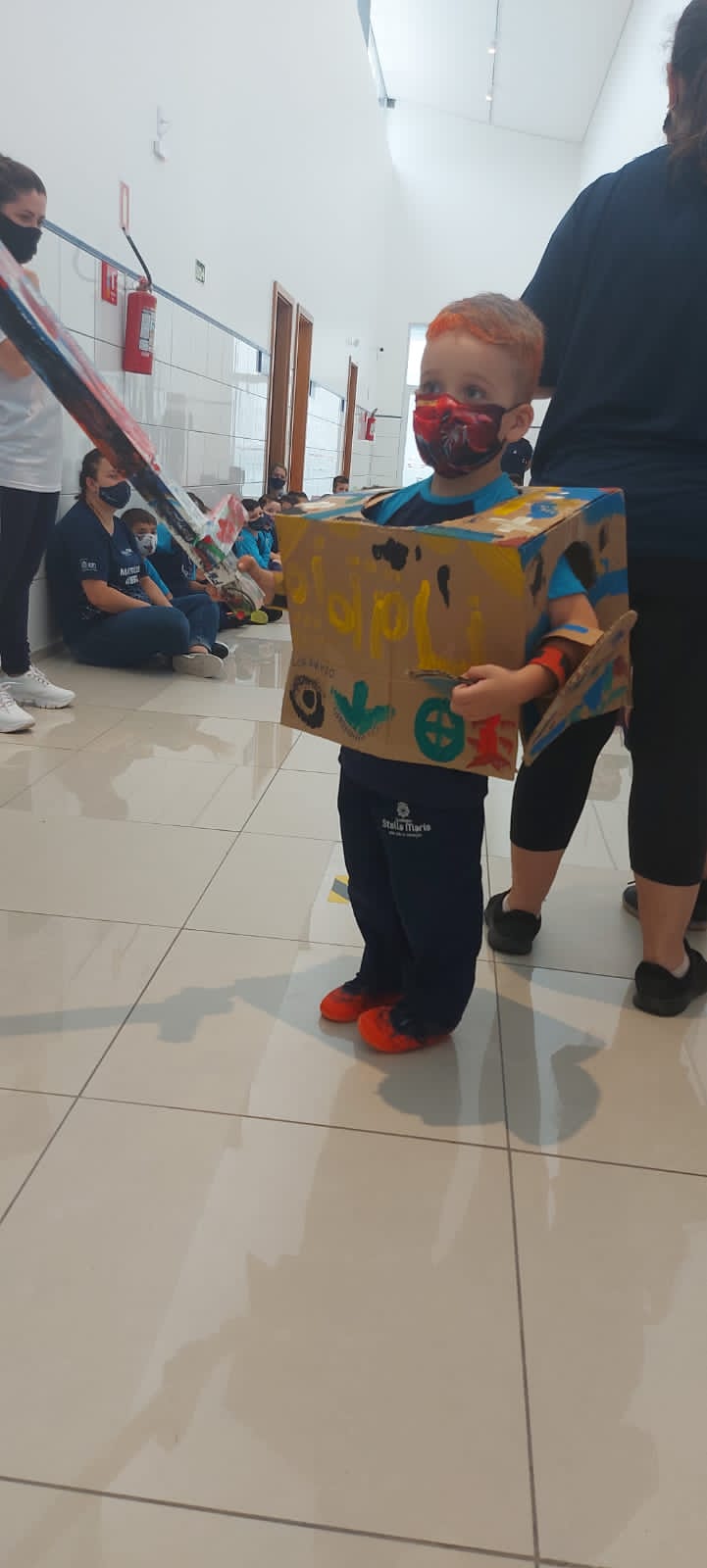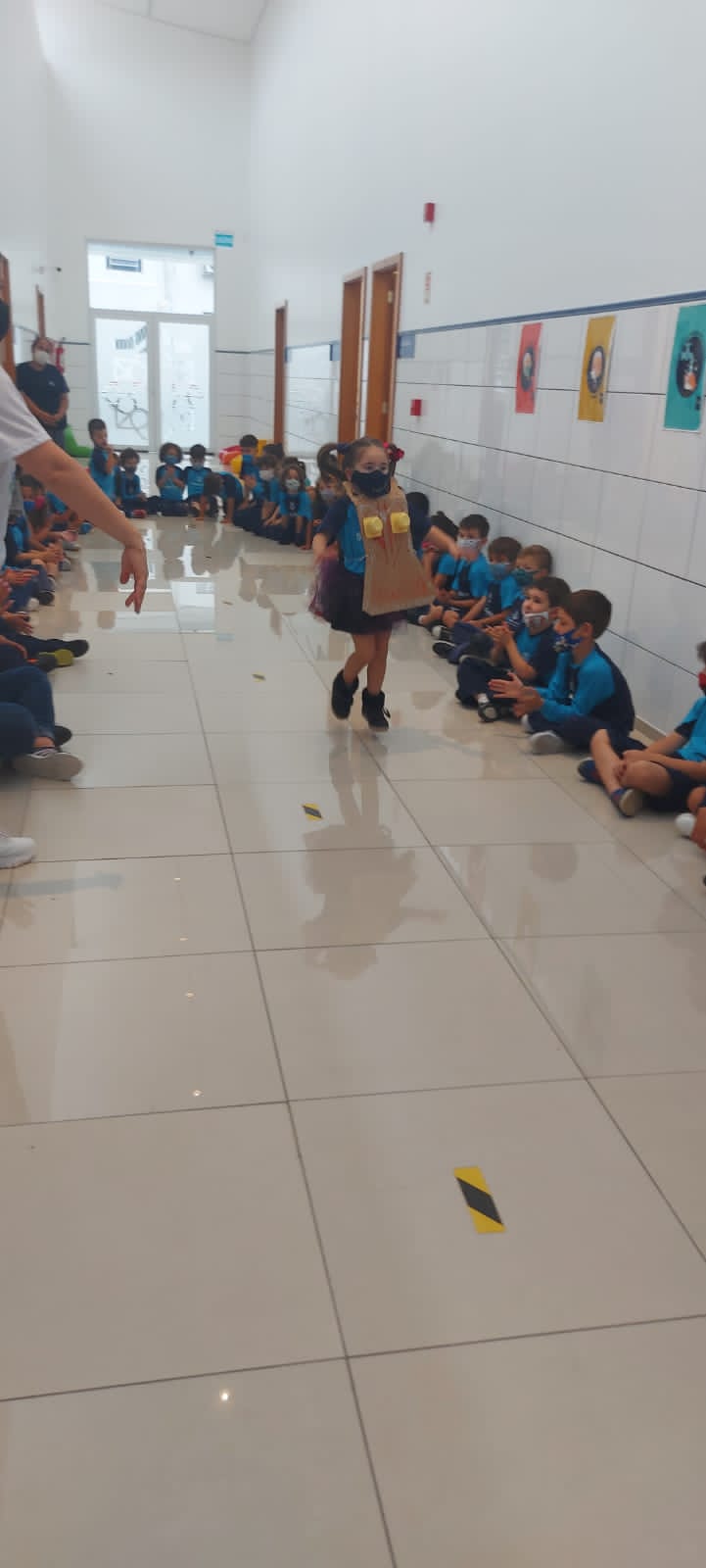 Na tarde de hoje, a turma do Maternal 2, da profª Daniela, realizou um desfile temático, onde as crianças estavam vestidas com fantasias confeccionadas pelas famílias com materiais reciclados. Eles assistiram o vídeo de contação da história: “Reciclagem: a aventura de uma garrafa.”de Mick Manning e Brita Granström- Ártica e entenderam um pouco mais sobre a importância de reutilizarmos alguns materiais que iriam parar no lixo ou na natureza. Confiram os flashs.