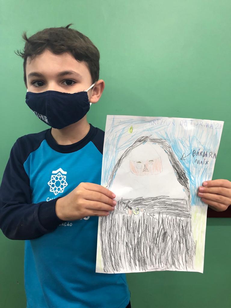 Como culminância das atividades, os alunos fizeram uma releitura da imagem de Bárbara.
