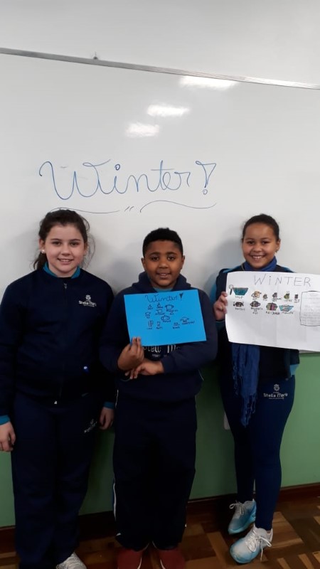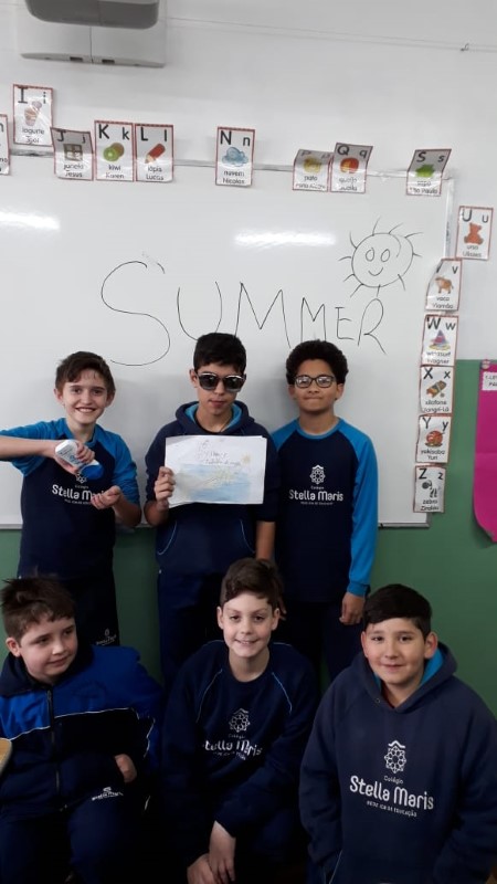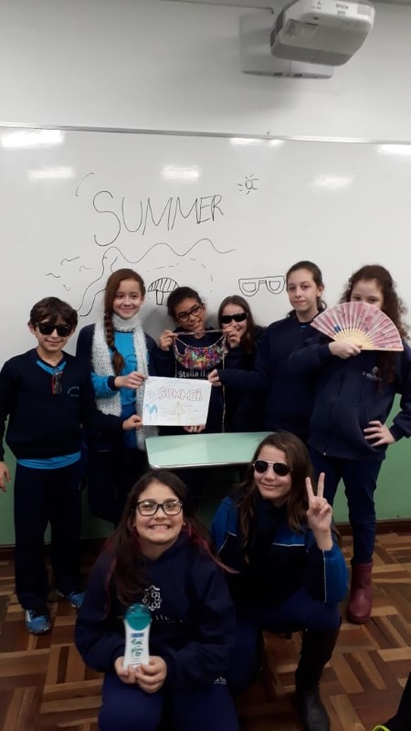 Os alunos das turmas 51, 52 e 53, na disciplina especializada de Inglês, da teacher Thamise, realizaram uma atividade relacionada às estações do ano (Summer, Fall, Winter e Spring). Cada grupo ficou responsável por trazer objetos e fotos que caracterizassem a season of the year escolhida!