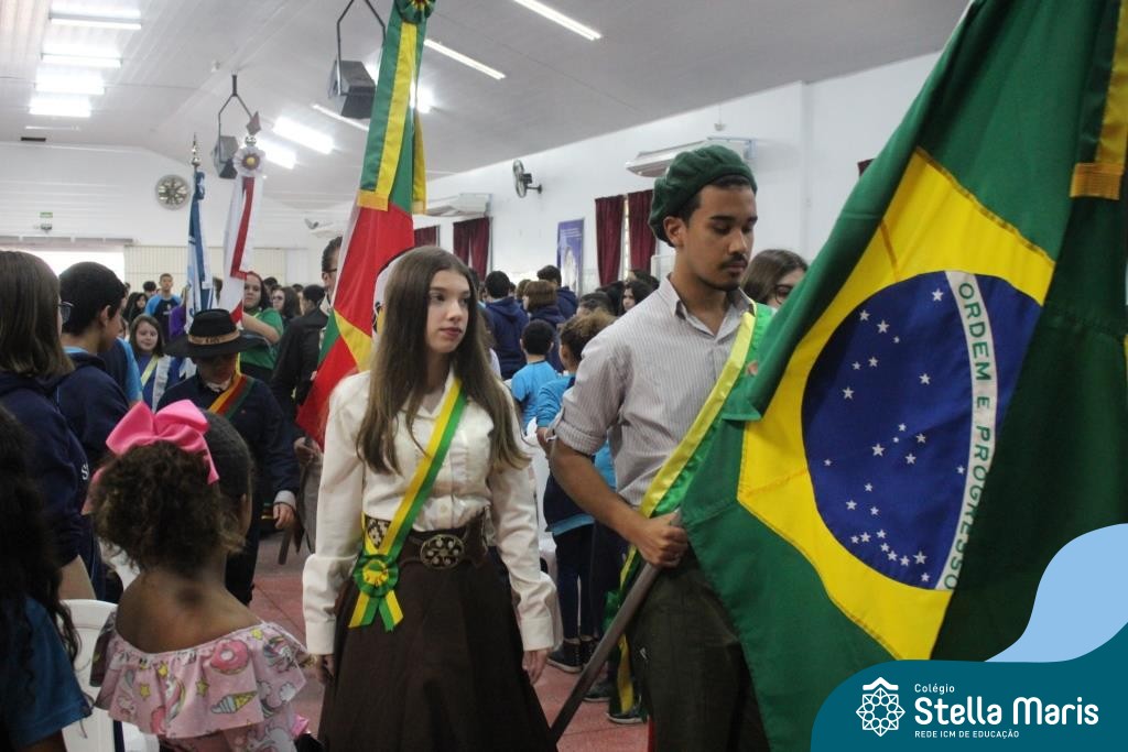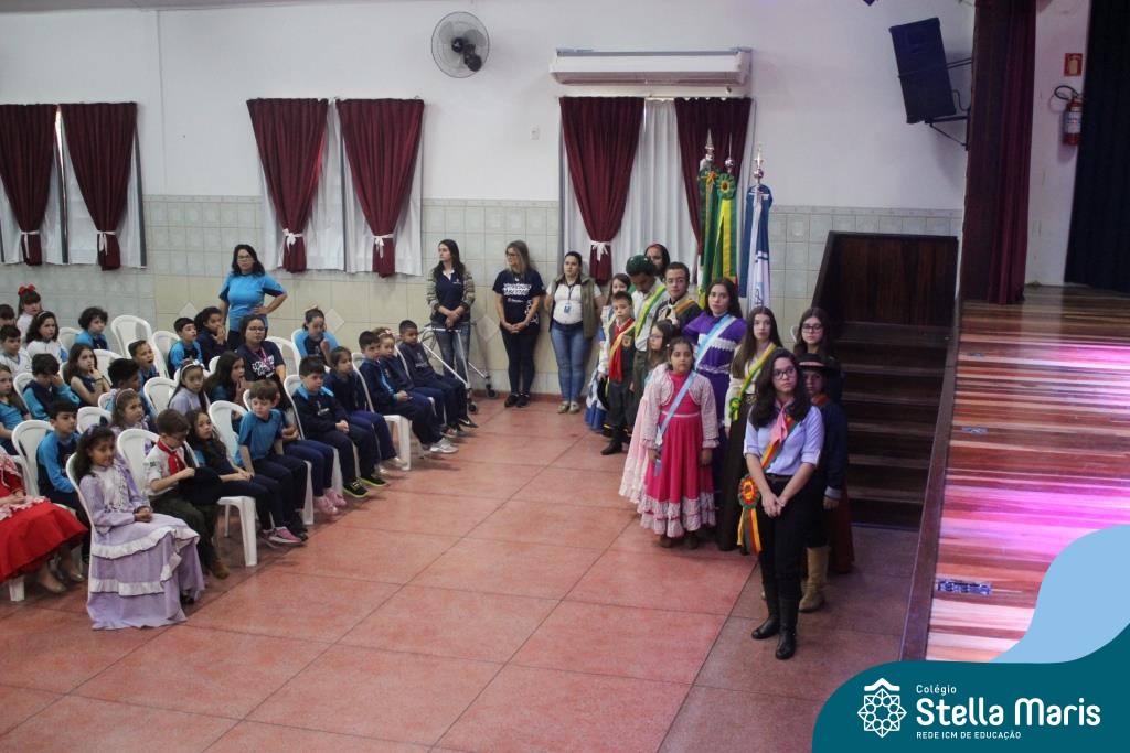 A Semana Farroupilha é um momento especial de culto às tradições gaúchas. Tendo em vista que moramos em um Estado rico em cultura e tradição, a Semana Farroupilha tornou-se uma festa cívica onde relembramos as bravuras de nossos antepassados e resgatamos nossa história. No dia 16/09, realizou-se a Abertura Oficial da Semana Farroupilha. Durante toda semana serão realizados momentos de vivência dasTradições Gaúchas: onde o churrasco, o chimarrão, músicas, pilchas, e danças, farão parte das comemorações culminando na quinta-feira com a tradicional Missa Crioula.