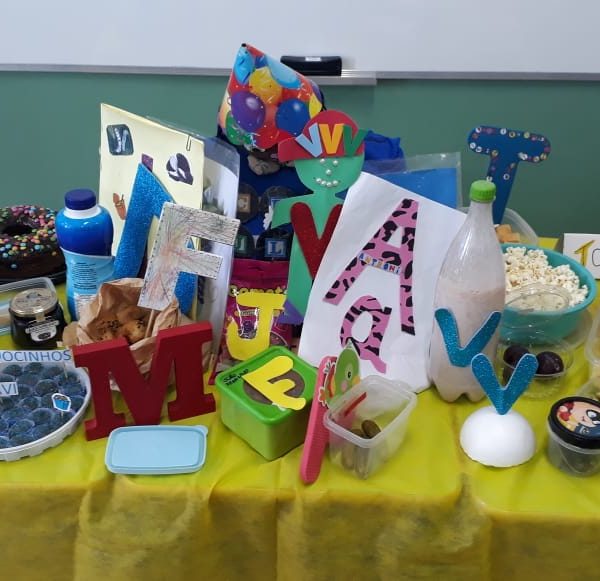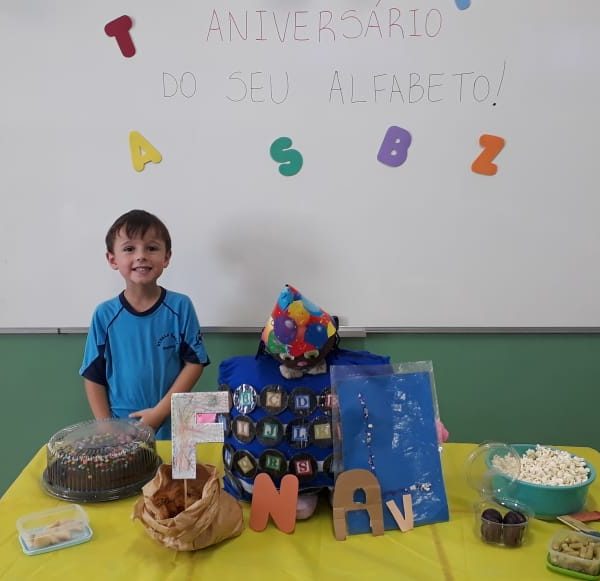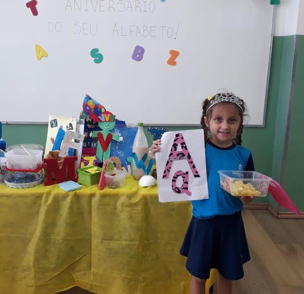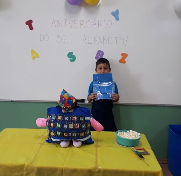 Após recebermos uma visita do reino encantado nas turmas de pré nível 2, em nosso colégio, trazendo um convite muito especial do “Seu Alfabeto” para conhecer sua história e participar de seu aniversário, as turminhas trouxeram alimentos para a festa do novo amigo, porém, com um detalhe muito importante: Teria que ser um alimento com a mesma letra da inicial do nome de cada aluno. As turminhas aprenderam e se deliciaram nas tardes de nosso colégio! Professoras Kelly Brum e Renata Amaral