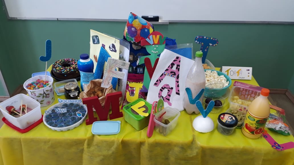 Após recebermos uma visita do reino encantado nas turmas de pré nível 2, em nosso colégio, trazendo um convite muito especial do “Seu Alfabeto” para conhecer sua história e participar de seu aniversário, as turminhas trouxeram alimentos para a festa do novo amigo, porém, com um detalhe muito importante: Teria que ser um alimento com a mesma letra da inicial do nome de cada aluno. As turminhas aprenderam e se deliciaram nas tardes de nosso colégio! Professoras Kelly Brum e Renata Amaral