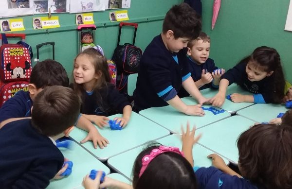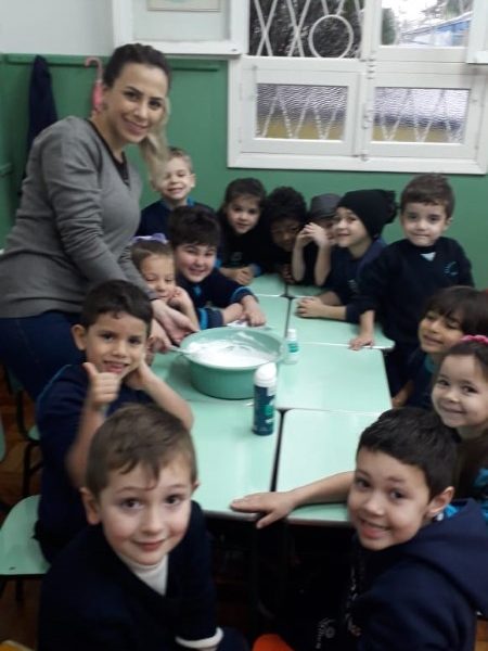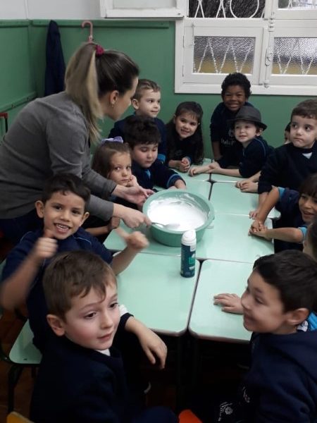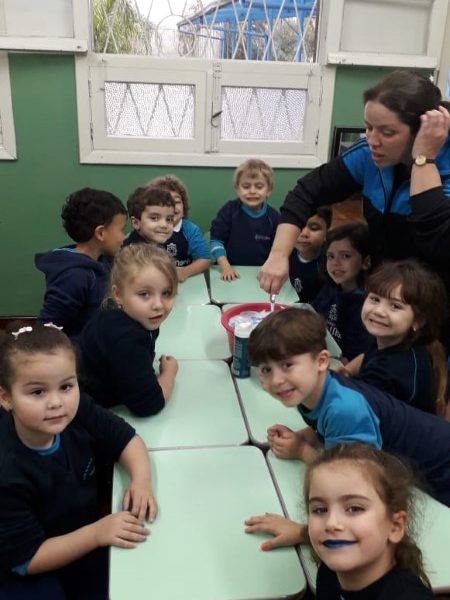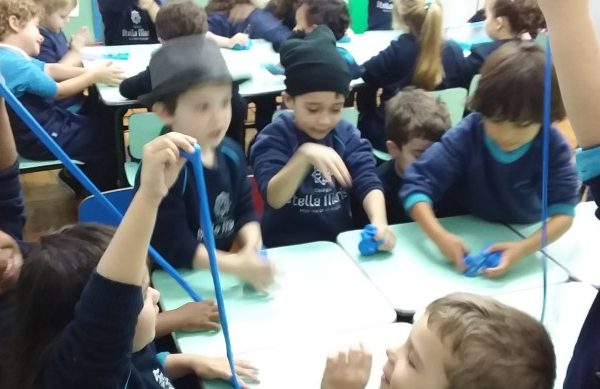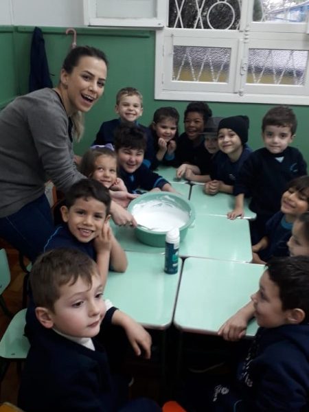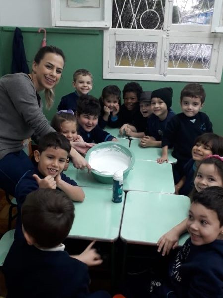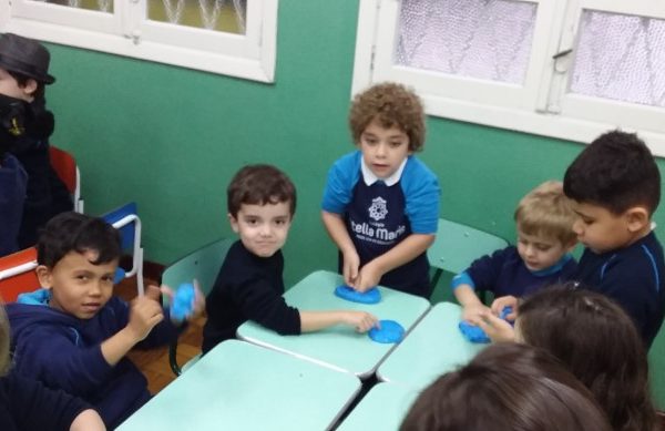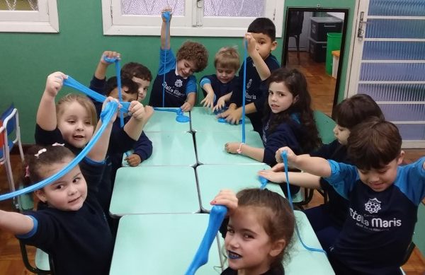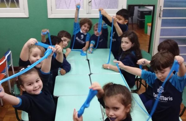 Nesta segunda feira, as turmas do Pré 1A/B das professoras Ana Paula e Daniela, vivenciaram uma experiência muito divertida em comemoração ao dia do estudante. Confeccionamos uma “Slime”!!!!!! Foi uma tarde de muita alegria e diferentes sensações. As turmas experimentaram texturas variadas, reconheceram cores, desenvolveram a coordenação motora e a socialização. Confiram alguns momentos…